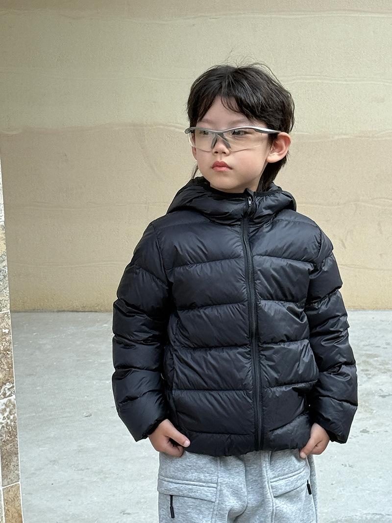 Chaqueta ligera de plumón para niños, invierno 2024, nueva chaqueta ligera con capucha para niños y niñas, estilo coreano