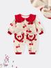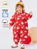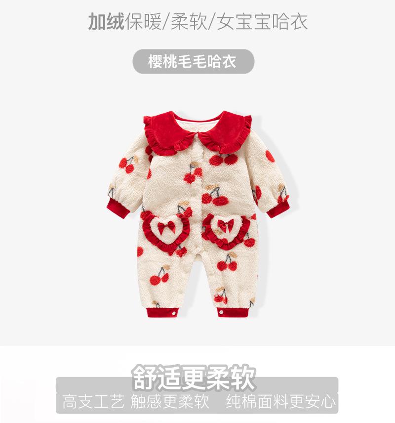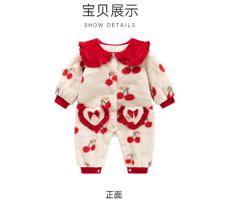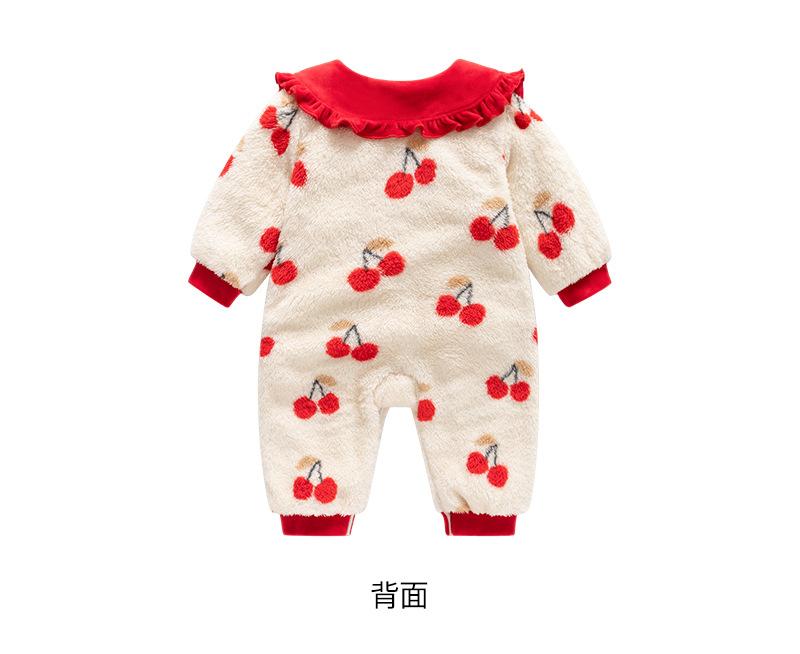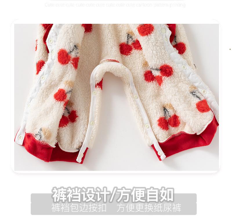 Ropa de una pieza para bebé, otoño e invierno, ropa de bebé con capucha de cereza, forro polar ártico, luna llena, felpa roja, ropa de escalada, ropa para salir