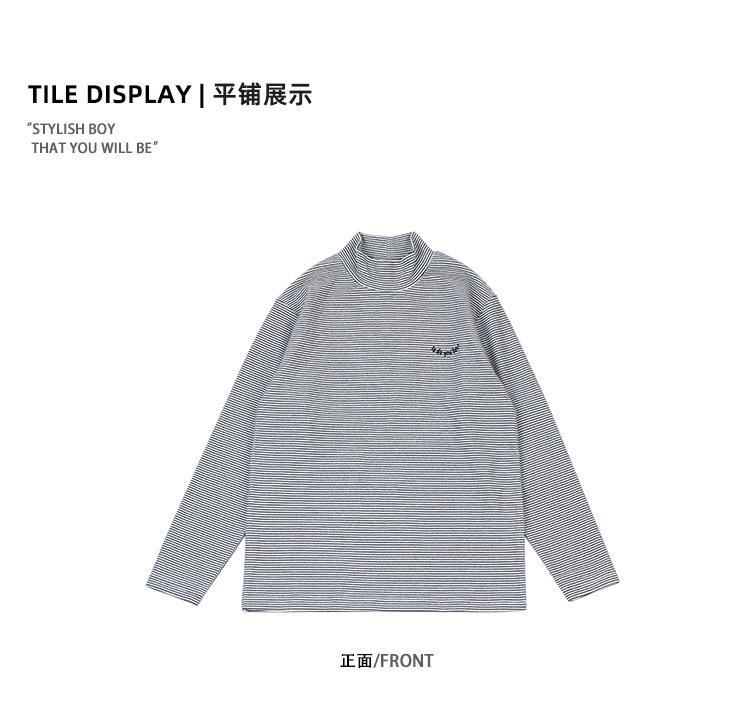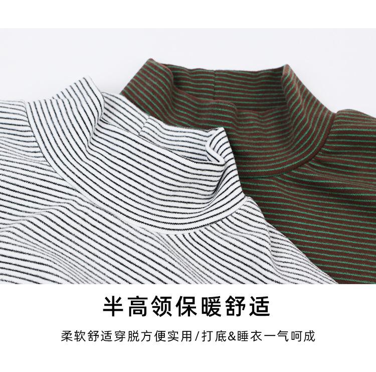 Ropa para Niños DK Temporada de Primavera y Otoño Antibacterial Polar Cuello Semi-alto Camiseta Base Niños Niñas y Niños Combinable Camiseta de Manga Larga a Rayas