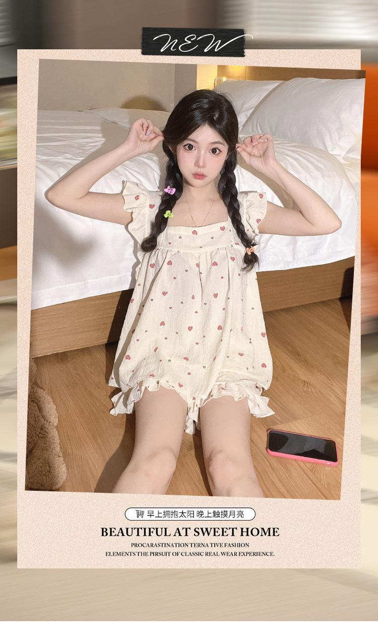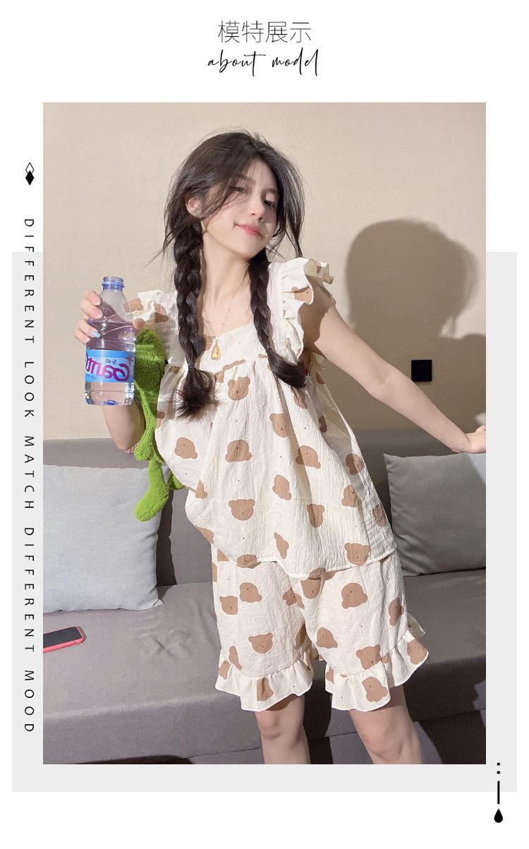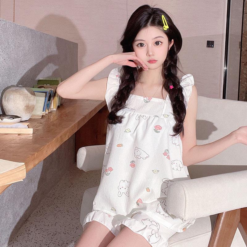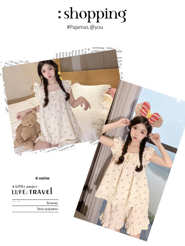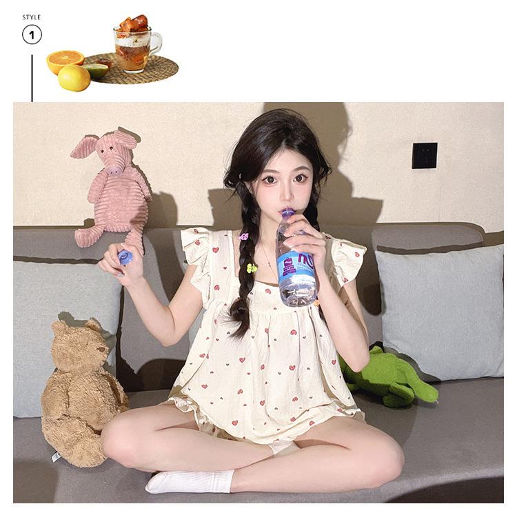 2023 Nuevo Verano Estilo Japonés Pijama Delgado para Mujer Tejido de Algodón Traje de Dos Piezas Dulce Holgado Ropa Exterior para el Hogar
