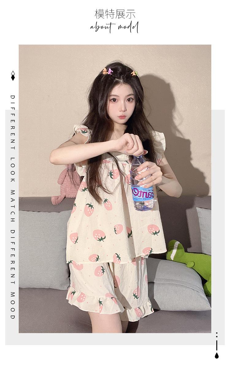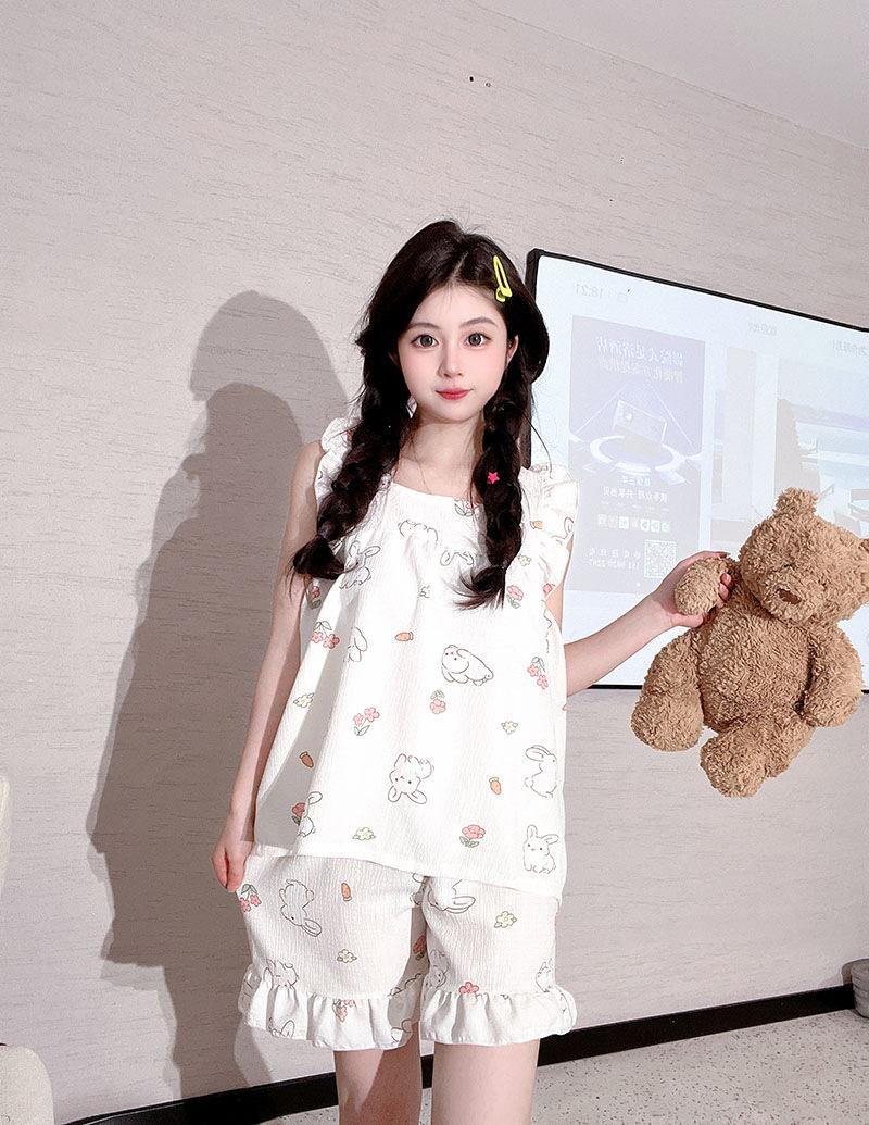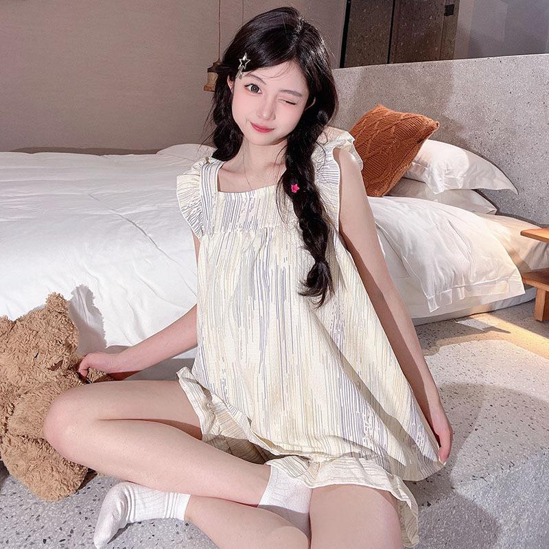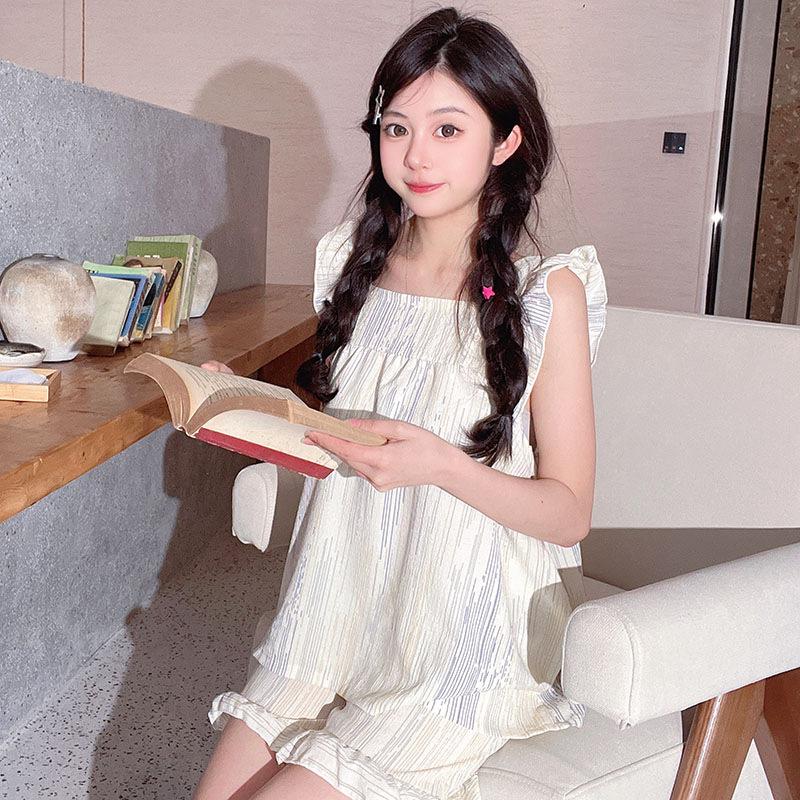2023 Nuevo Verano Estilo Japonés Pijama Delgado para Mujer Tejido de Algodón Traje de Dos Piezas Dulce Holgado Ropa Exterior para el Hogar