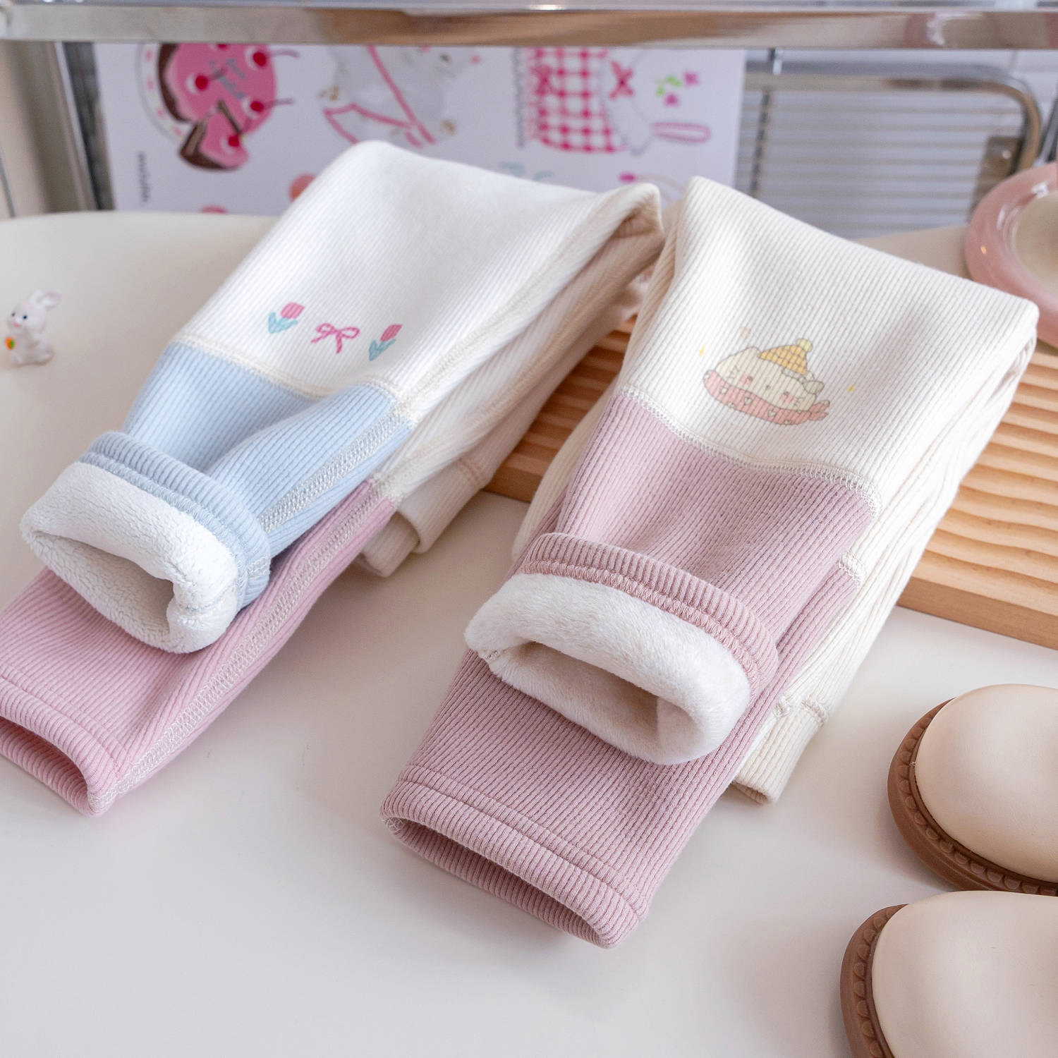 Leggings de Terciopelo para Niñas 2025 Invierno Nuevo Estilo Coreano Dibujos Animados Bebé Niña Empalmado Engrosado Pantalones Casuales Estilo Trbottomy