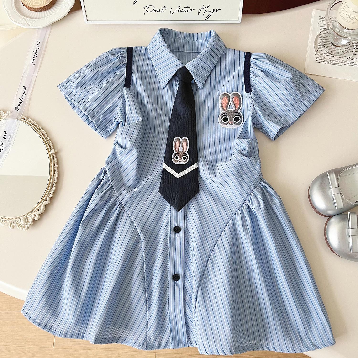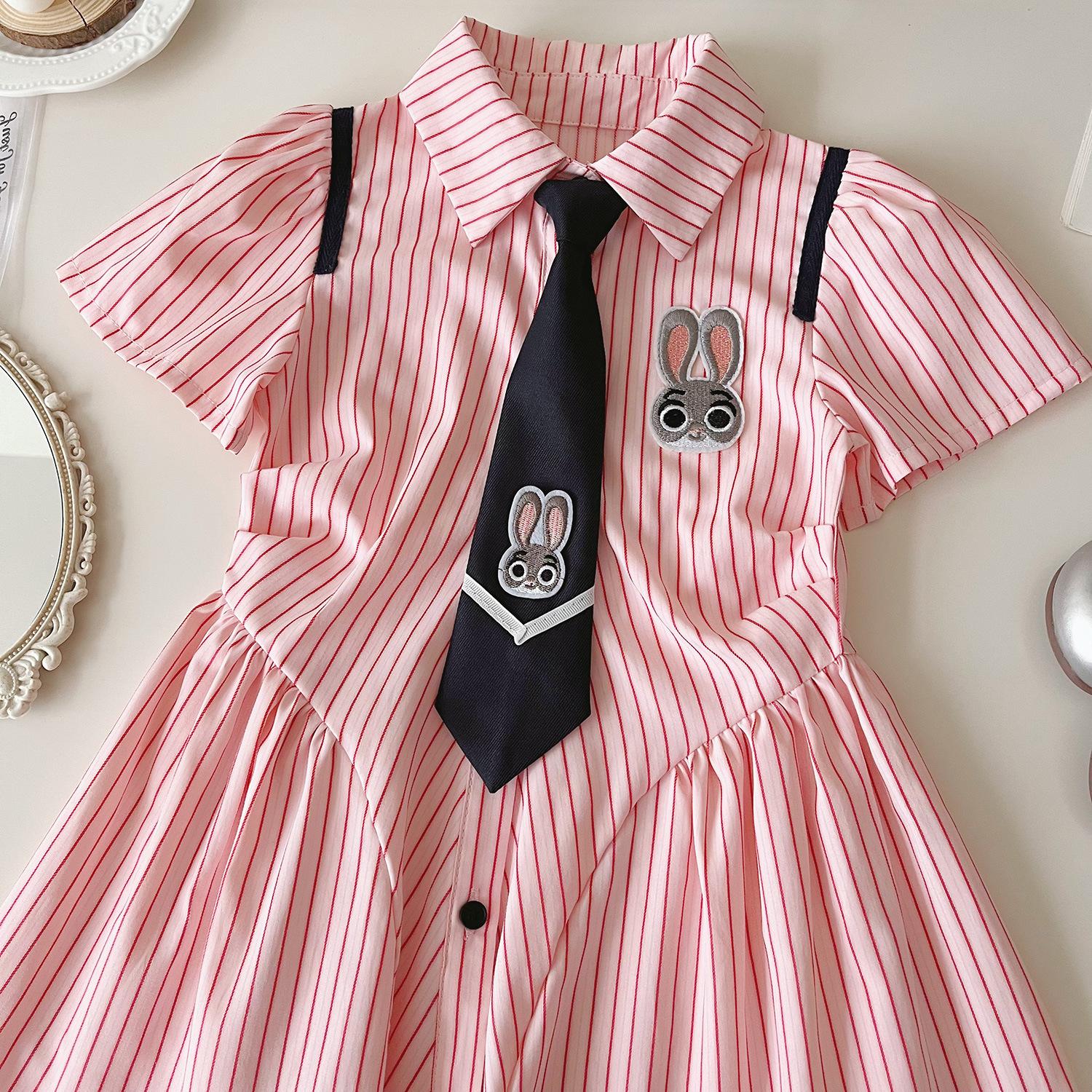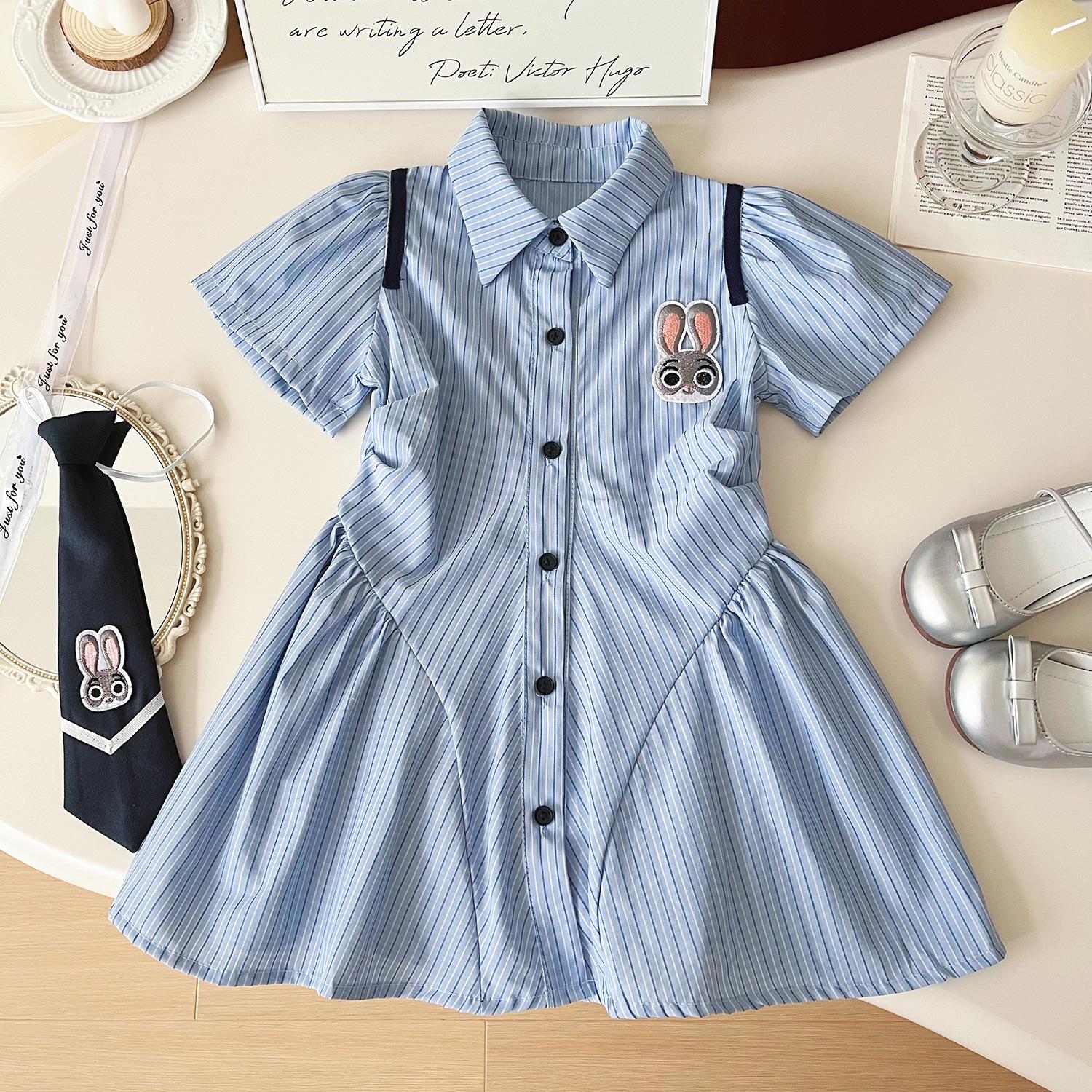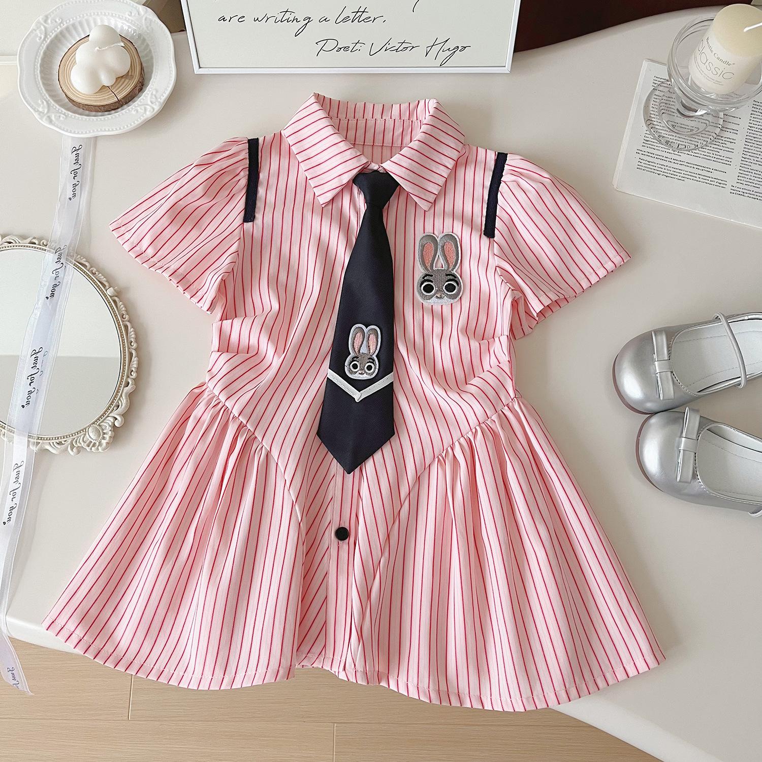 Vestido para niña, verano 2024, nuevo, estilo universitario de conejo, vestido informal de manga corta a rayas