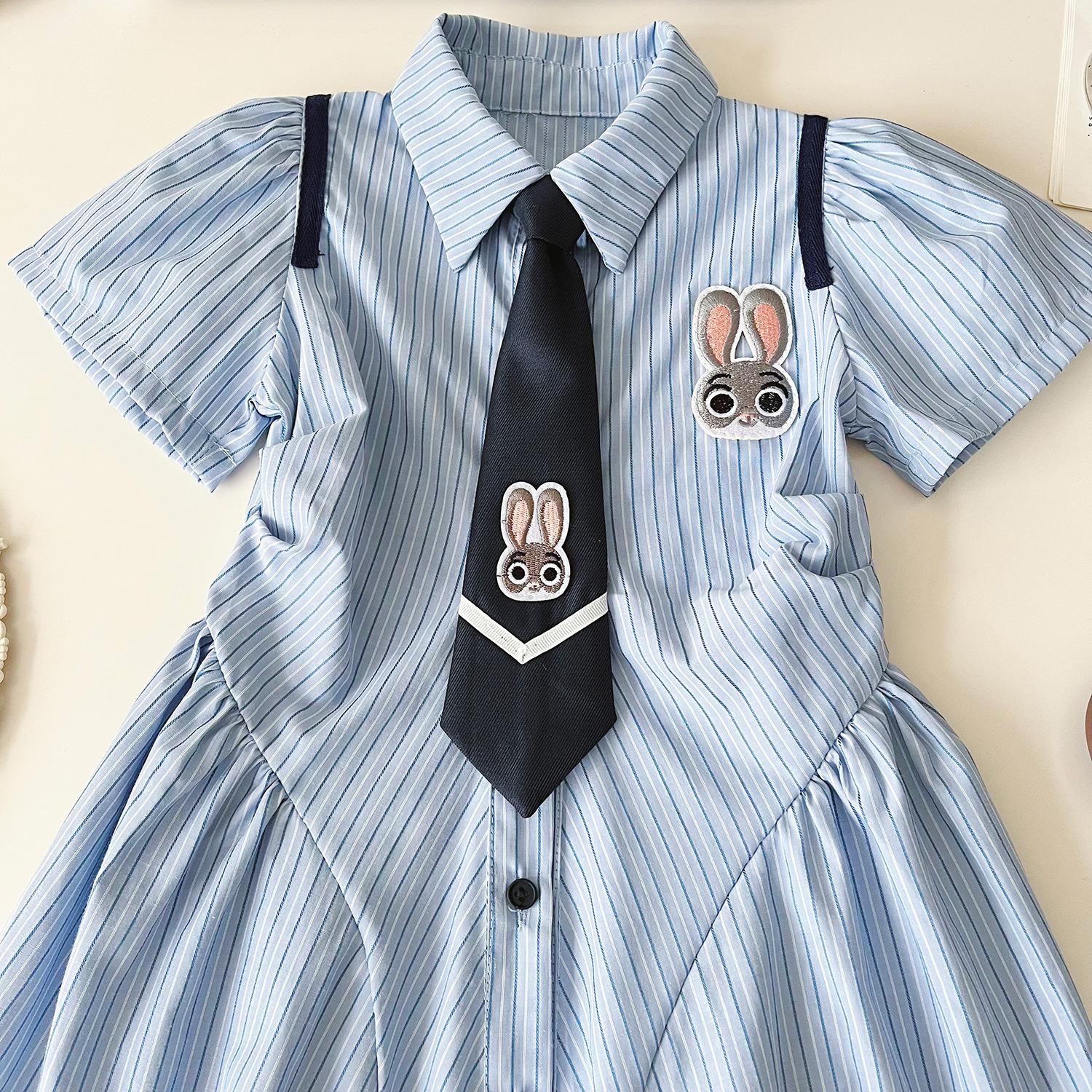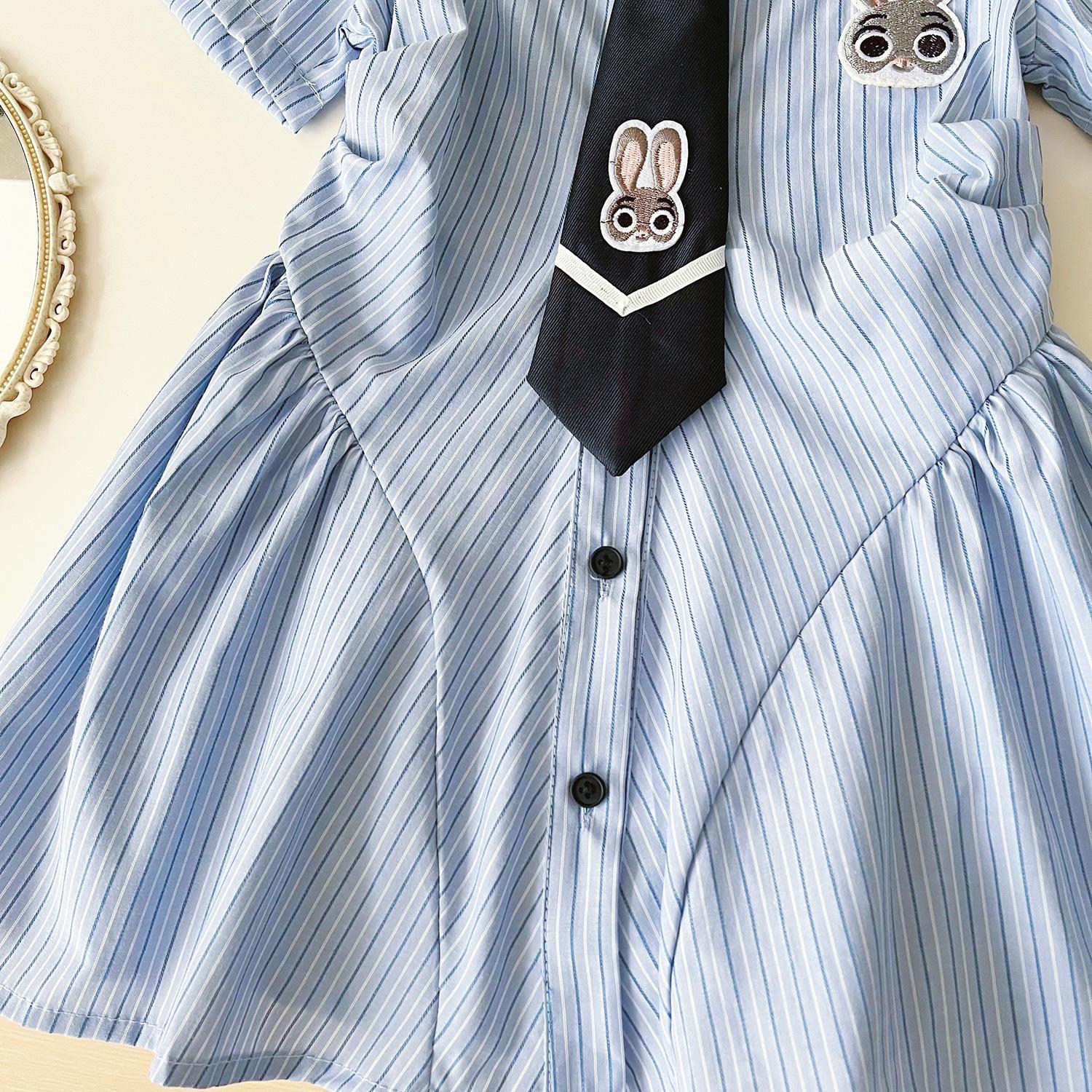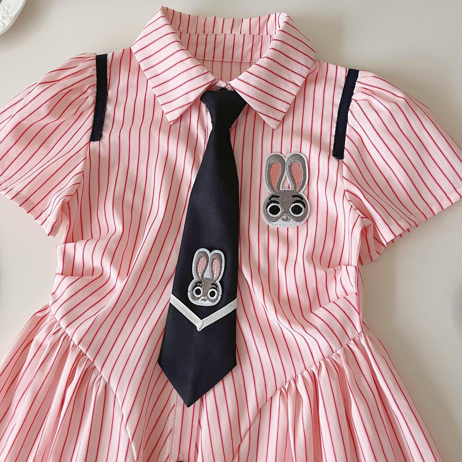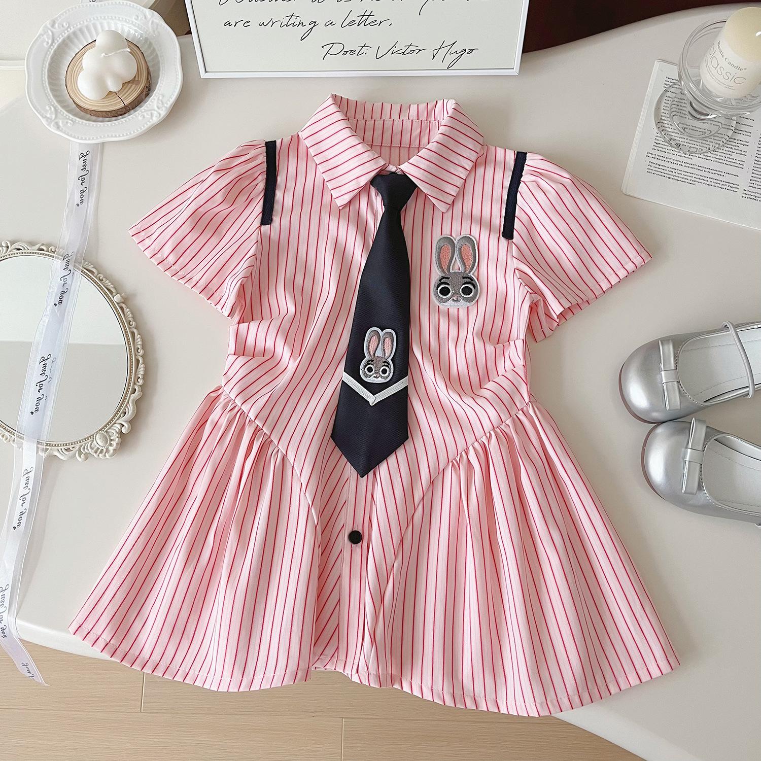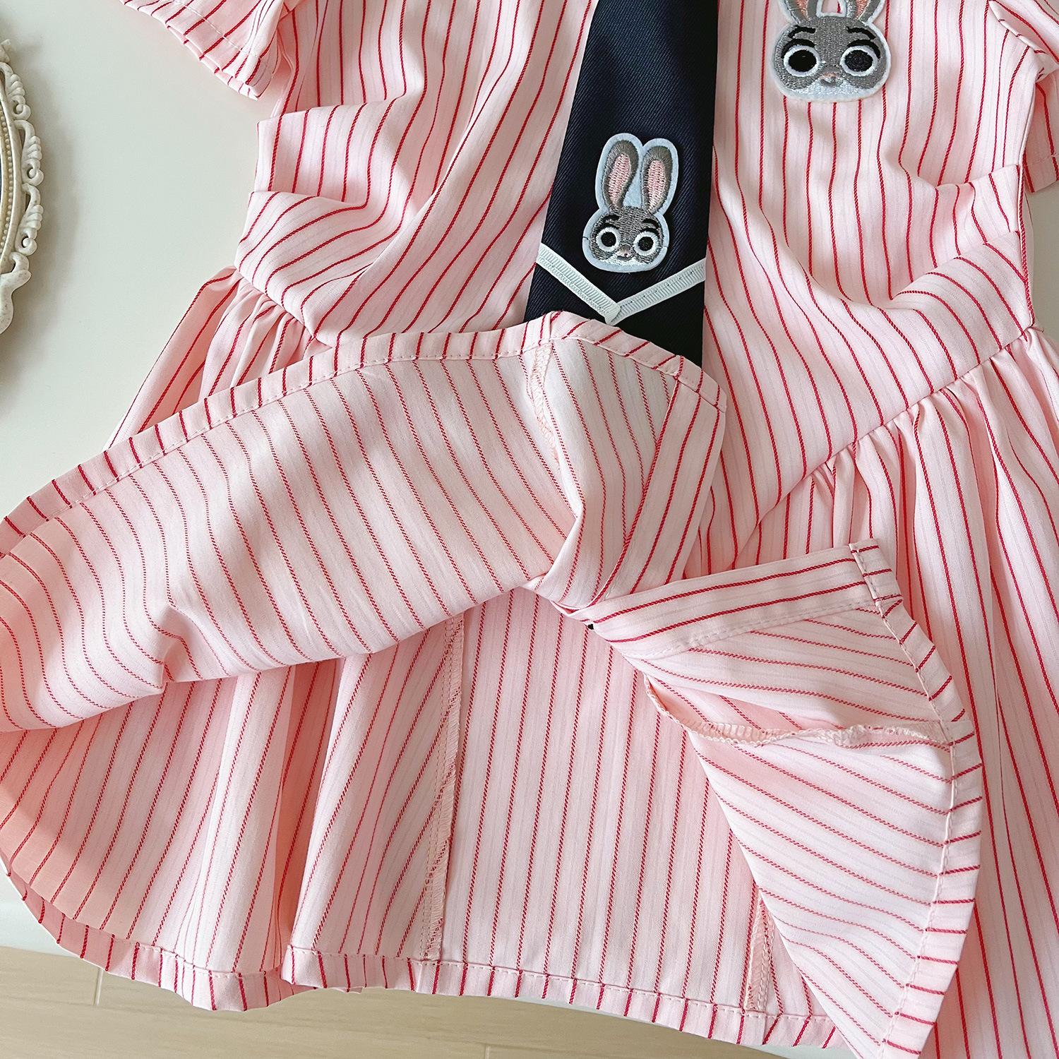 Vestido para niña, verano 2024, nuevo, estilo universitario de conejo, vestido informal de manga corta a rayas