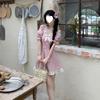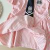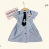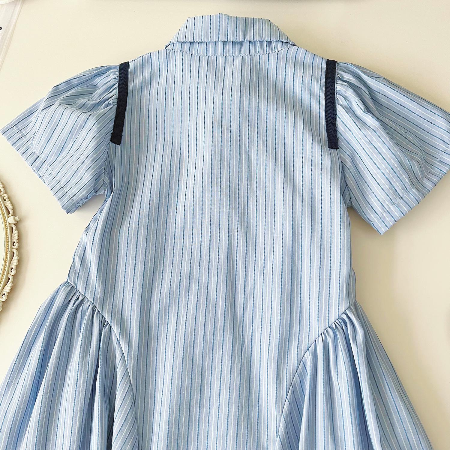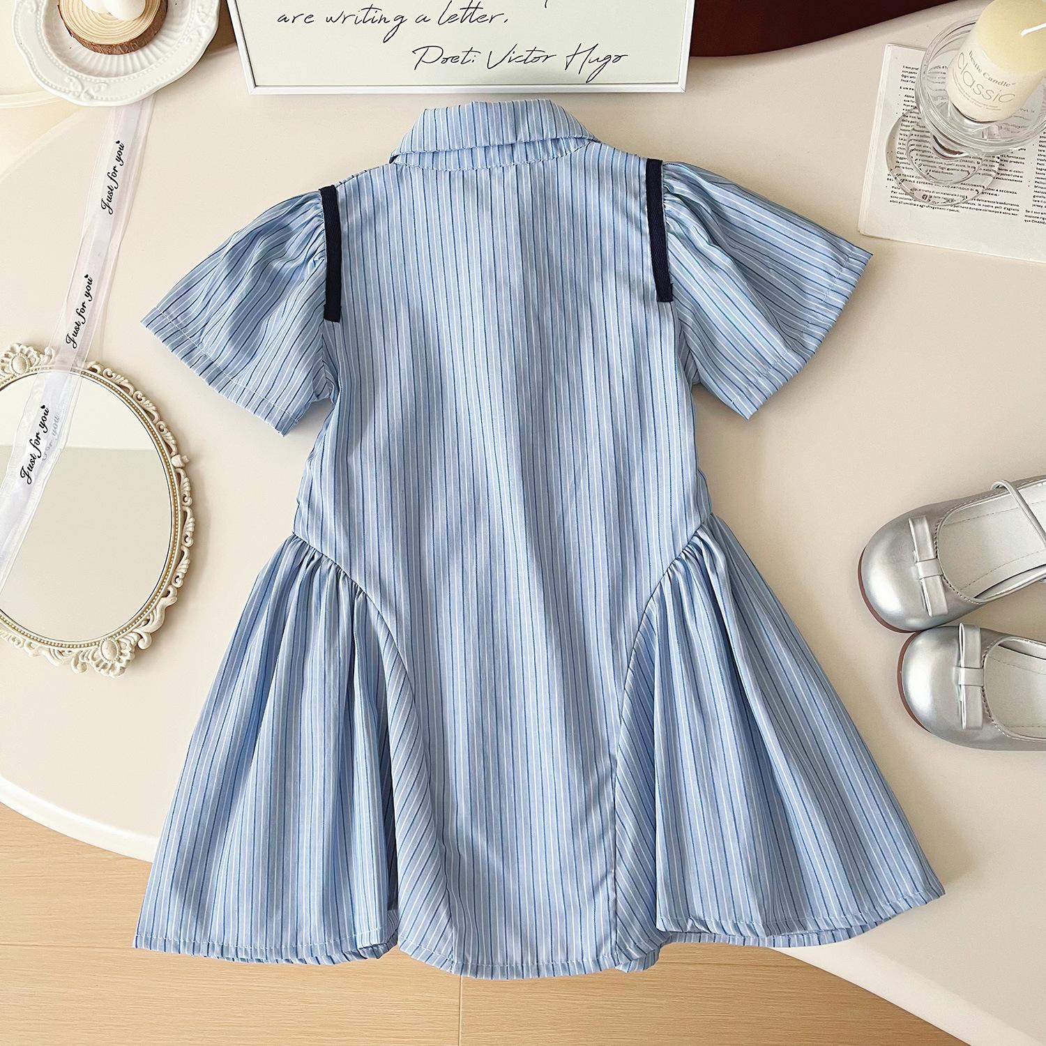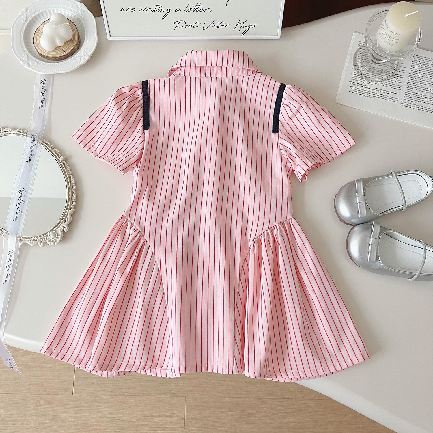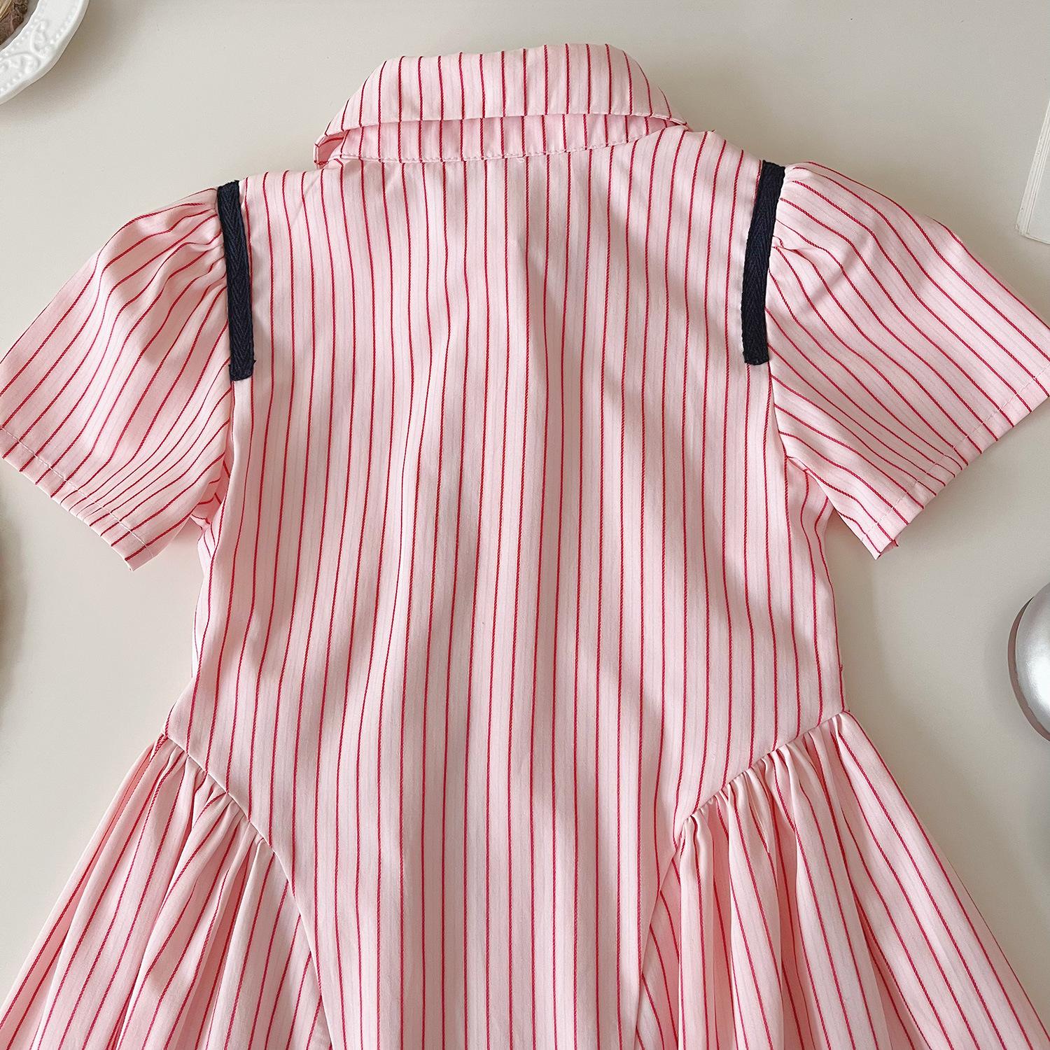 Vestido para niña, verano 2024, nuevo, estilo universitario de conejo, vestido informal de manga corta a rayas