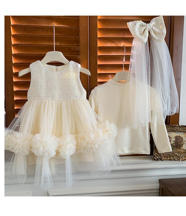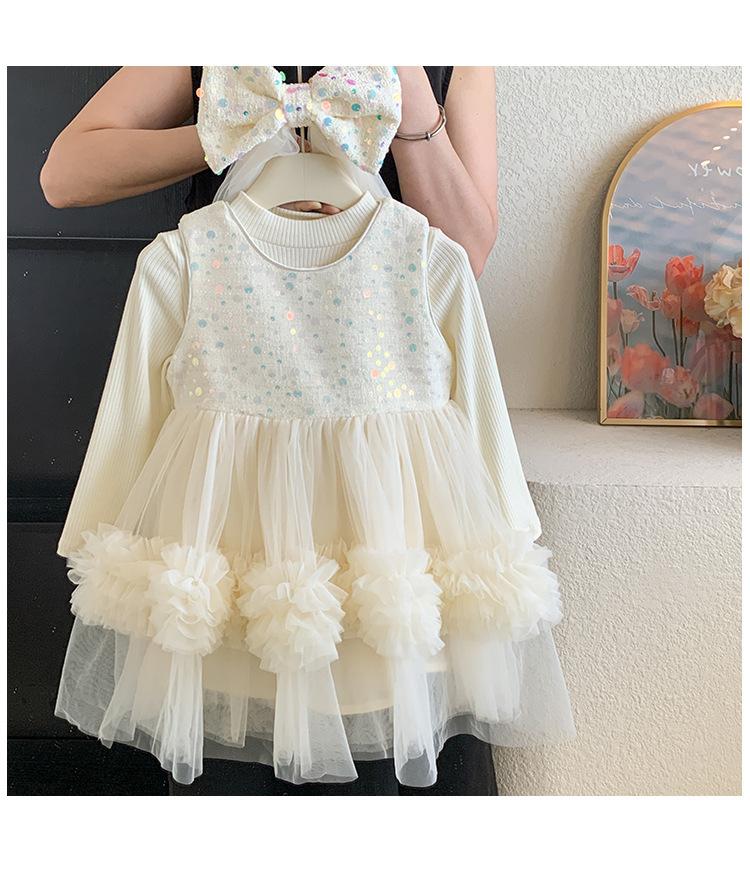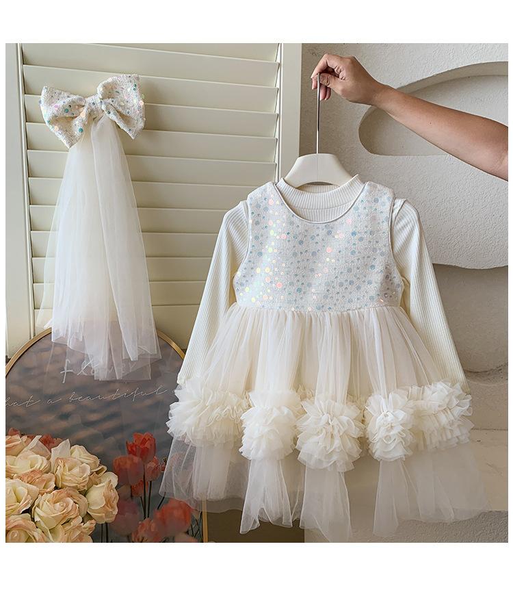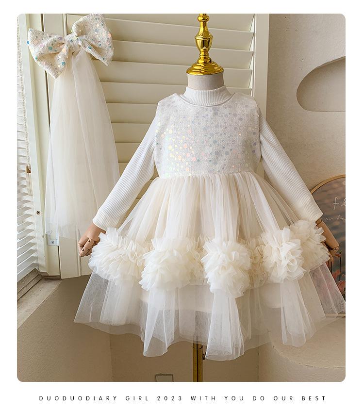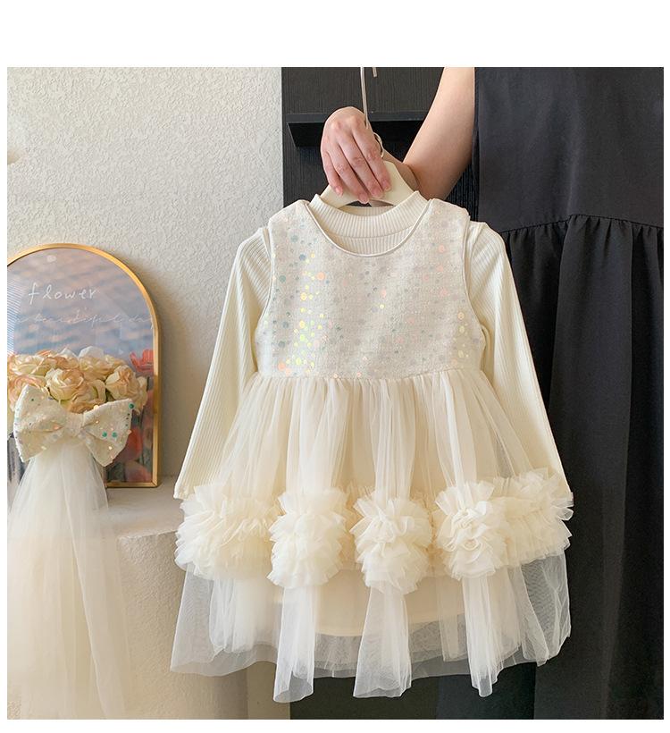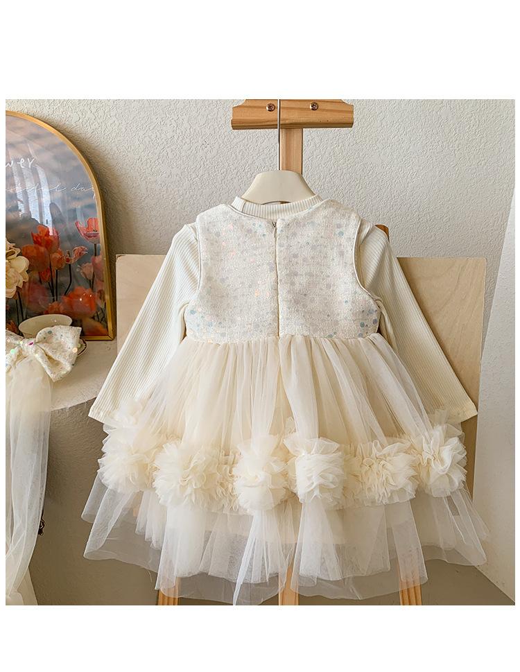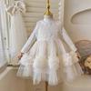 Vestido de estilo occidental para niñas, invierno 2024, forrado de vellón, estilo coreano, vestido de princesa de malla de súper hada para niñas, vestido para niñas pequeñas