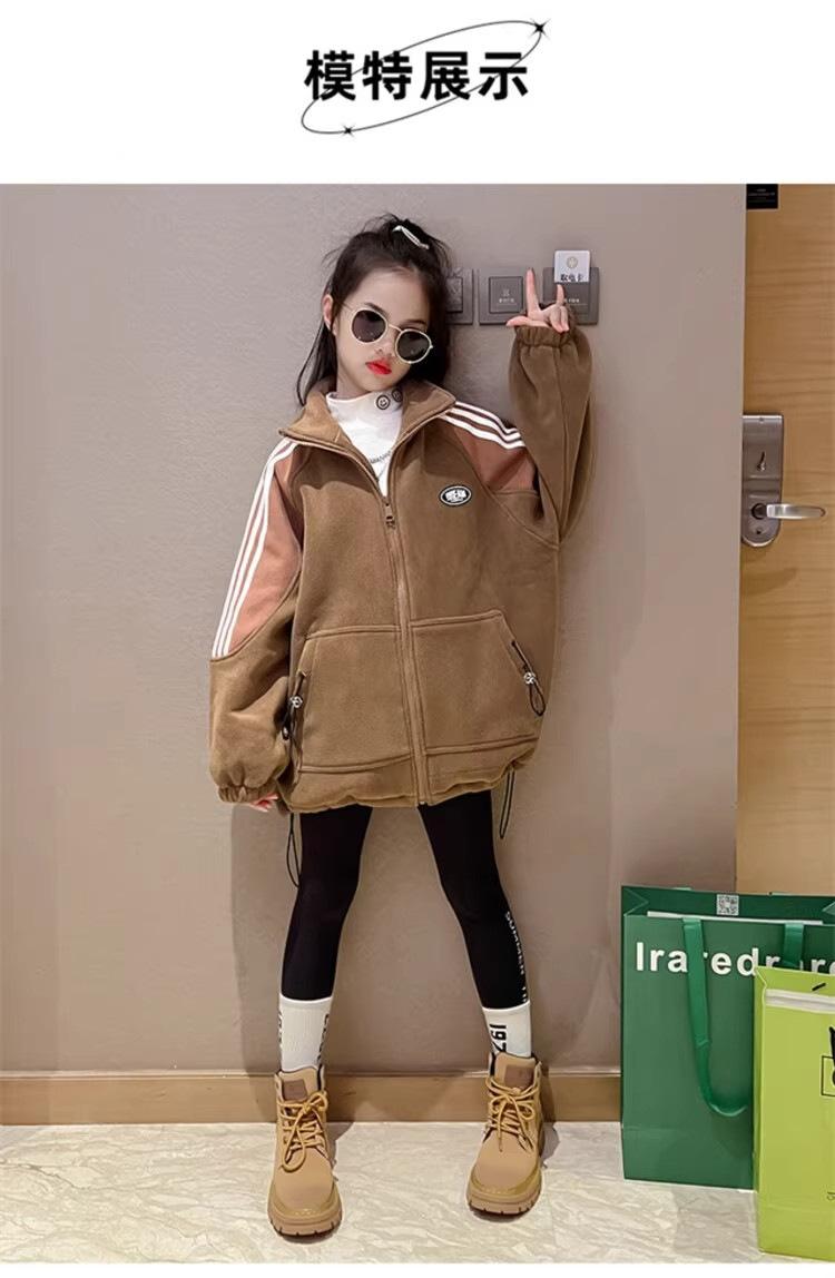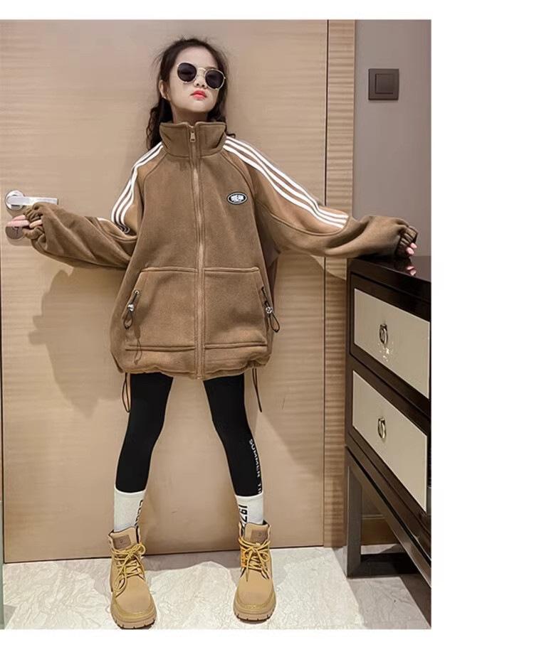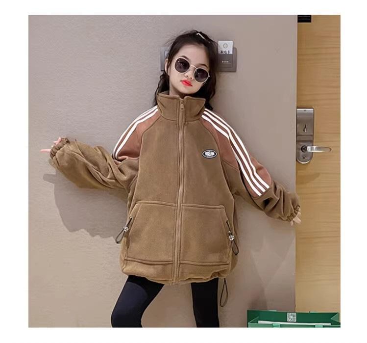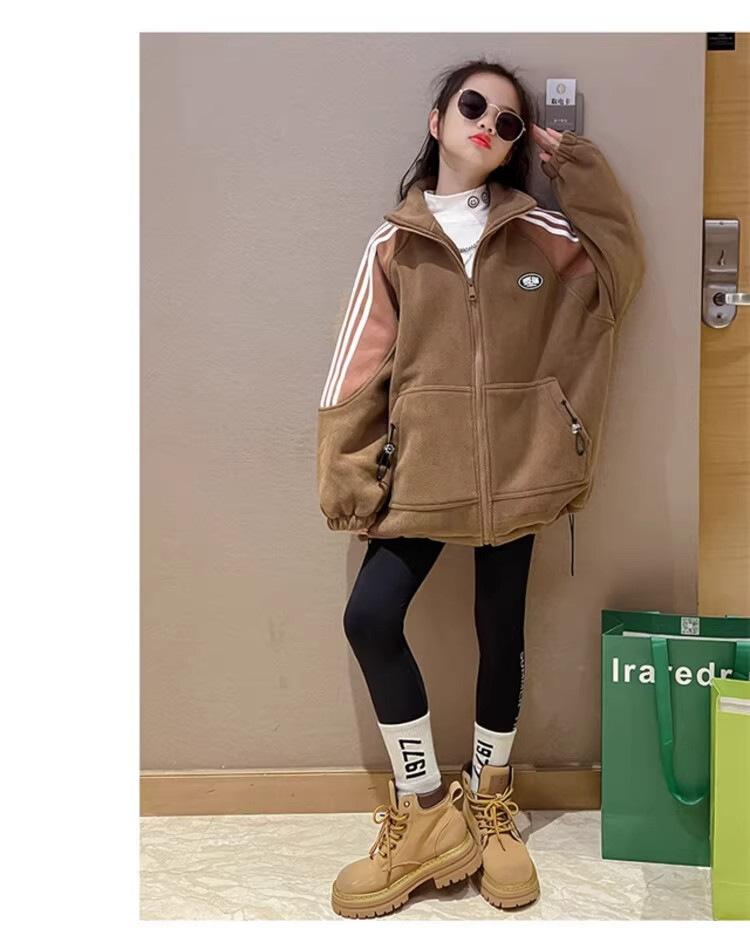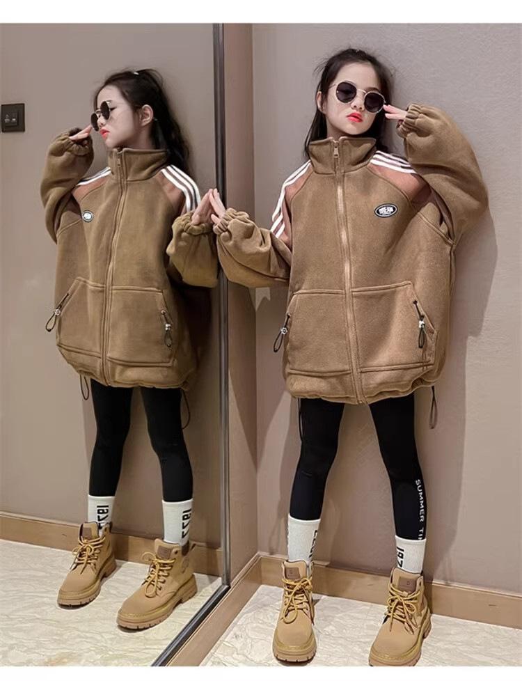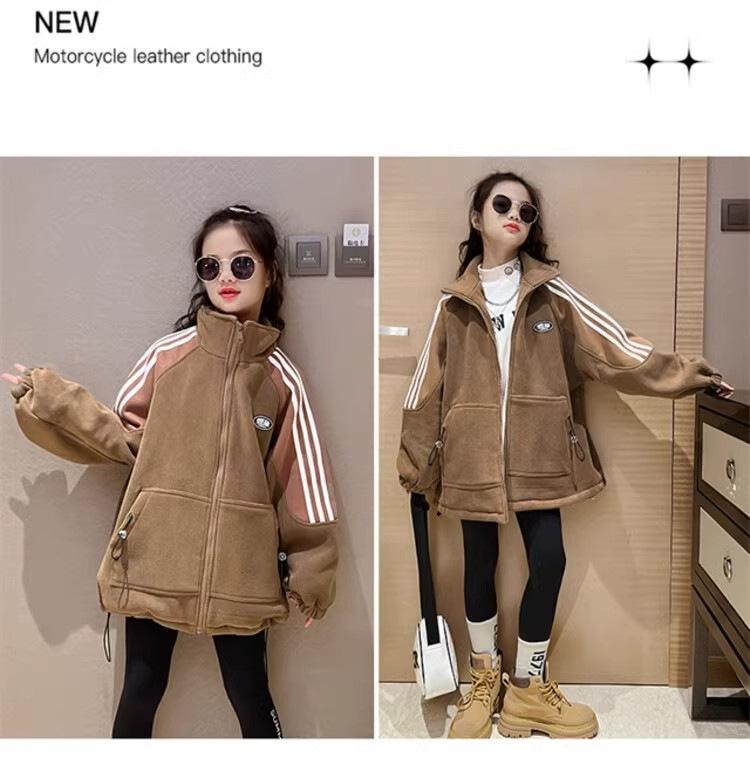 Abrigo de estilo coreano para niñas, otoño e invierno de 2024, nuevo estilo occidental, chaqueta de forro polar informal de invierno para niñas de talla mediana y grande.