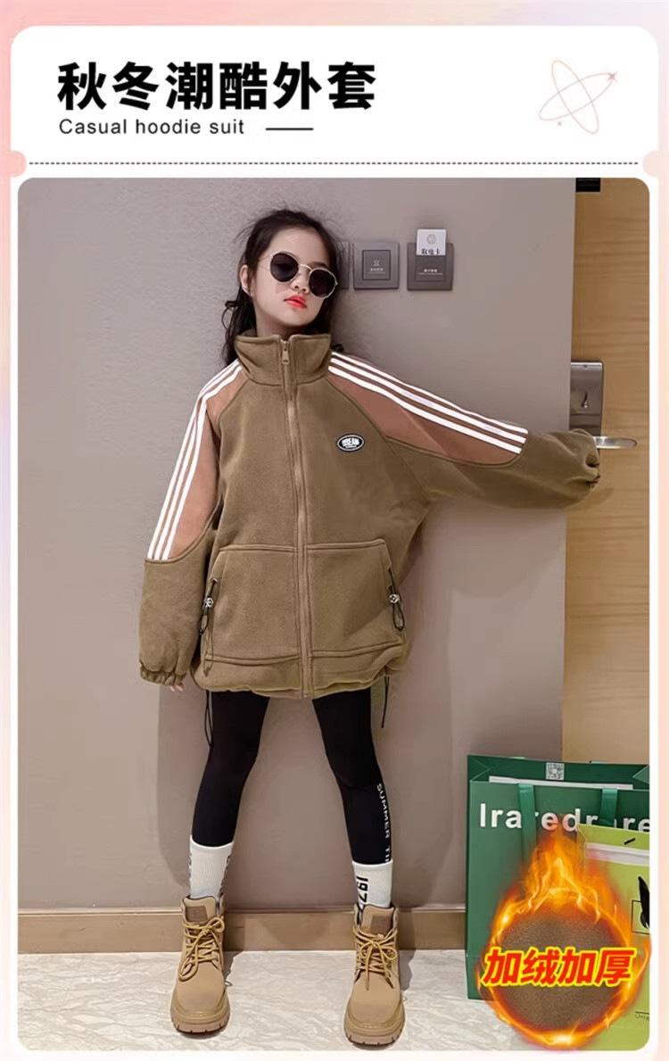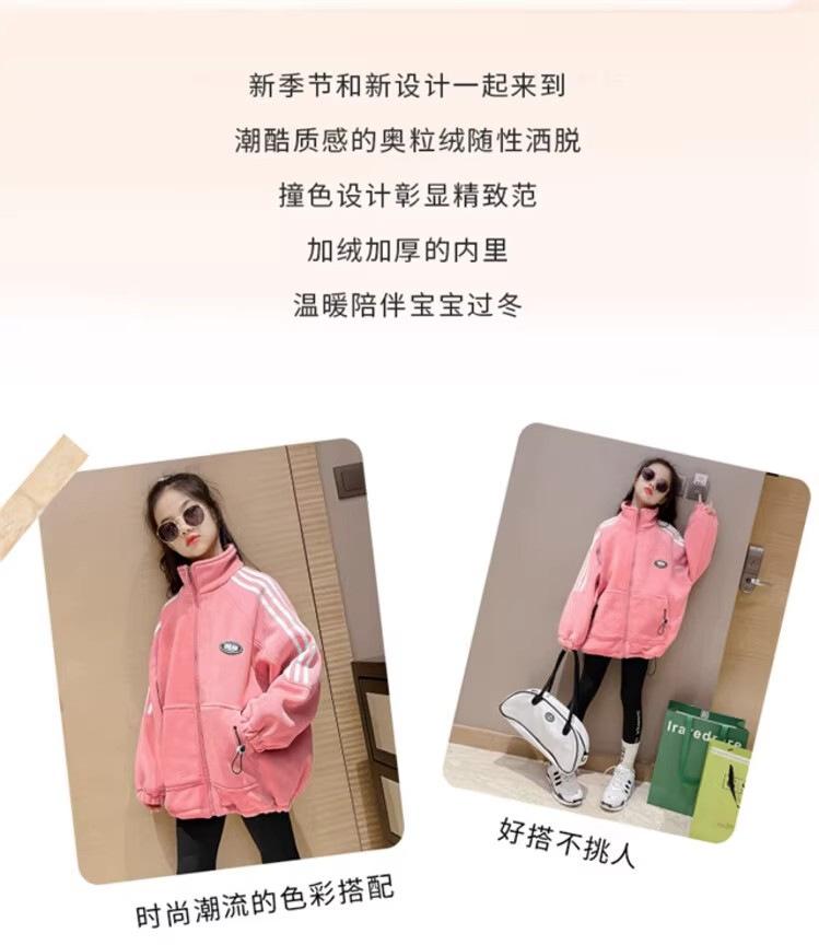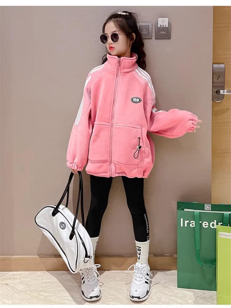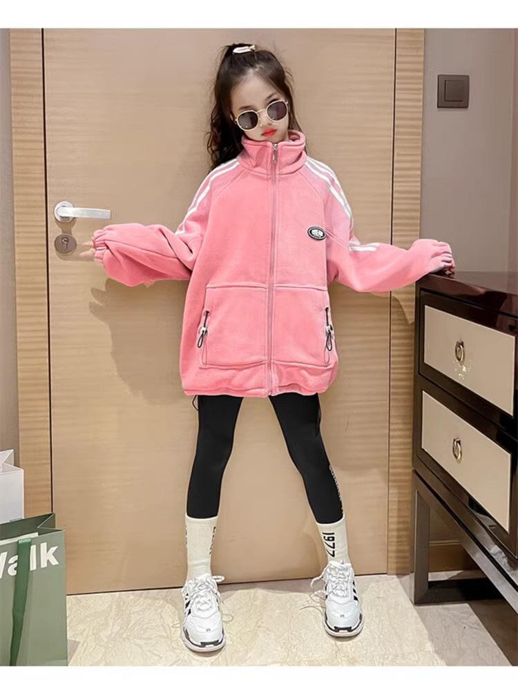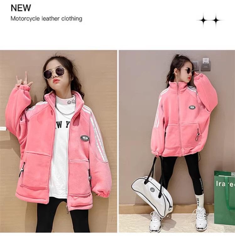 Abrigo de estilo coreano para niñas, otoño e invierno de 2024, nuevo estilo occidental, chaqueta de forro polar informal de invierno para niñas de talla mediana y grande.