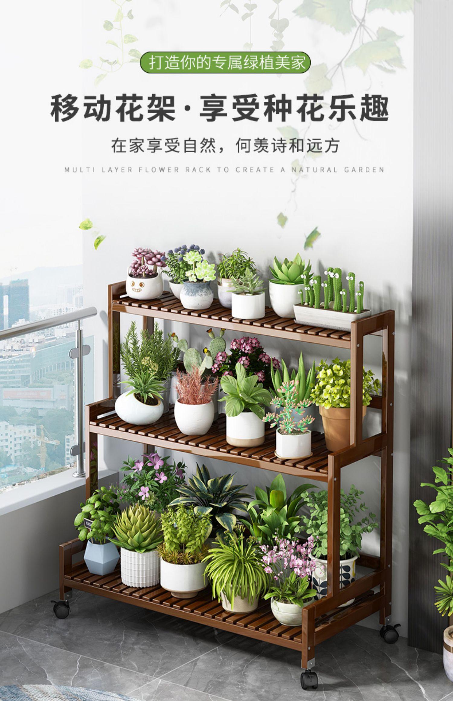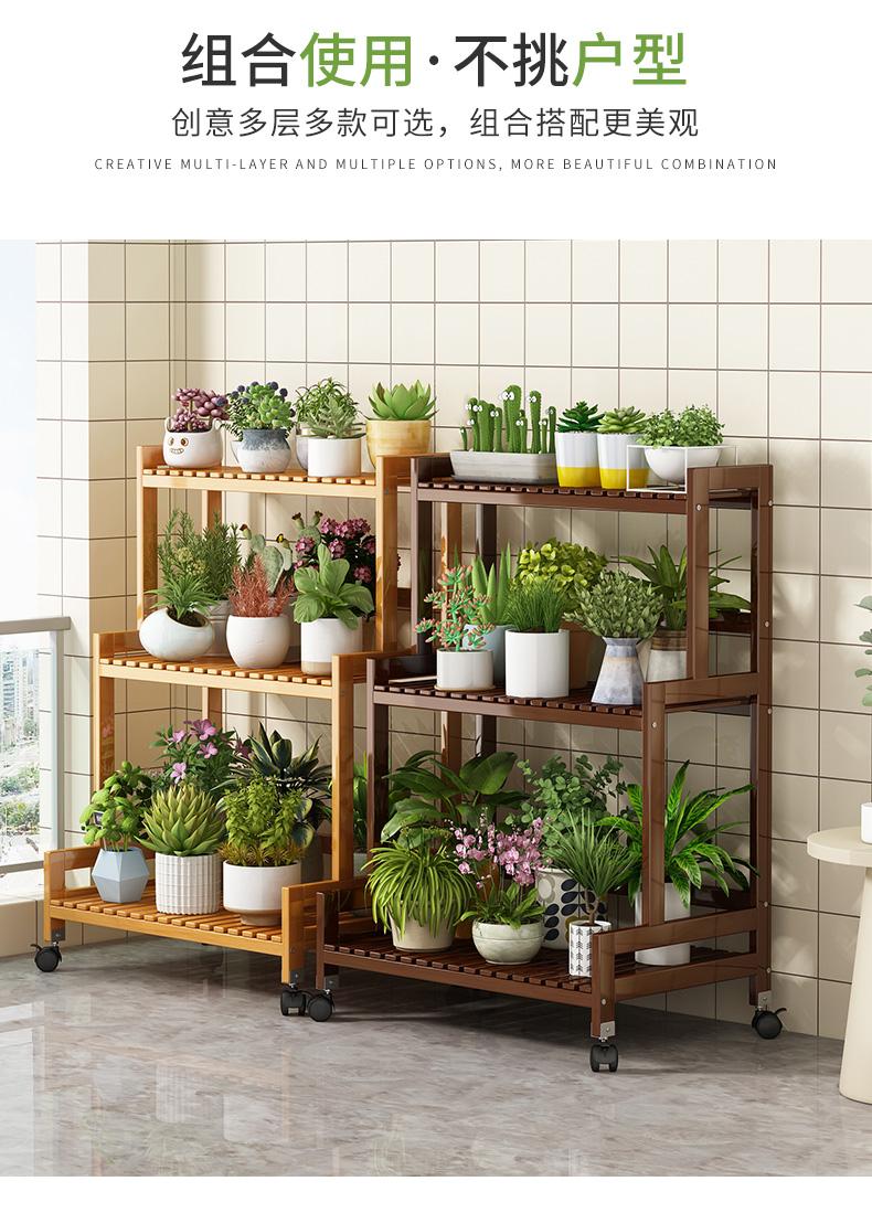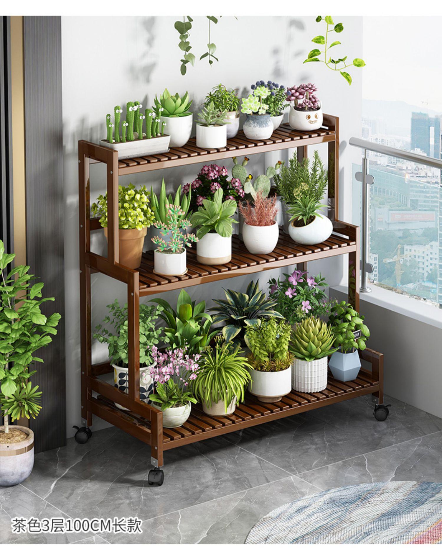 Soporte para Flores de Balcón al por Mayor con Ruedas para Sala de Estar de Pie Suculento Móvil Soporte para Flores Simple Moderno de Múltiples Capas