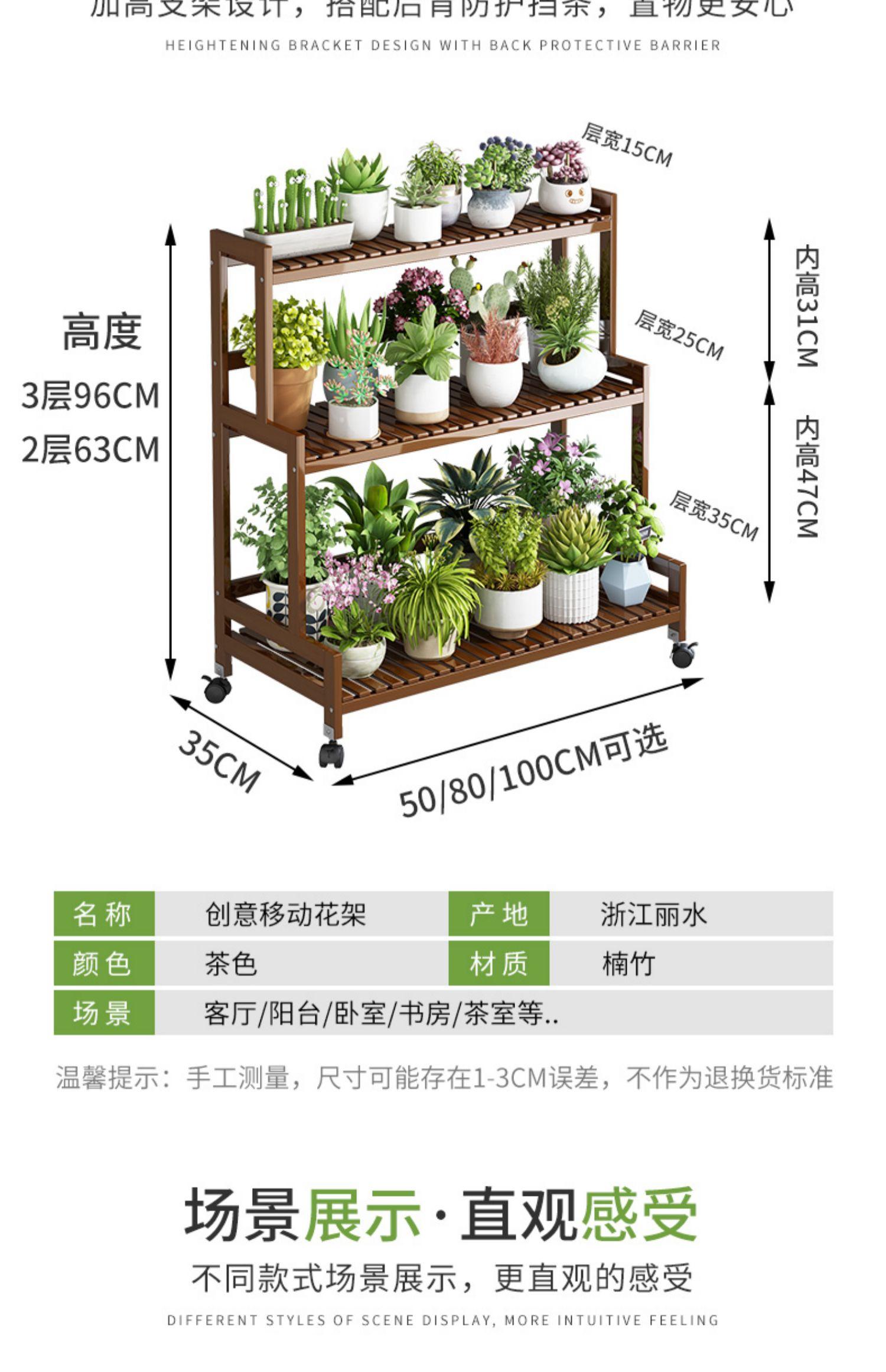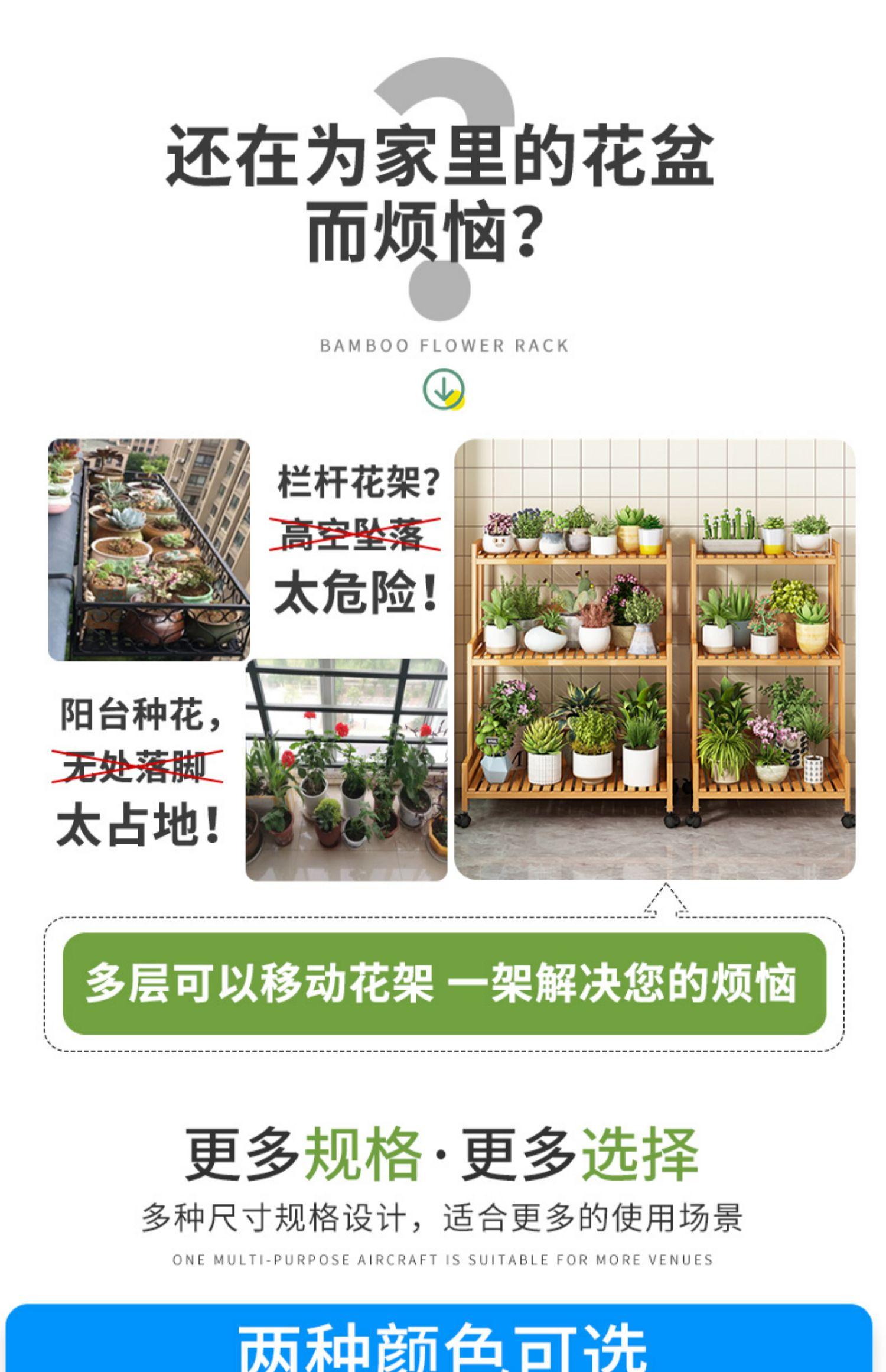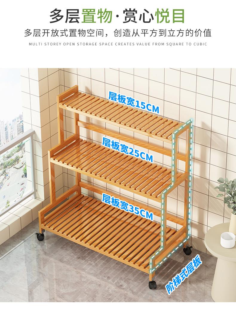 Soporte para Flores de Balcón al por Mayor con Ruedas para Sala de Estar de Pie Suculento Móvil Soporte para Flores Simple Moderno de Múltiples Capas