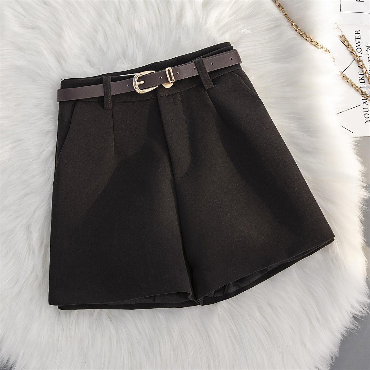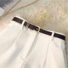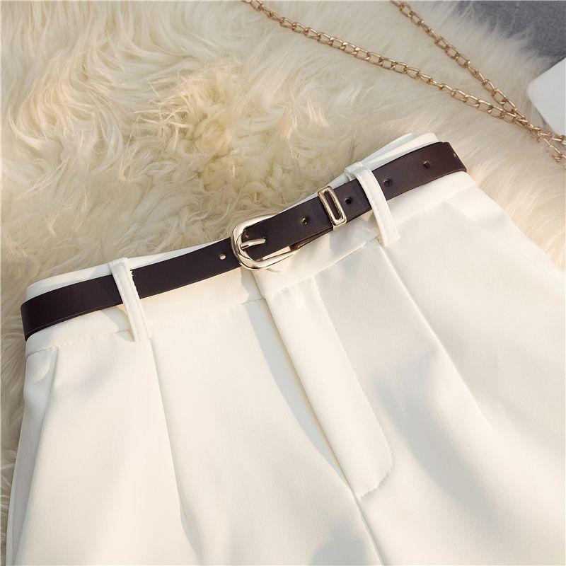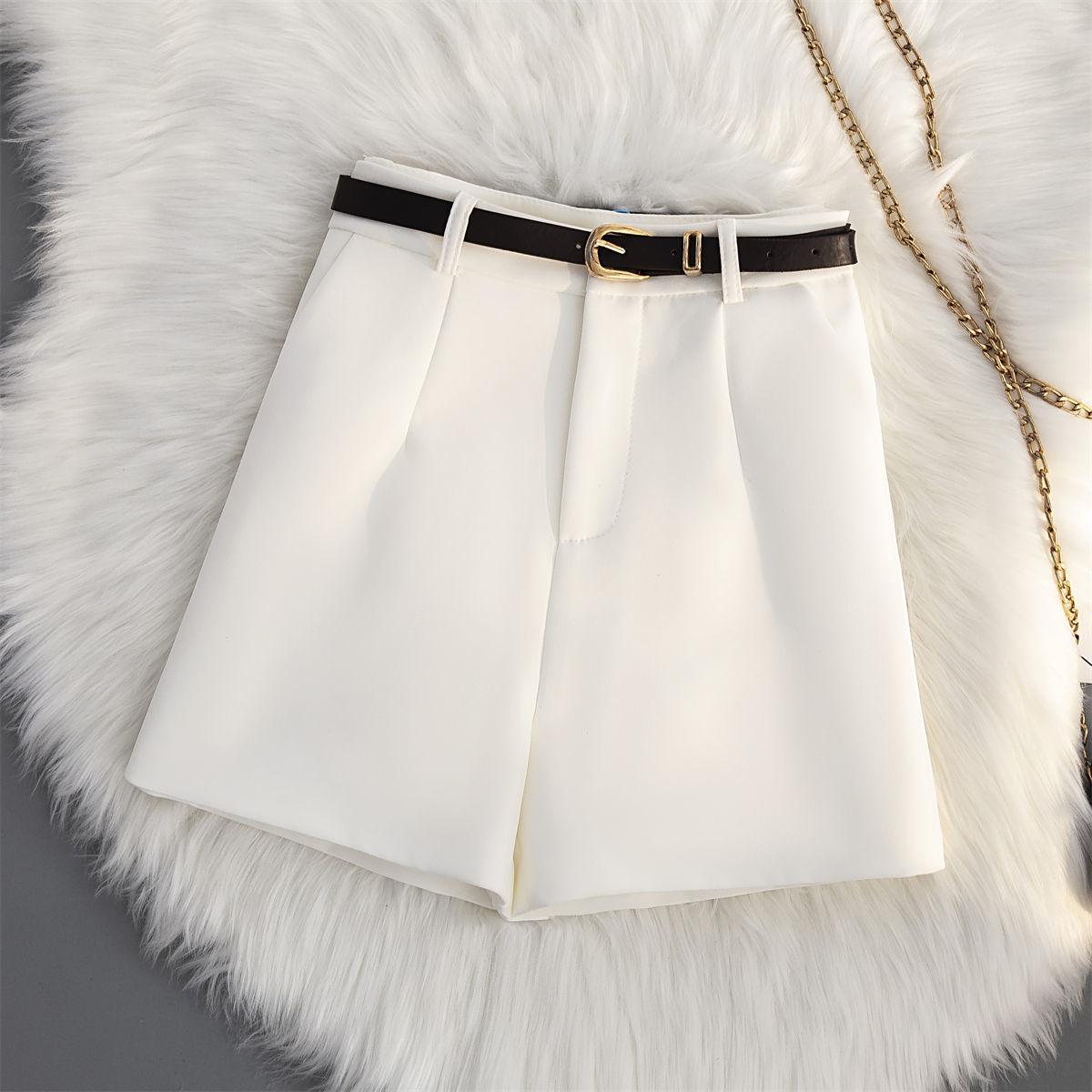 Pantalones cortos blancos con cinturón para mujer, verano 2023, cintura alta, ajustados, corte A, pierna ancha, holgados, informales
