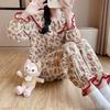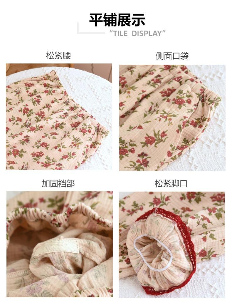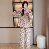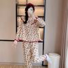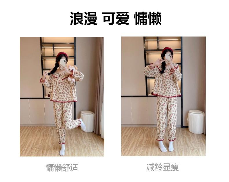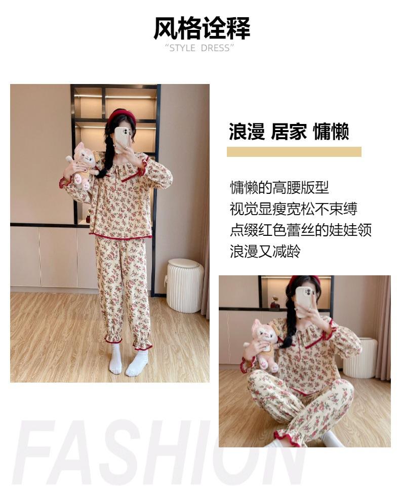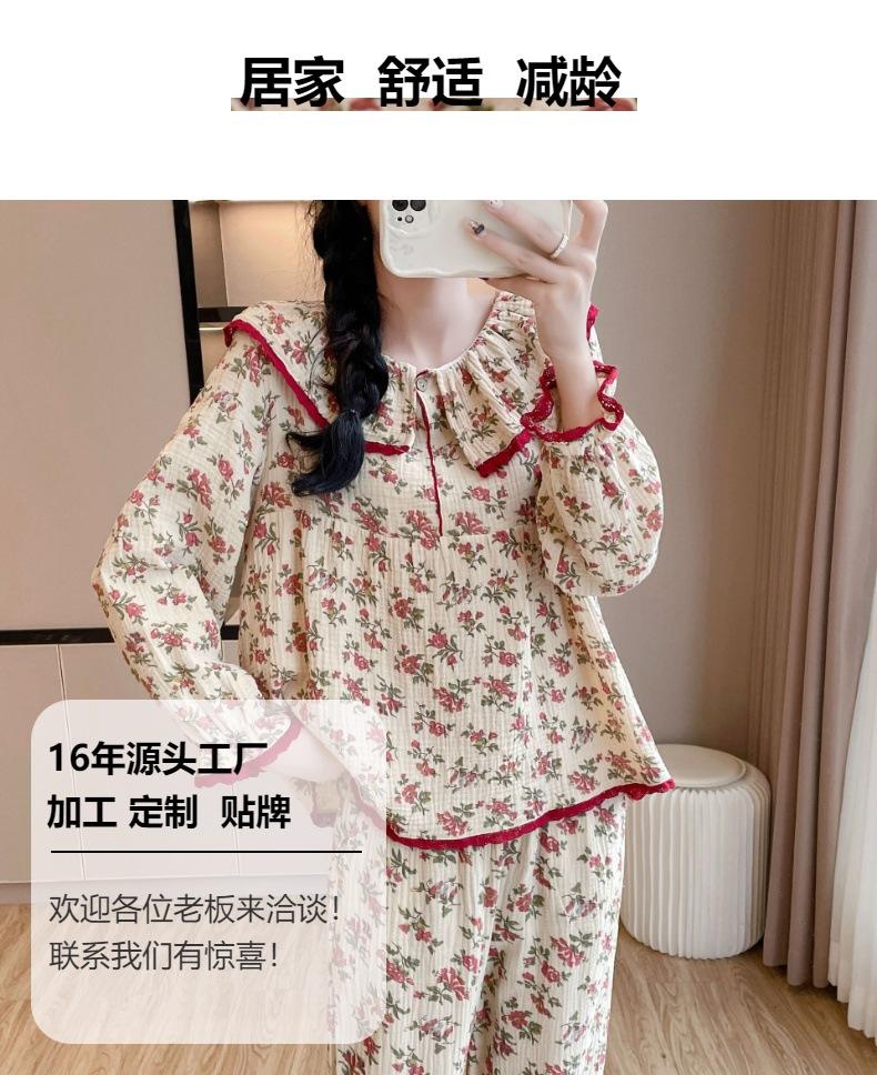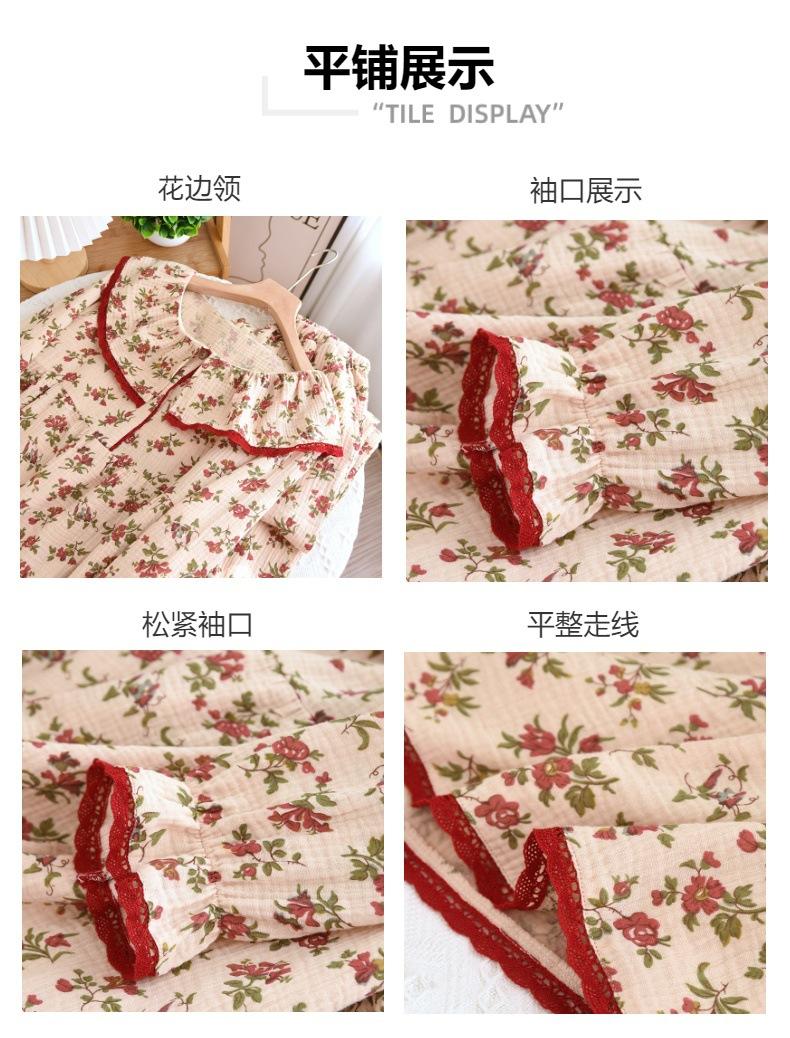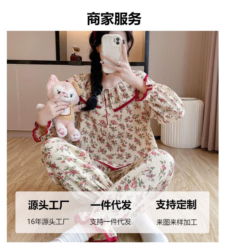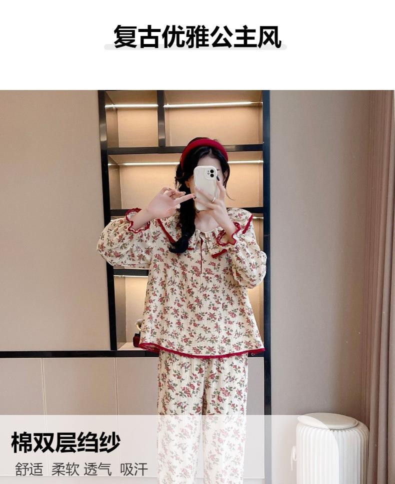 Pijama para Mujer Cuello de Encaje Primavera y Otoño y Verano Doble Capa Sauer Delgada Pantalones de Manga Larga Jersey Estilo Pastoral Dulce Ropa para el Hogar