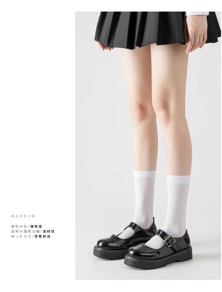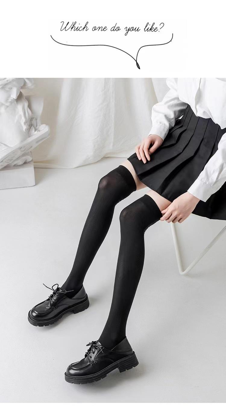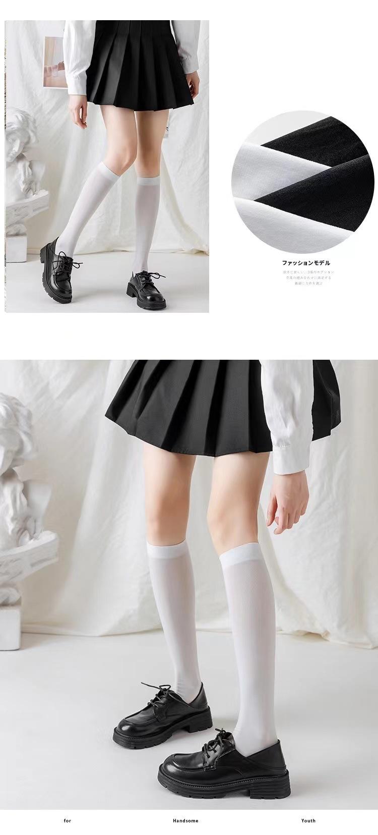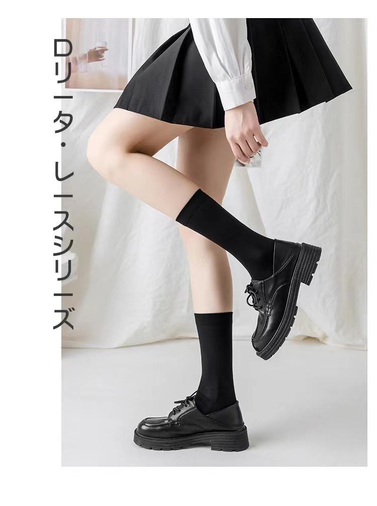 Calcetines Cub Negros para Mujer Primavera y Otoño Combinación Zapatos Mary Jane Jk Verano Delgados Hasta la Rodilla Calcetines Medios Terciopelo Color Sólido