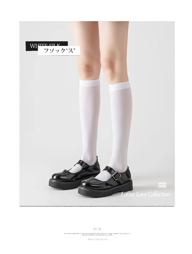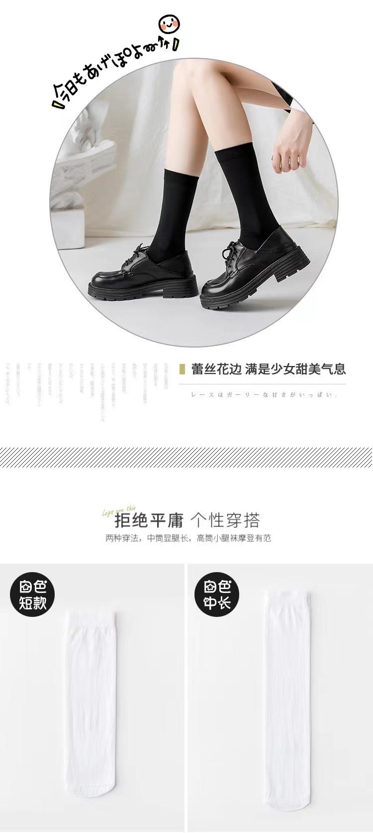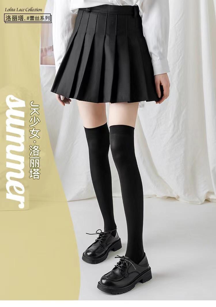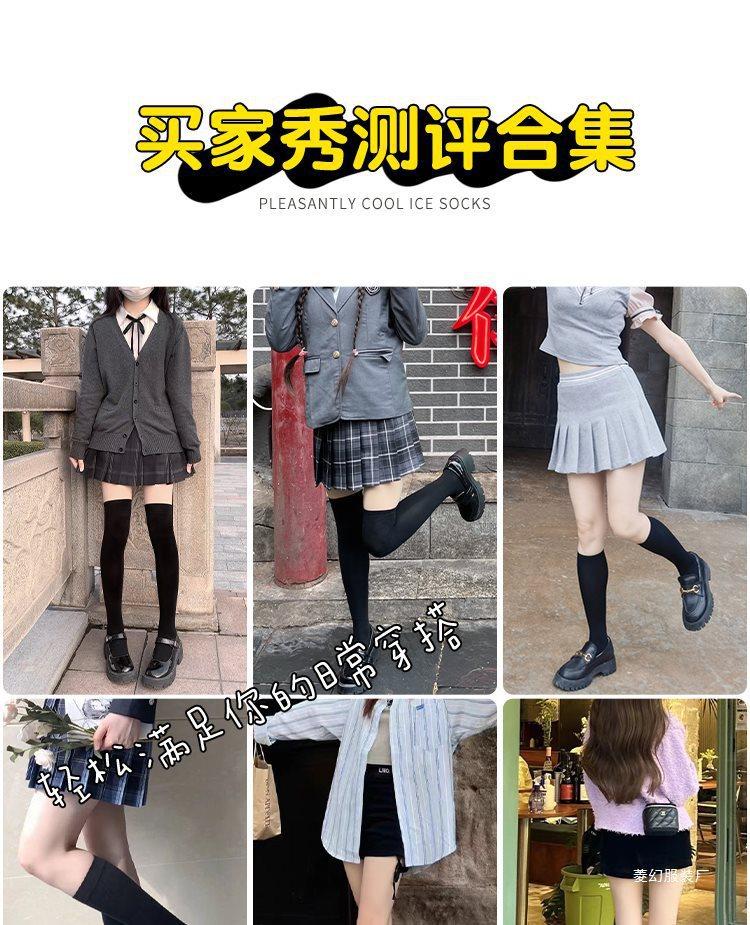 Calcetines Cub Negros para Mujer Primavera y Otoño Combinación Zapatos Mary Jane Jk Verano Delgados Hasta la Rodilla Calcetines Medios Terciopelo Color Sólido