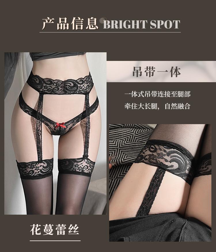 Calcetines de una pieza con tirantes de encaje sedosos negros + Braguita de encaje negra NY1WZT002094 (Precio limitado: 23,8)