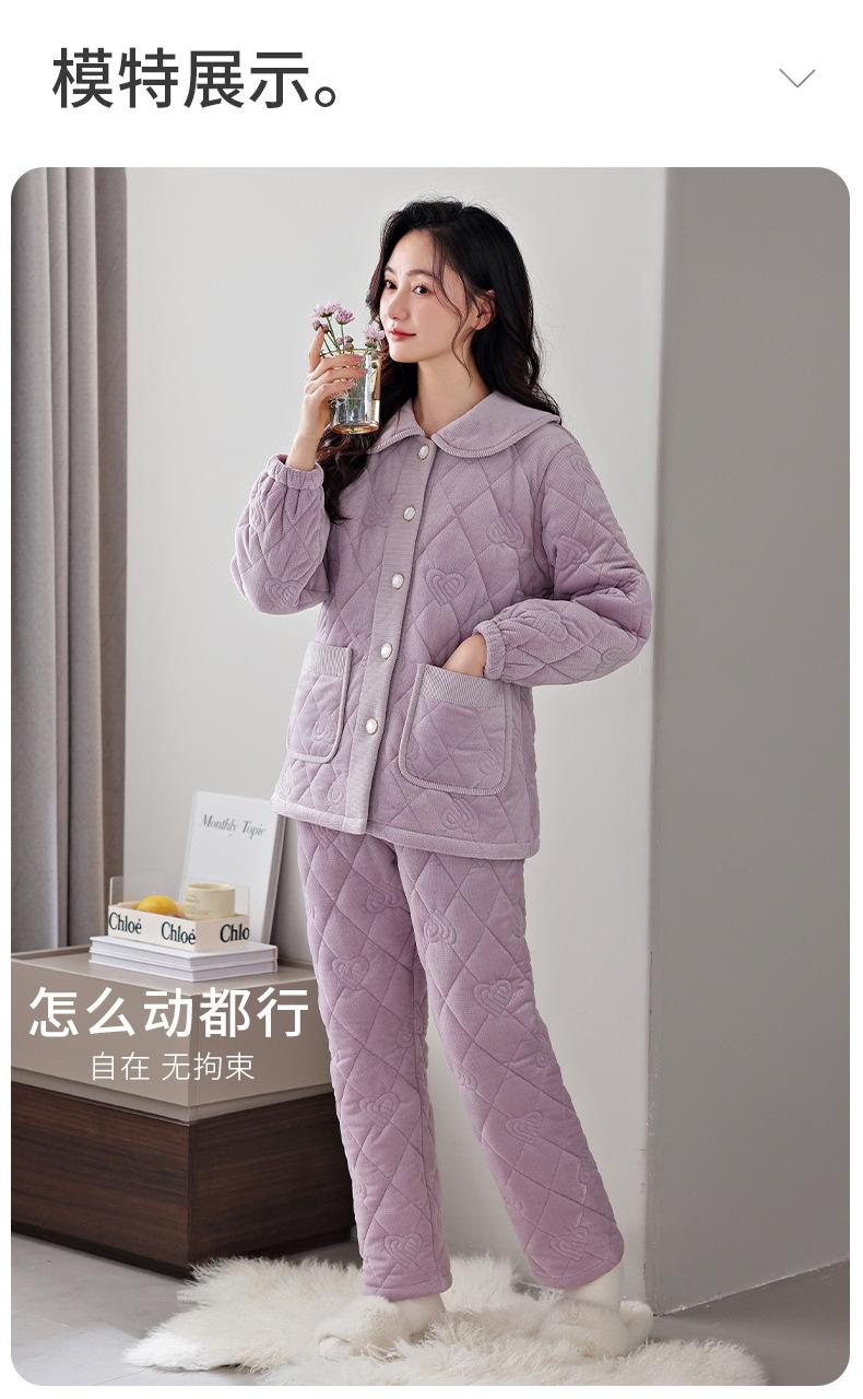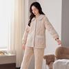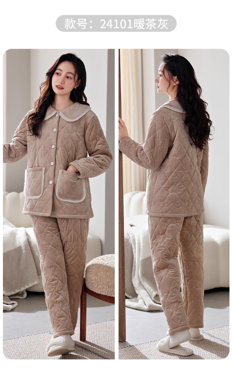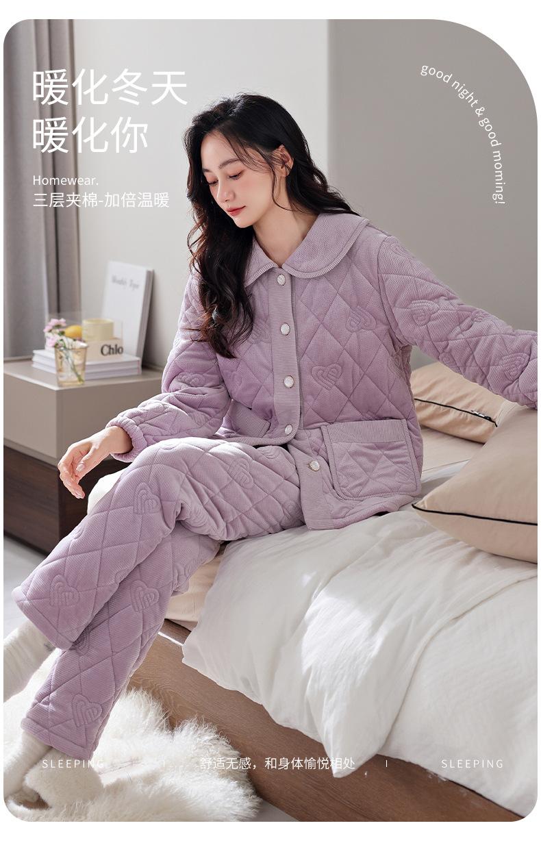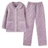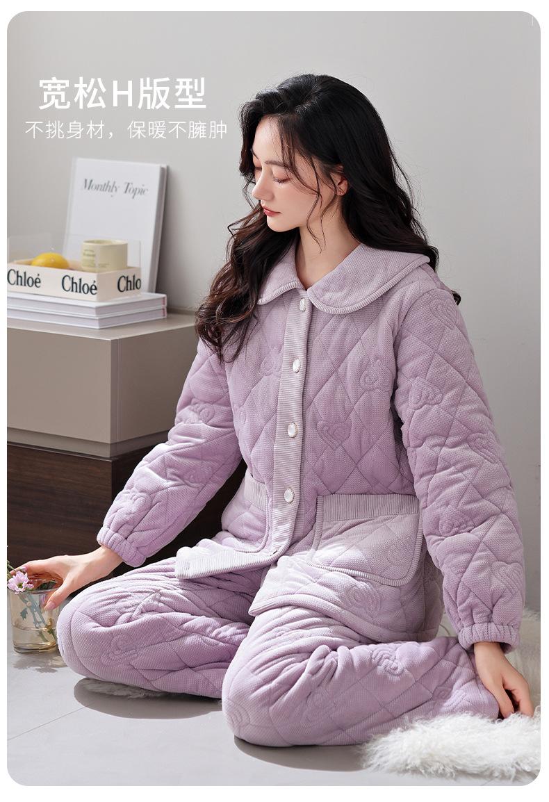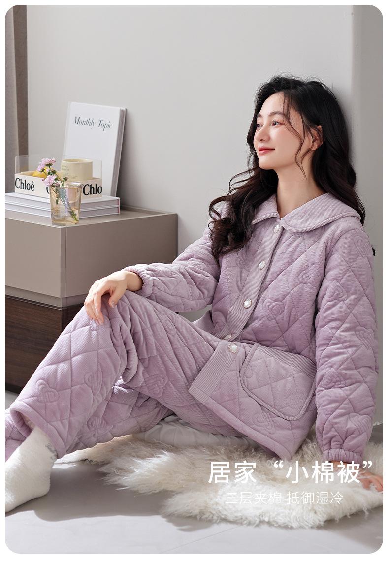 Pijama Grueso Cálido de Estilo Nuevo para Mujer Cárdigan Acolchado de Tres Capas Manga Larga Otoño e Invierno Traje de Ropa para el Hogar Sencillo y a la Moda para Mujer