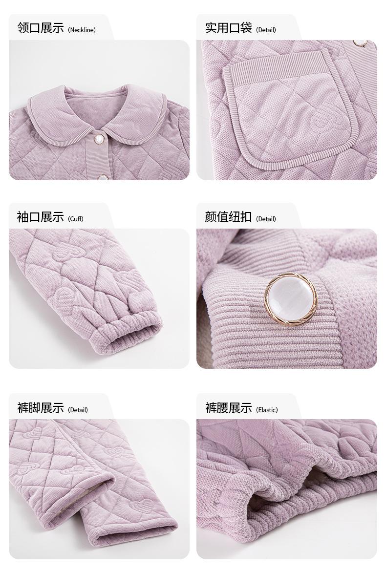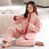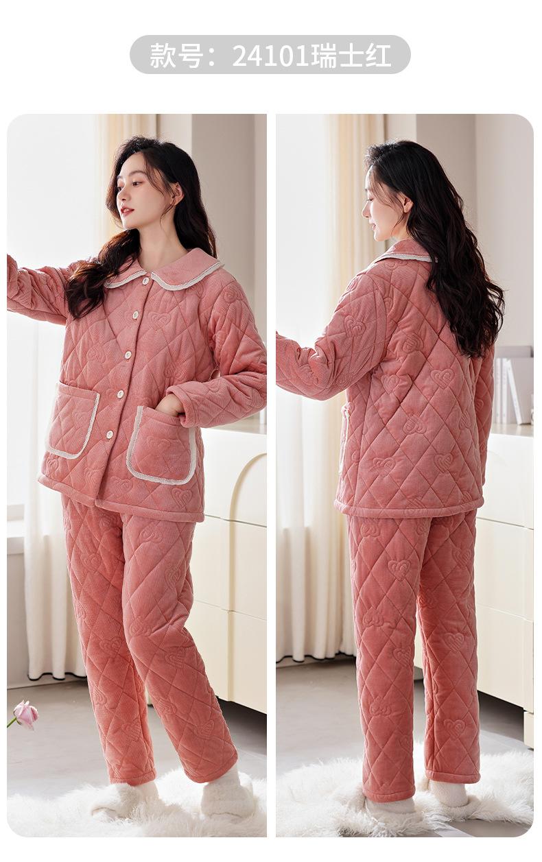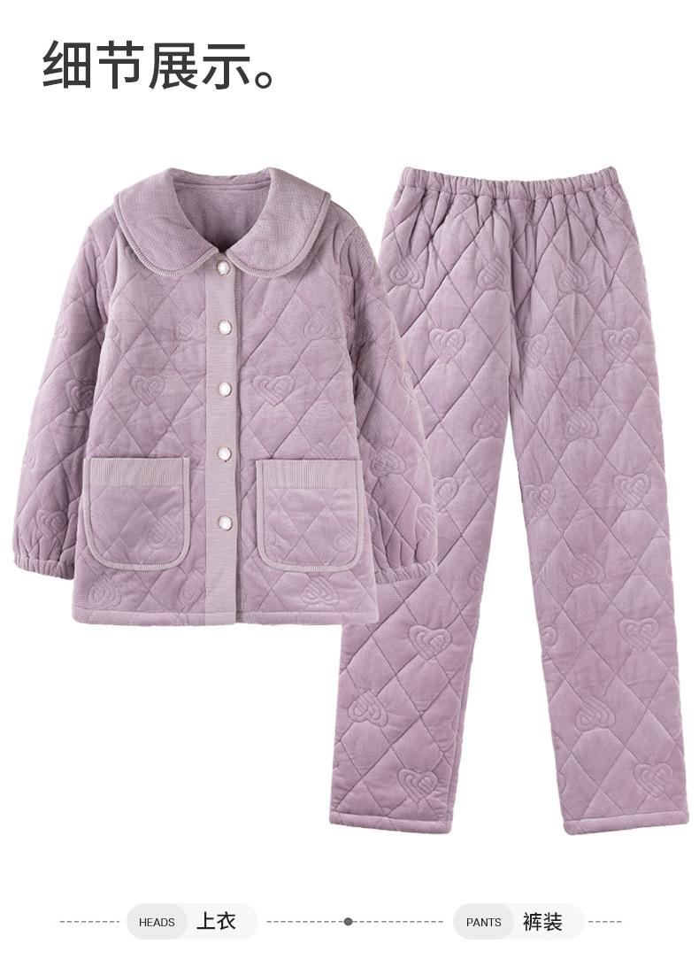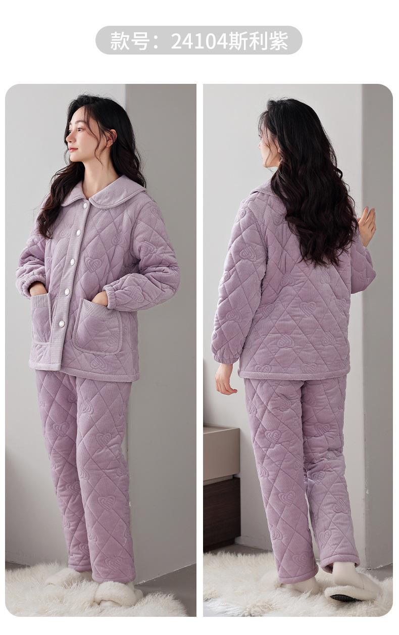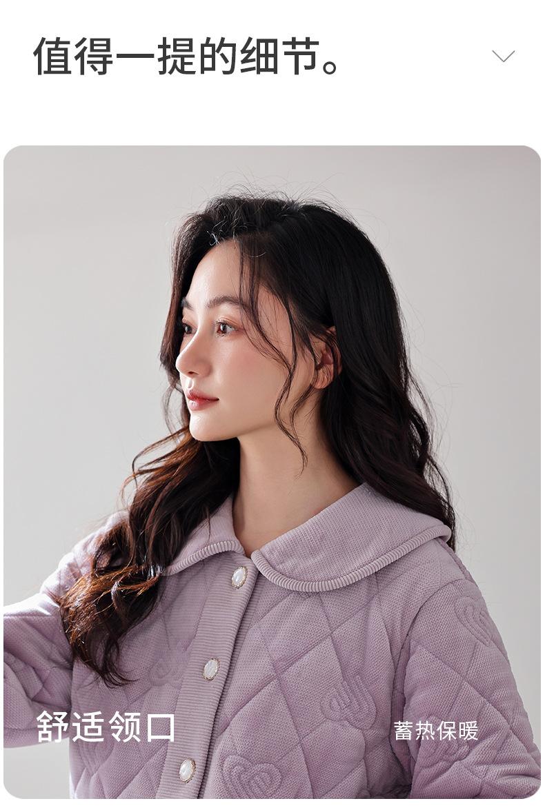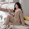 Pijama Grueso Cálido de Estilo Nuevo para Mujer Cárdigan Acolchado de Tres Capas Manga Larga Otoño e Invierno Traje de Ropa para el Hogar Sencillo y a la Moda para Mujer