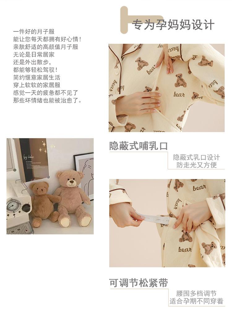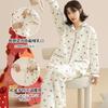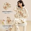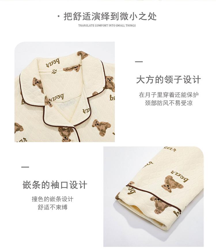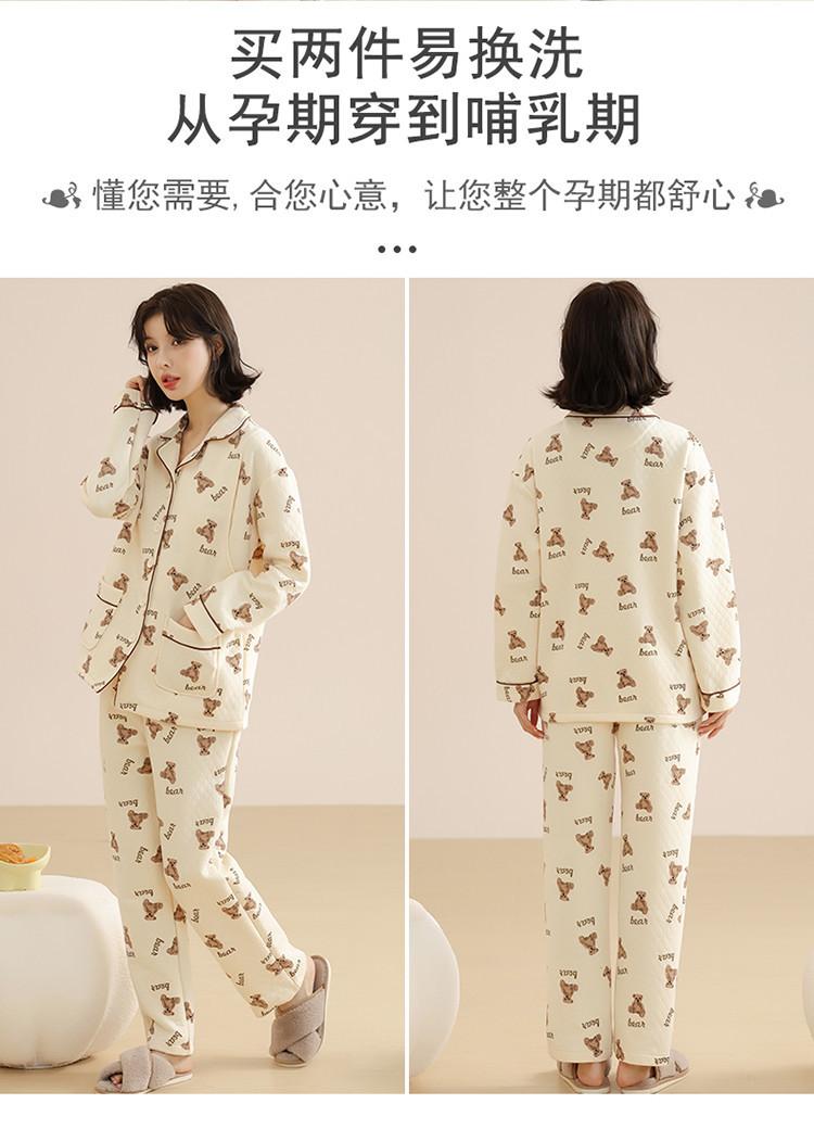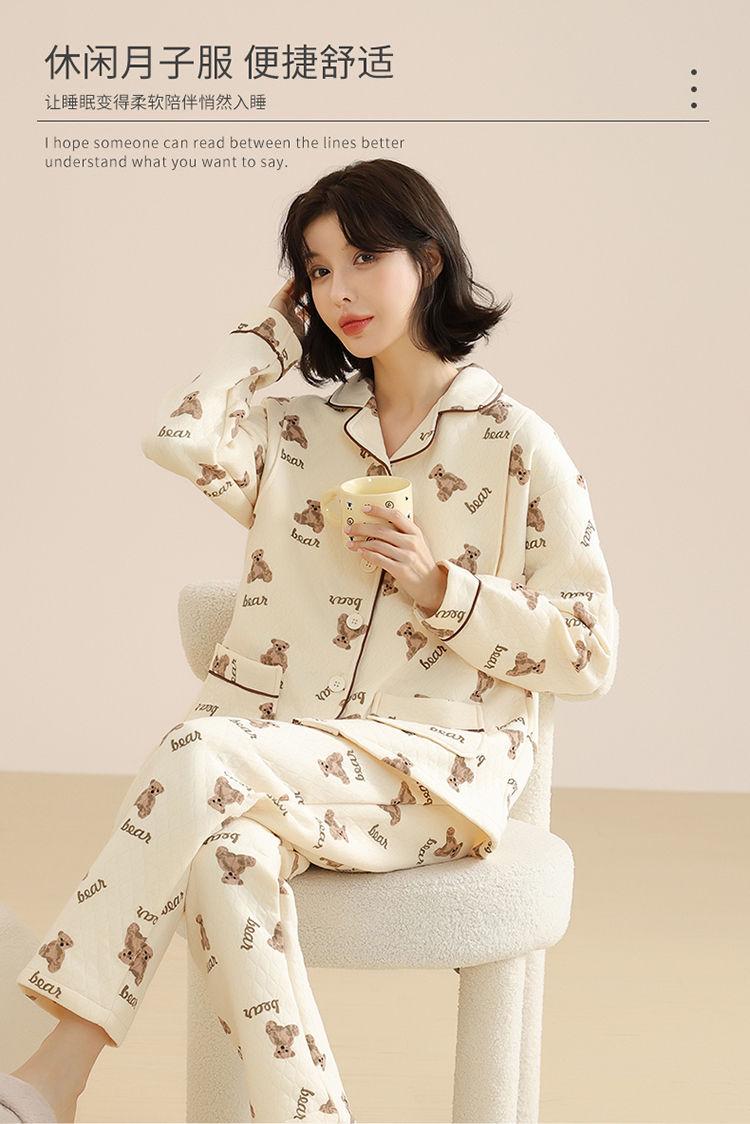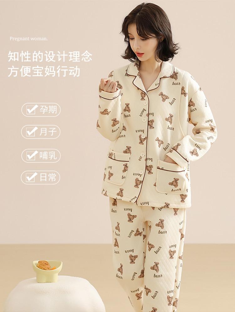 Ropa Mensual Pijamas Otoño e Invierno Algodón Puro Manga Larga Sándwich Engrosado Cálido Mujeres Embarazadas Postparto Lactancia Ropa de Casa Traje
