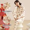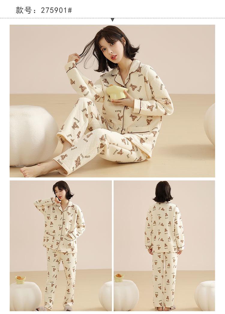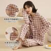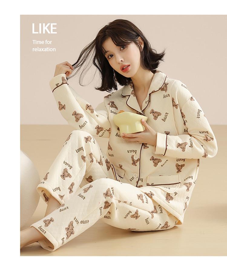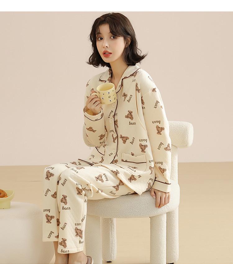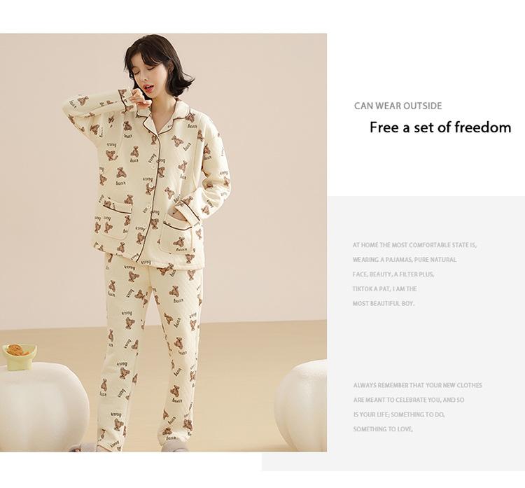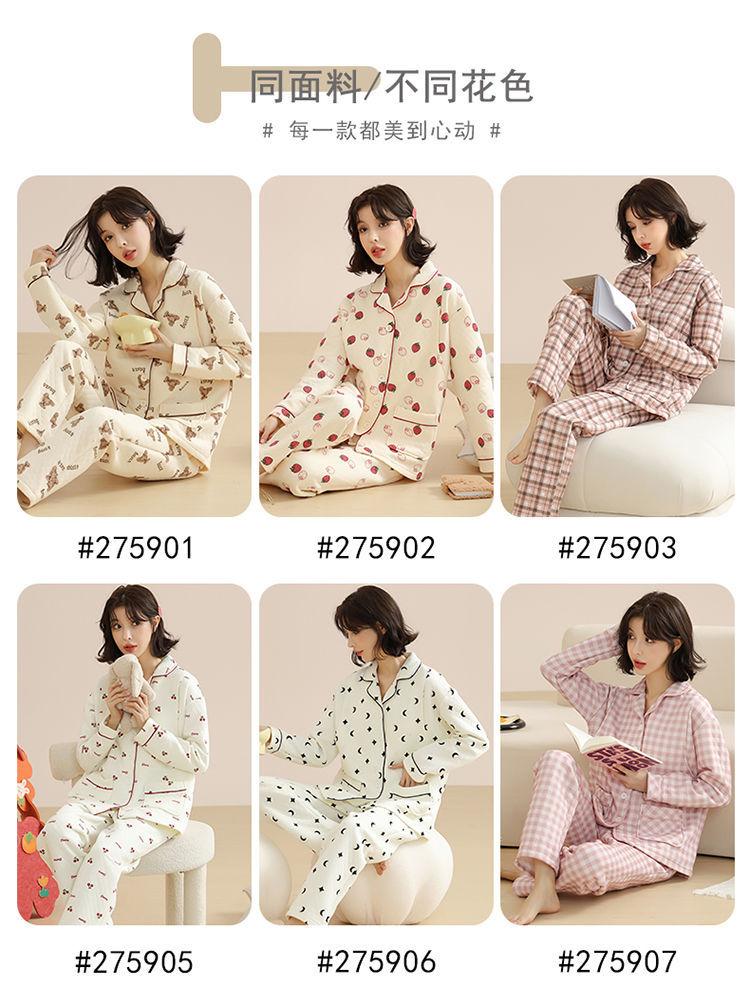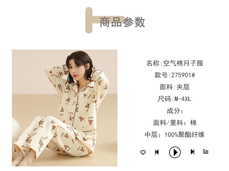Ropa Mensual Pijamas Otoño e Invierno Algodón Puro Manga Larga Sándwich Engrosado Cálido Mujeres Embarazadas Postparto Lactancia Ropa de Casa Traje