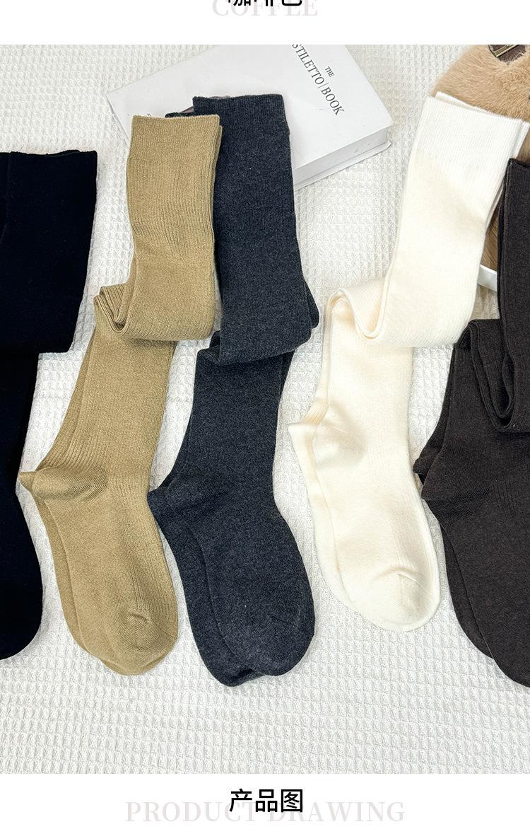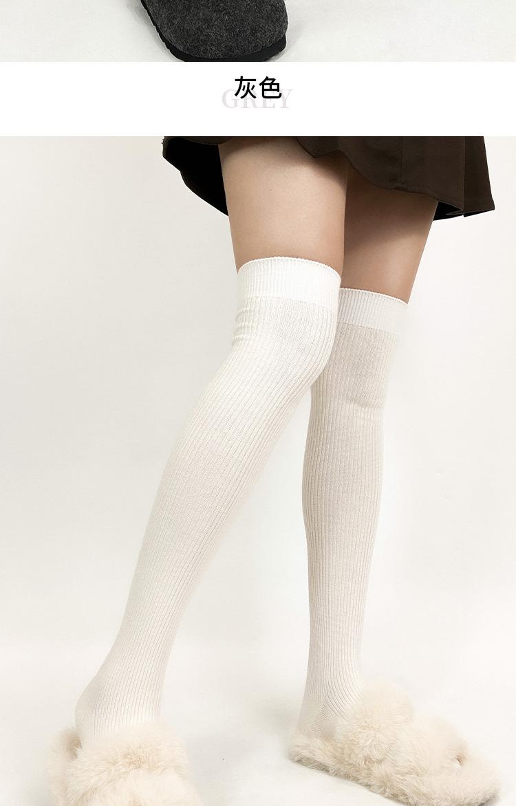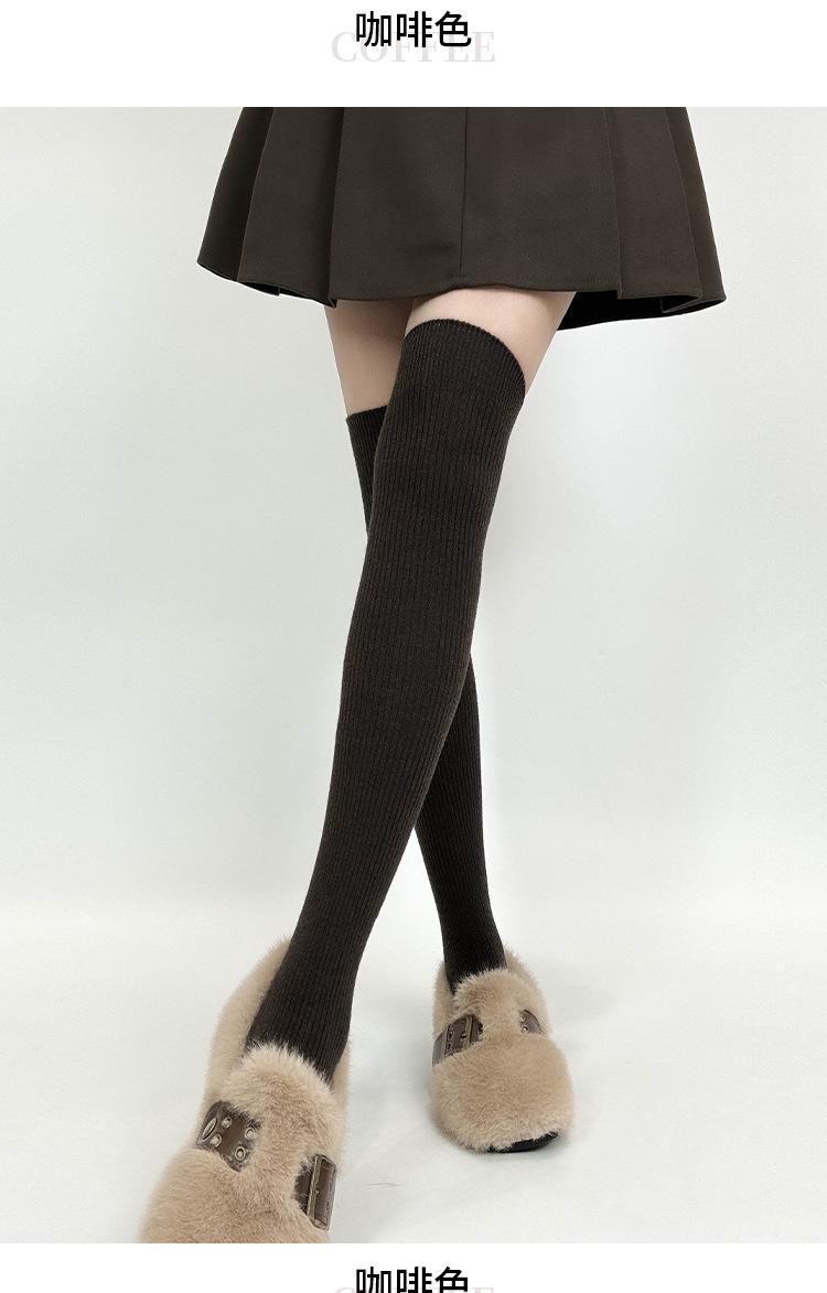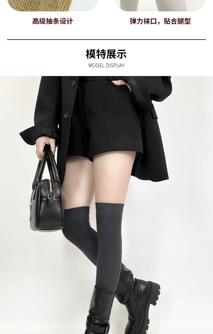 Calcetines Nuevos de Otoño e Invierno para Mujer, Rayas de Canalé de Color Puro, Calcetines de Lana de Doble Aguja por Encima de la Rodilla, Rodilleras, Look Adelgazante y Medias Cálidas