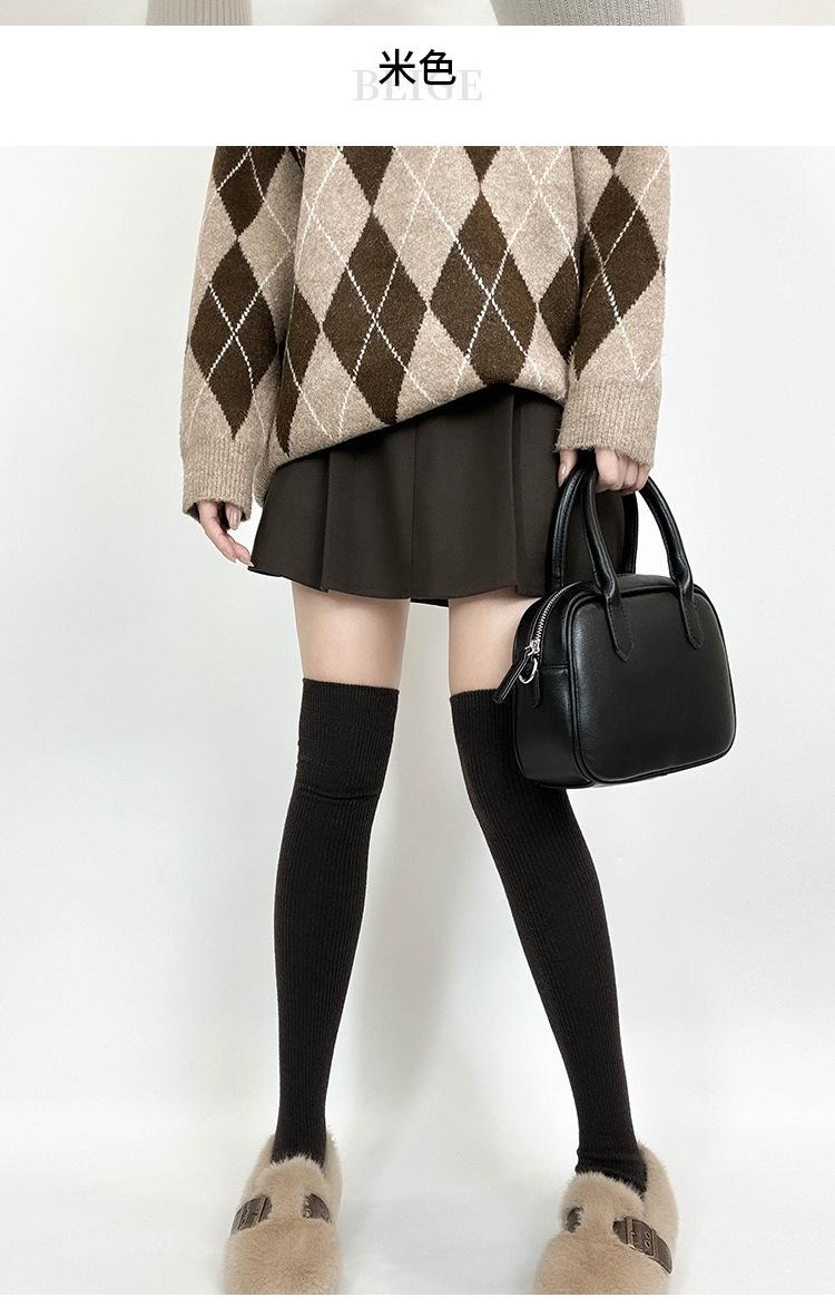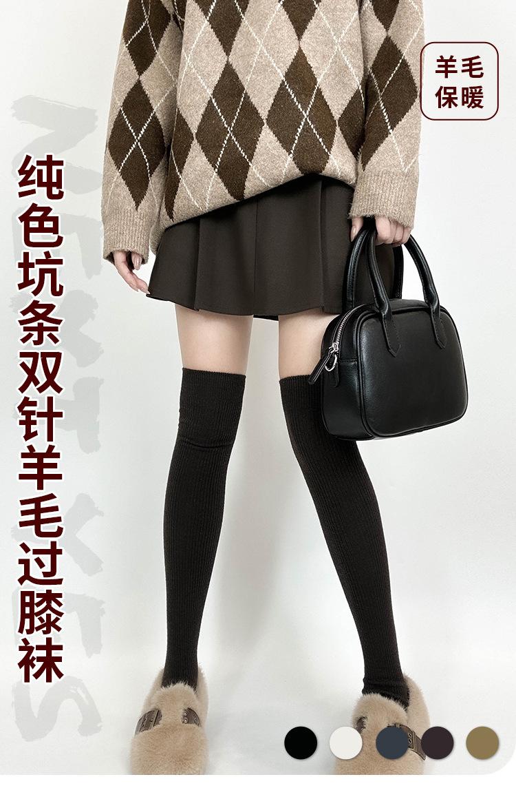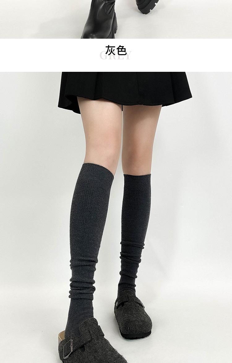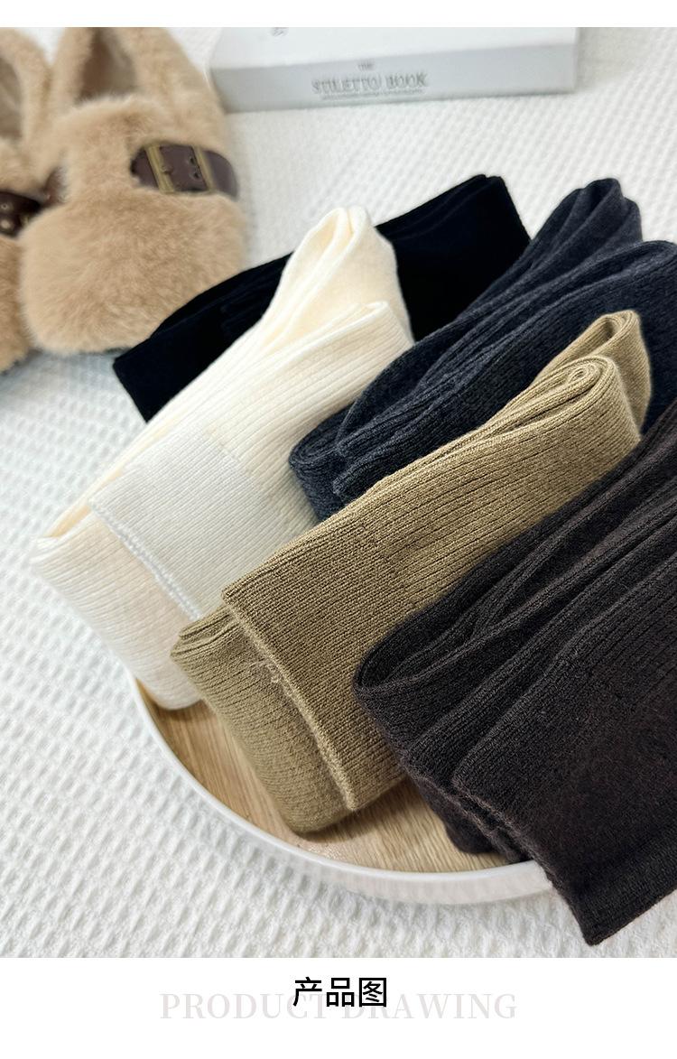 Calcetines Nuevos de Otoño e Invierno para Mujer, Rayas de Canalé de Color Puro, Calcetines de Lana de Doble Aguja por Encima de la Rodilla, Rodilleras, Look Adelgazante y Medias Cálidas
