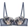 Conjunto de sujetador de encaje sexy para mujer, ropa interior con push-up, fino, gris, talla grande