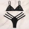 Pijama de dos piezas de encaje cómodo de moda para el hogar, de seda artificial negra, estilo europeo y americano, venta al por mayor