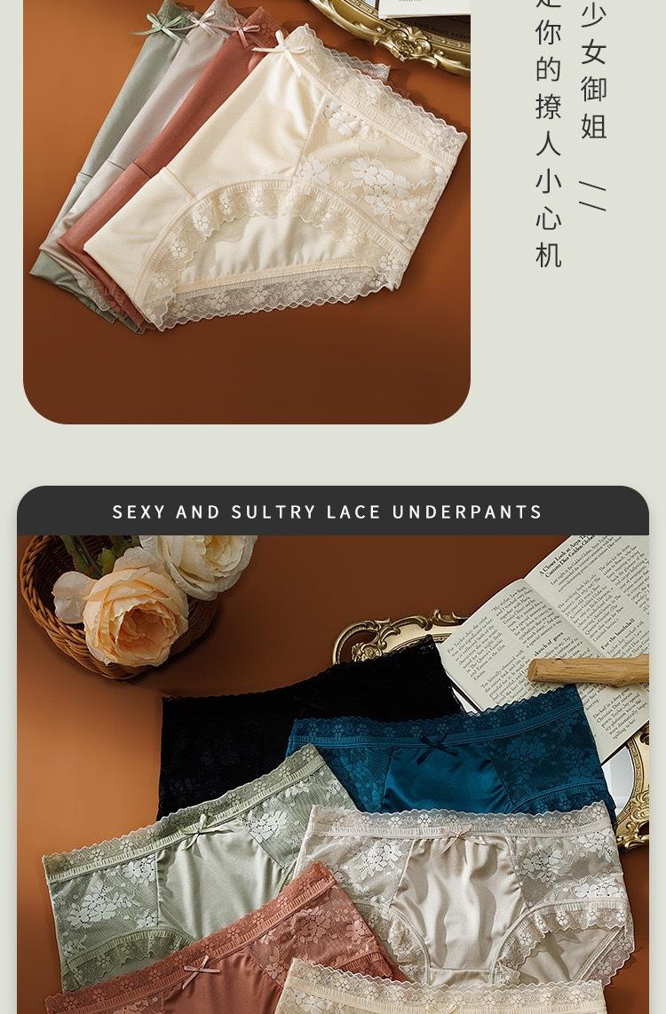 Ropa interior de seda francesa fina de lujo con encaje estilo Pure Desire para mujer, sin dejar rastro, sexy, cómoda y transpirable.
