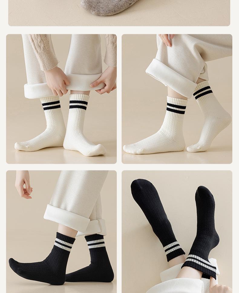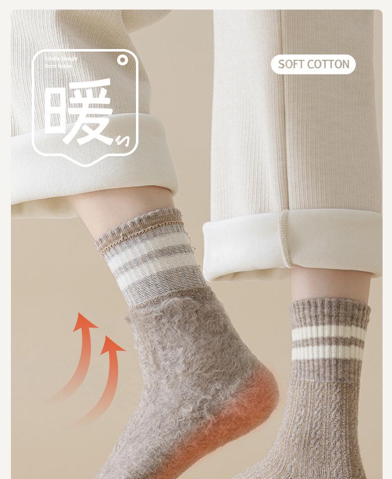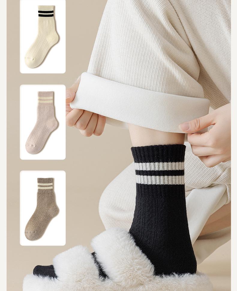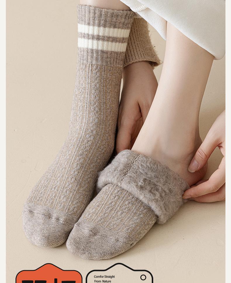 Calcetines de mujer de otoño e invierno con forro polar, cálidos, de longitud media, de lana sintética y cachemira, calcetines gruesos de suelo, calcetines de luna de invierno.