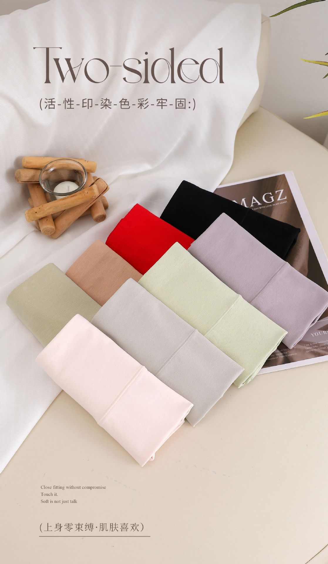 Brown, Bright red, Ivory powder, Fir green, Apricot skin, Smoke purple