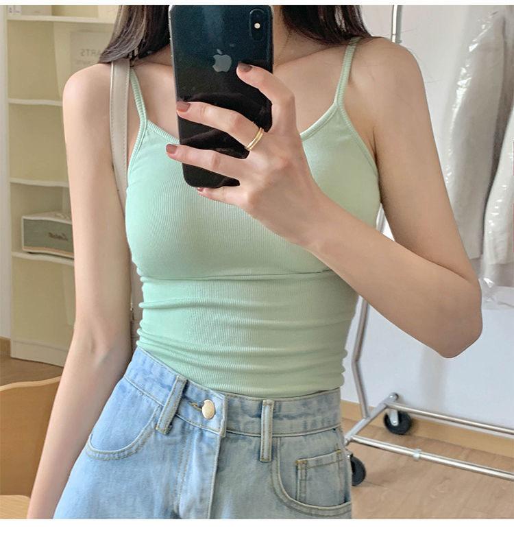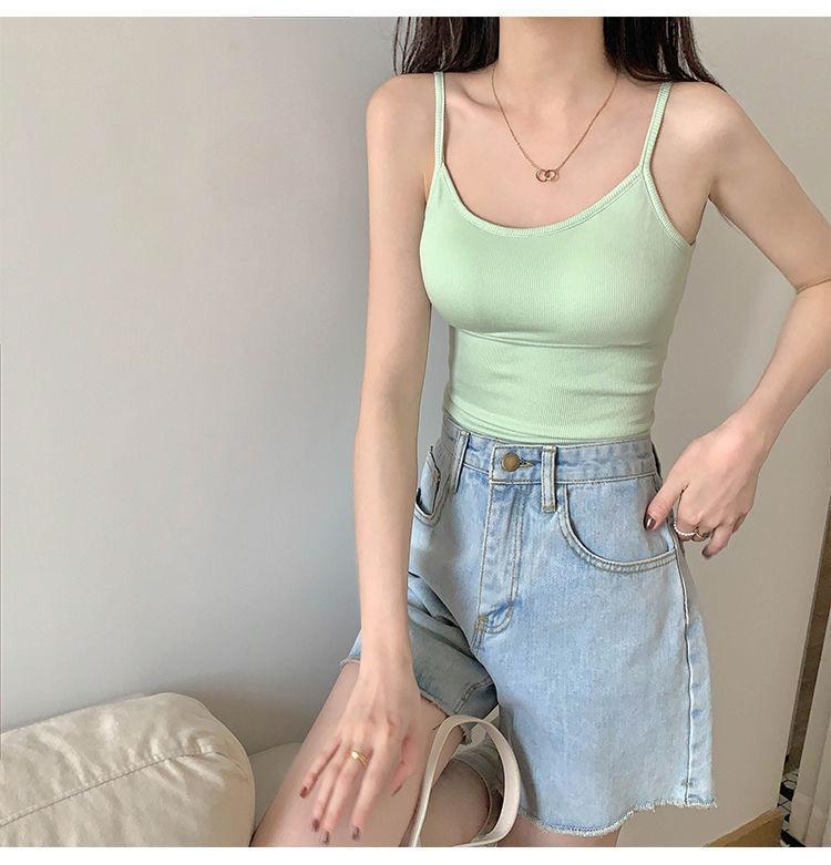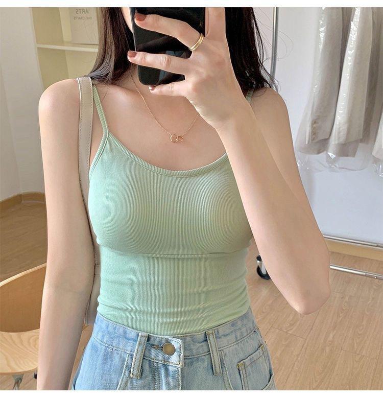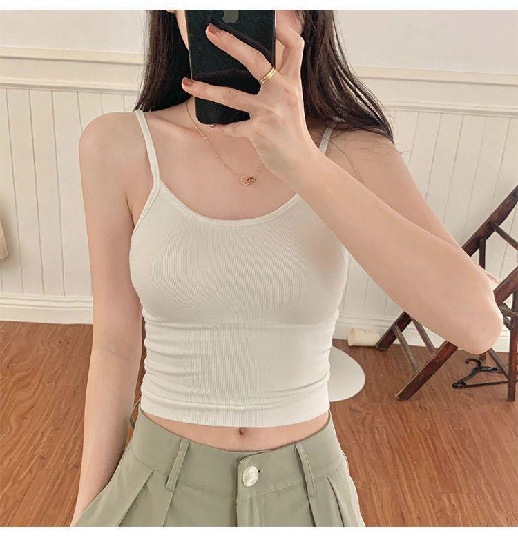 Chaleco de tirantes con almohadilla para el pecho, prenda exterior de una pieza, prenda interior, camiseta ajustada de alta elasticidad, top corto informal, espalda hermosa para mujer