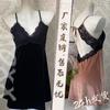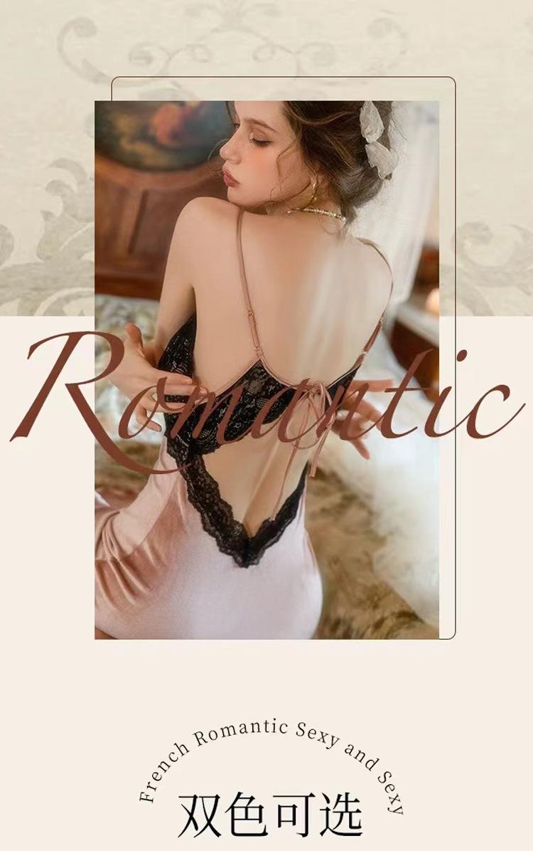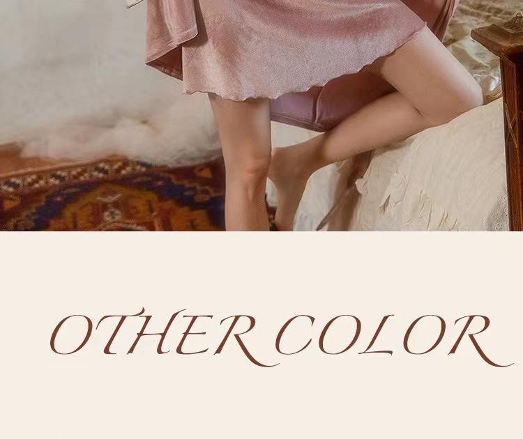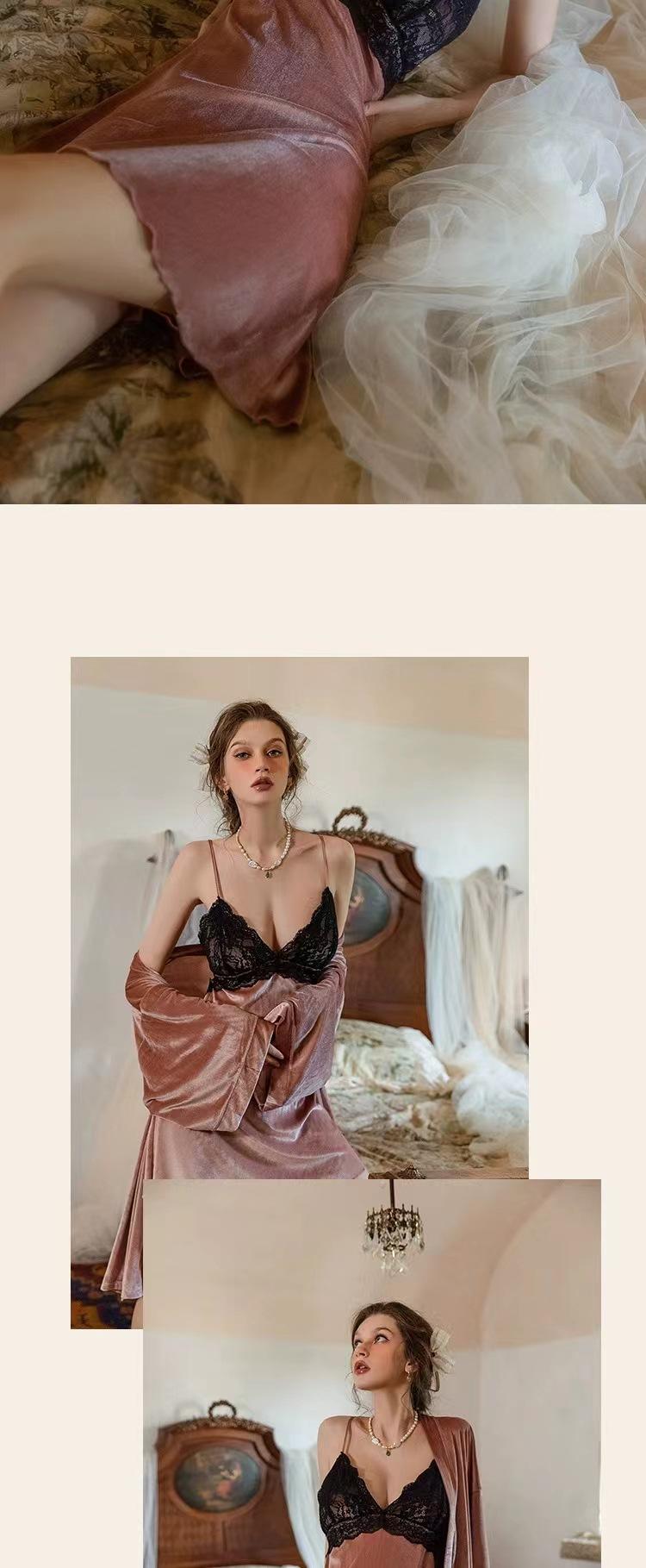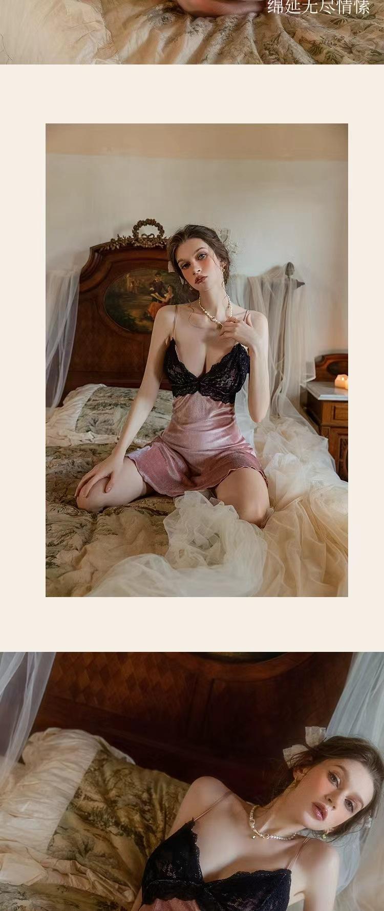 Pijama Sexy de Terciopelo Escote en V Profundo Terciopelo Camisón de Mujer Costuras de Encaje Tirantes Almohadilla en el Pecho Deseo Puro de Niñas Ropa para el Hogar 3037