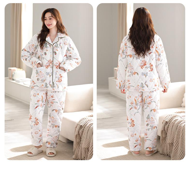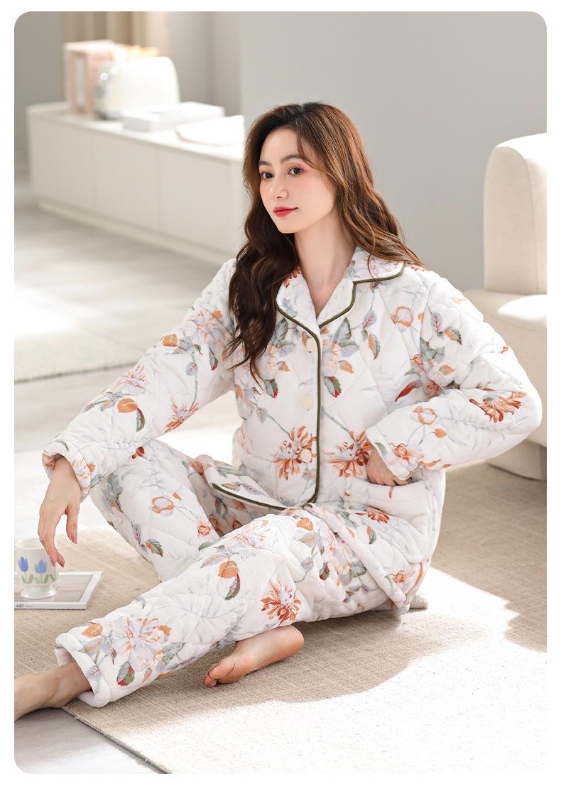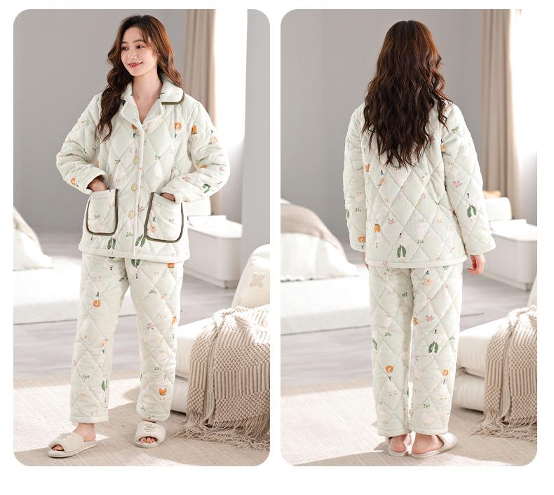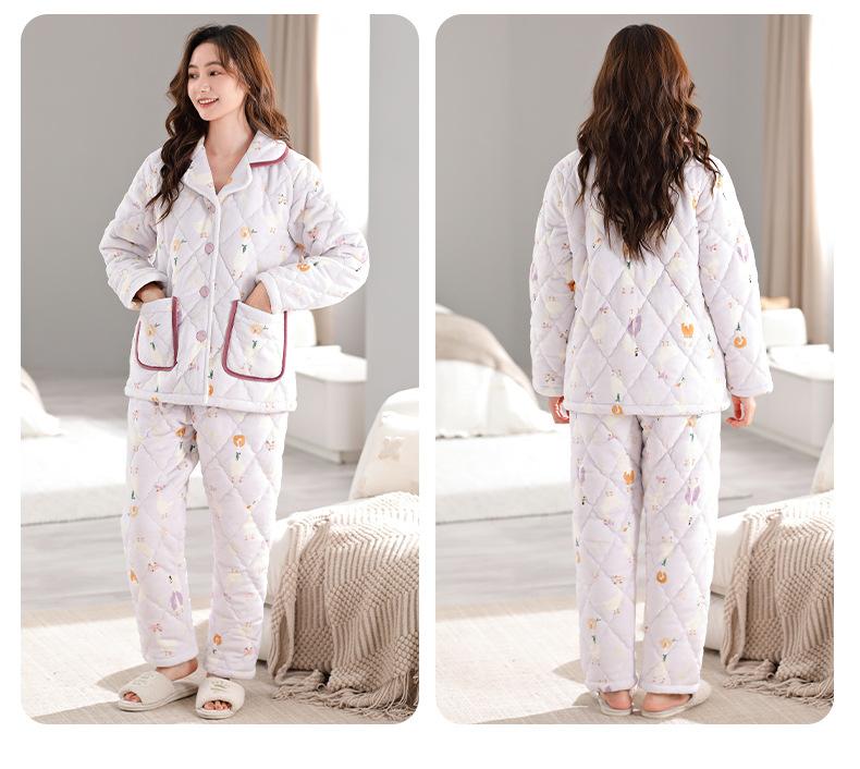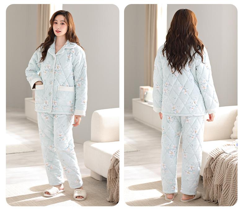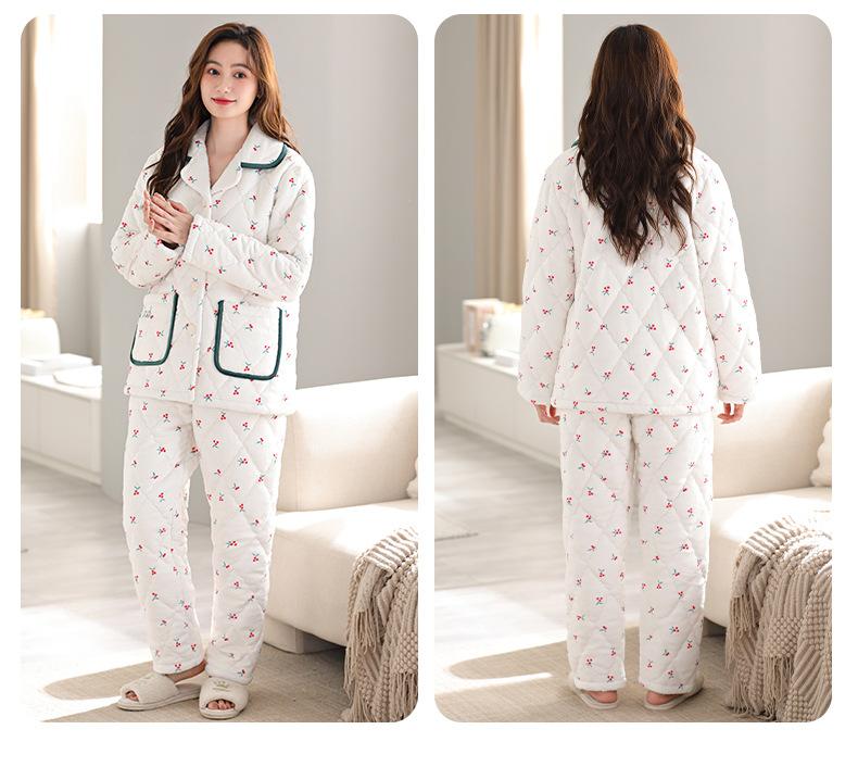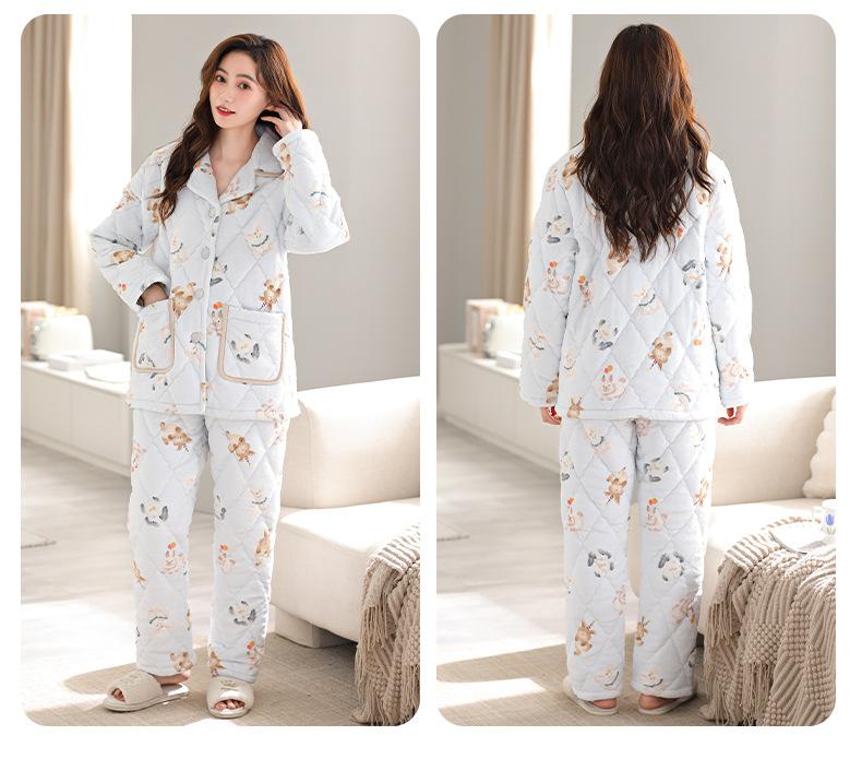 Pijama nuevo de forro polar de coral para mujer, acolchado de tres capas, invierno para mujer, grueso con forro polar, traje de ropa de casa de moda para mujer