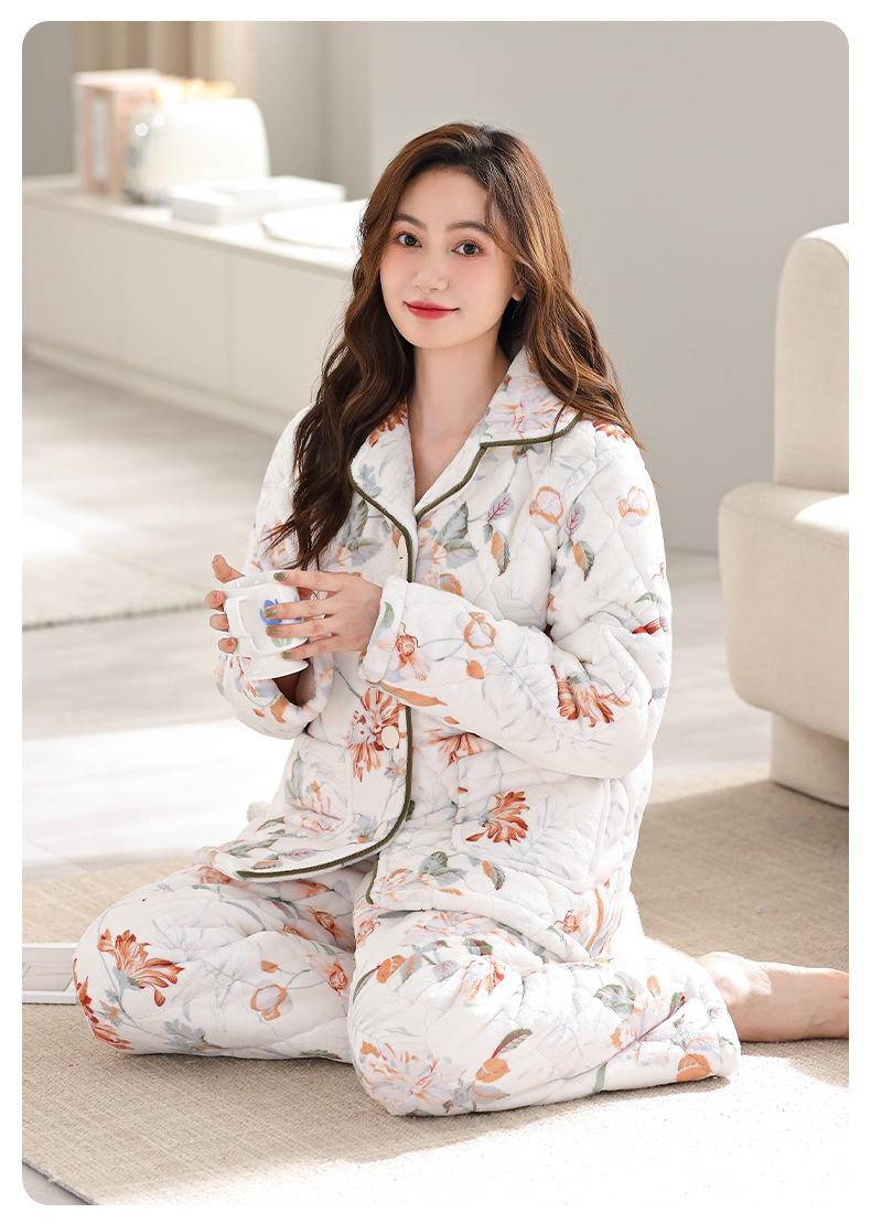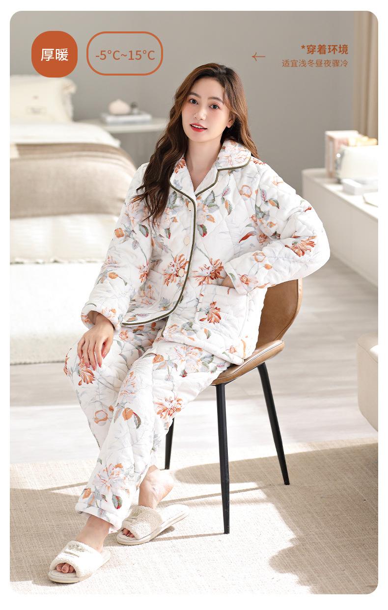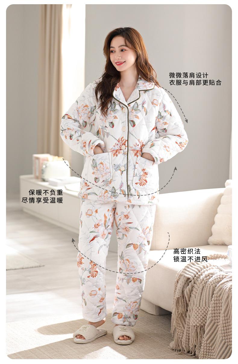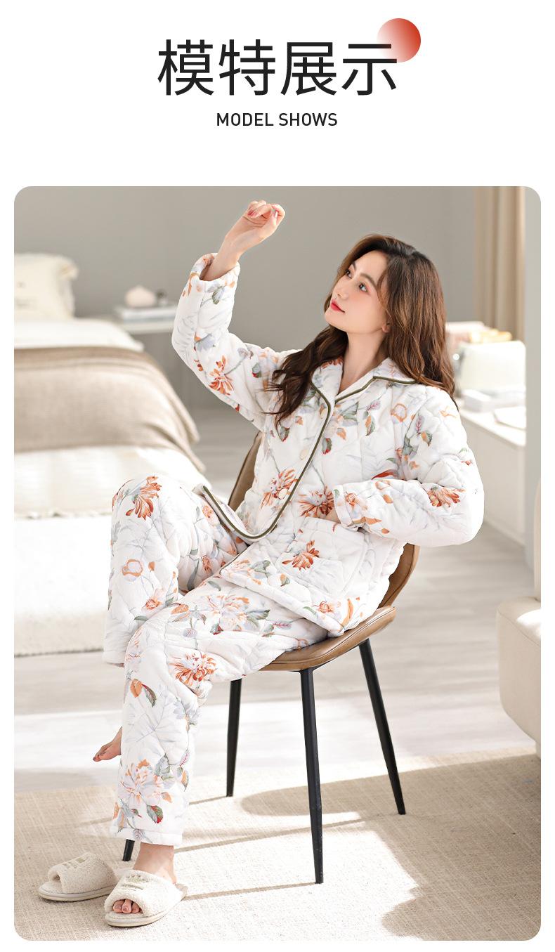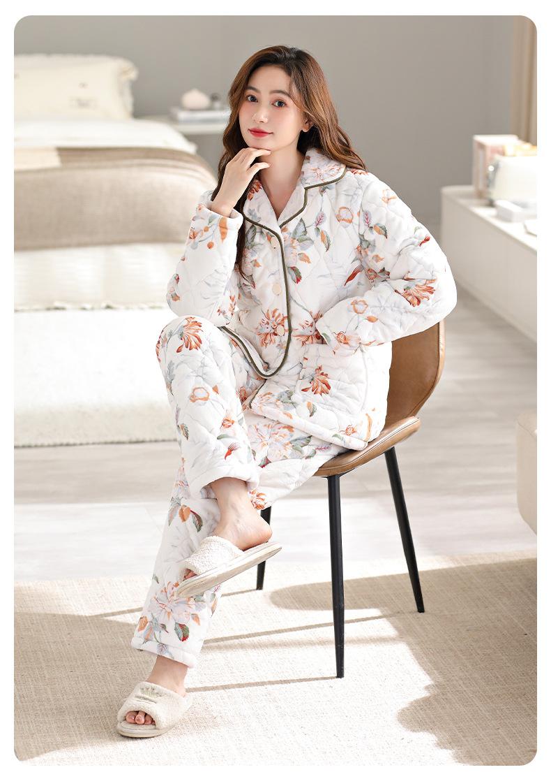 Pijama nuevo de forro polar de coral para mujer, acolchado de tres capas, invierno para mujer, grueso con forro polar, traje de ropa de casa de moda para mujer