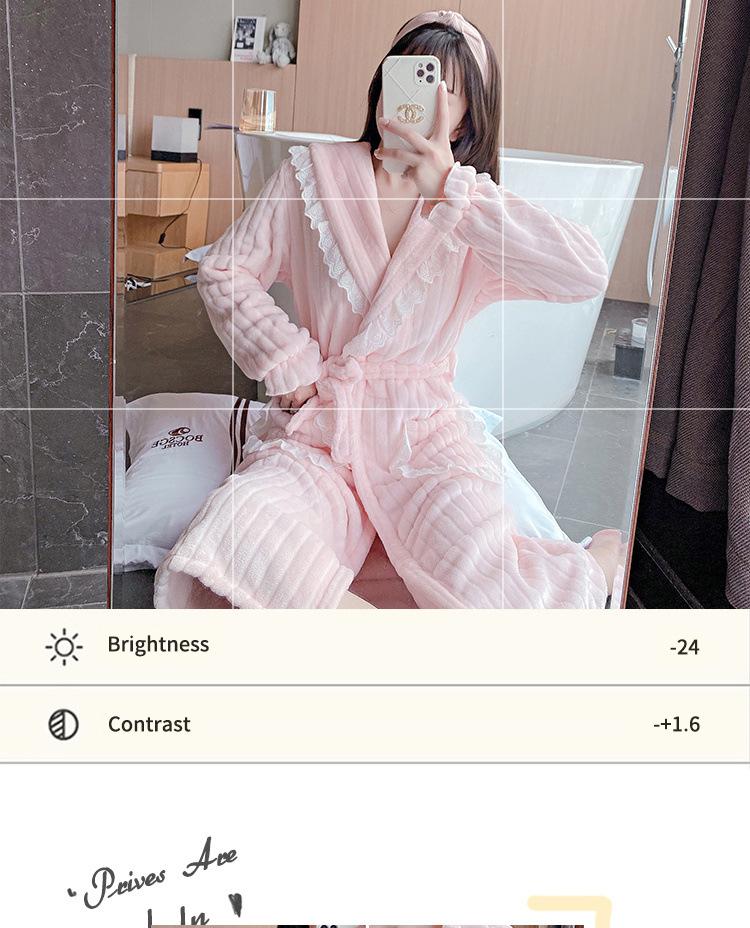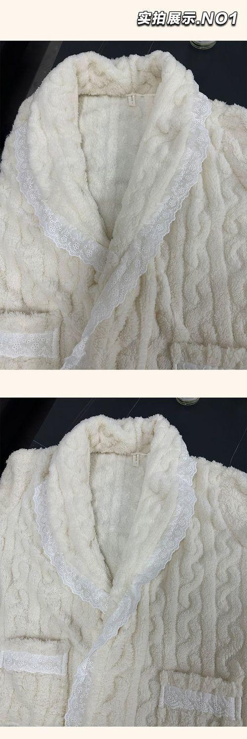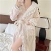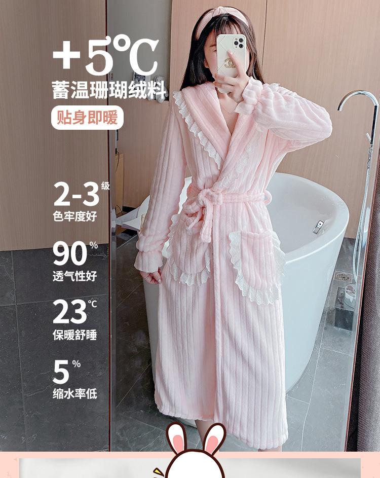 Camisón de lana coral para mujer, otoño e invierno, largo, grueso, con forro polar, bonito y dulce albornoz de franela, pijama de invierno, ropa para el hogar