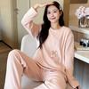 Pijama de Terciopelo Blanco Oscuro Isla para Mujer en Otoño e Invierno, Terciopelo de Doble Cara, Cálido y Lindo, Estilo Coreano, Se Puede Usar Fuera de Casa en Invierno