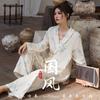 Pijama de Gasa Doble Capa de Algodón Puro con Bambú Chinoiserie para Mujer Primavera, Otoño y Verano Delgado Manga Larga Holgado Conjunto de Ropa para Casa