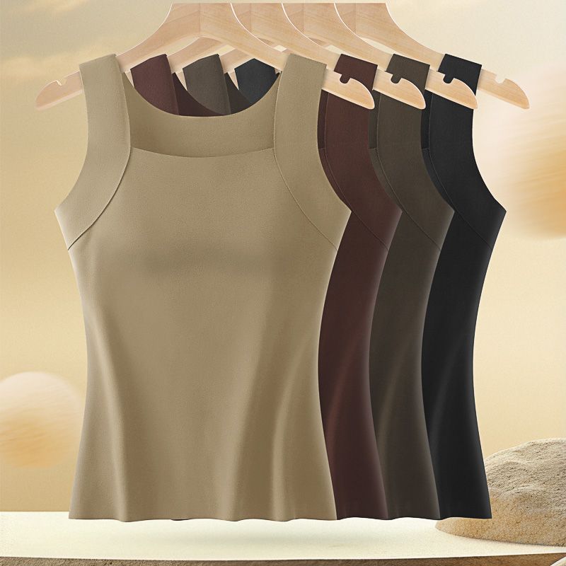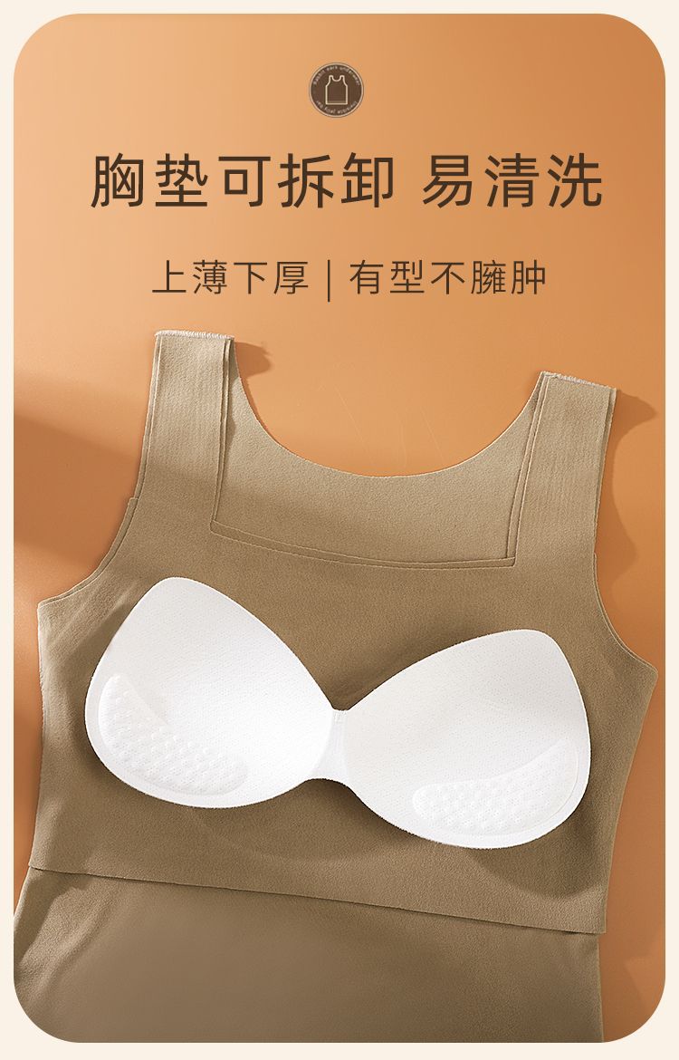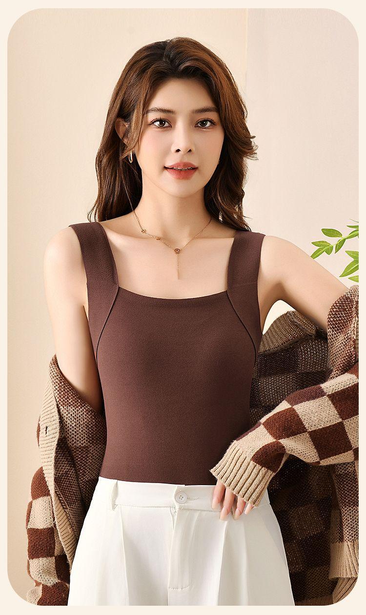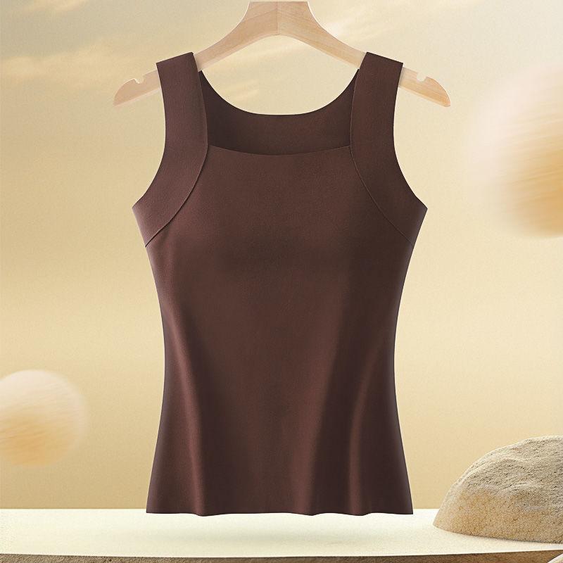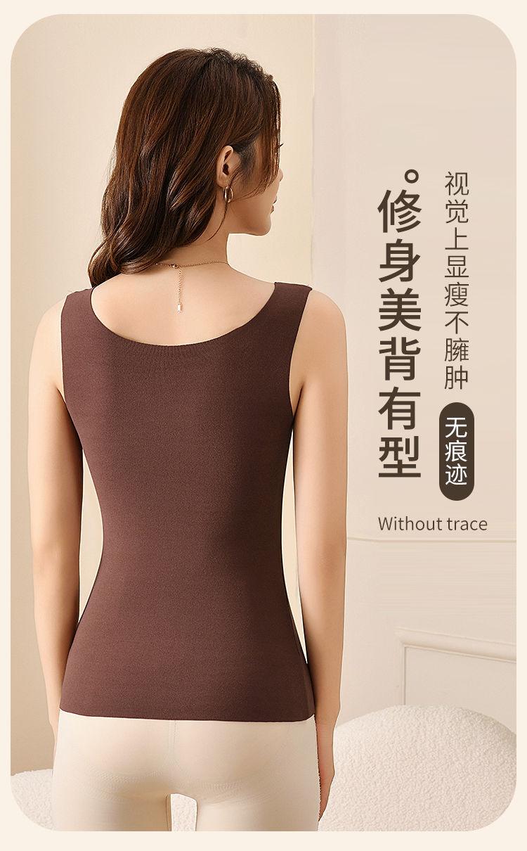 Chaleco Térmico Sin Costuras para Otoño e Invierno para Mujer, Ajustado, de Terciopelo, Ropa Interior Base con Almohadilla en el Pecho, Interior Cepillado, Chaleco Grueso