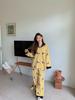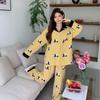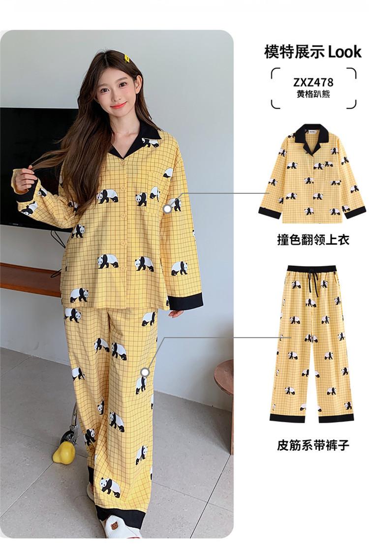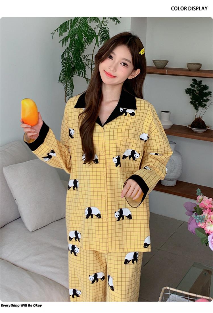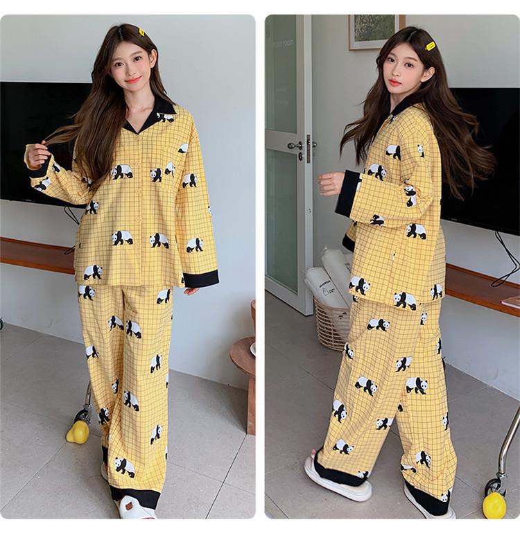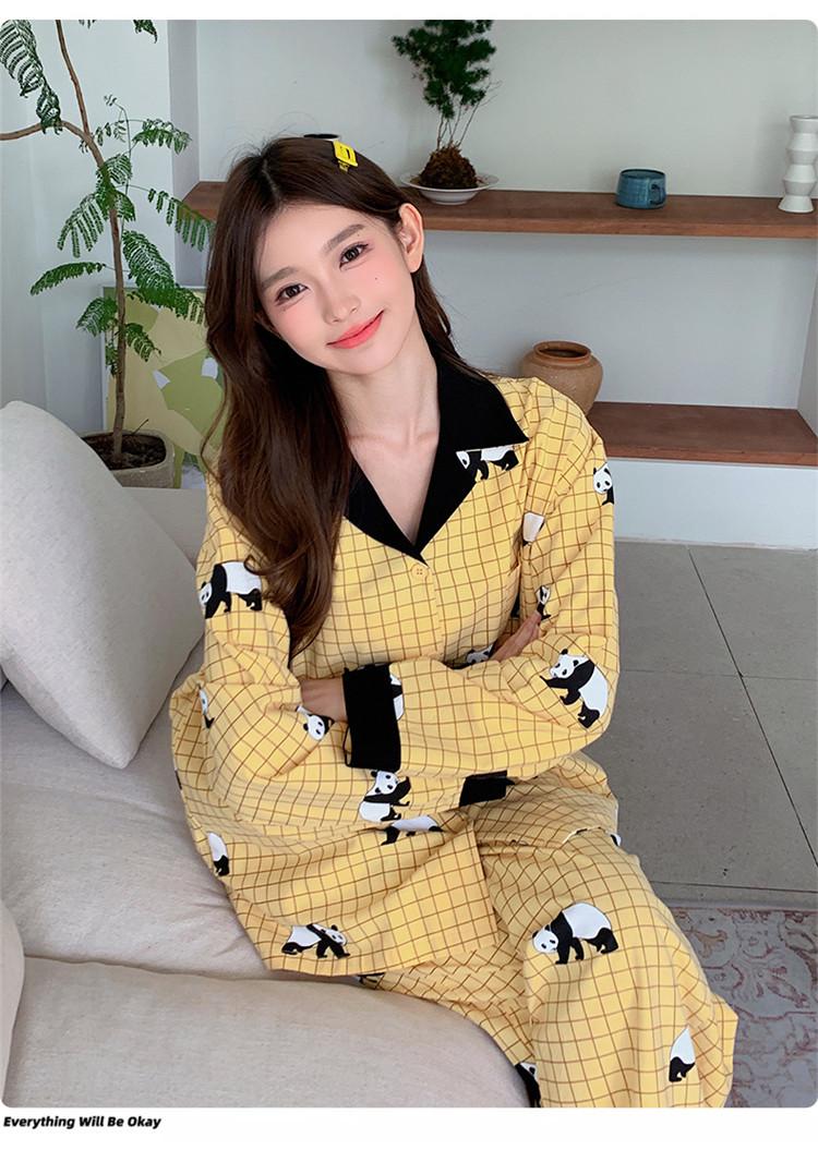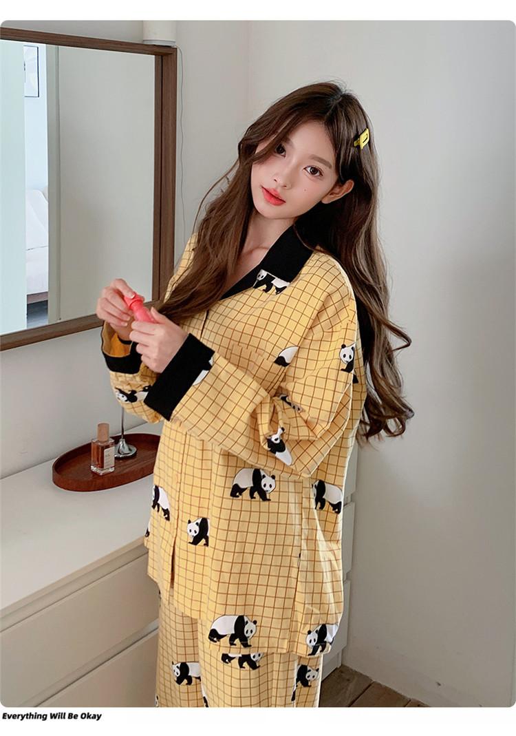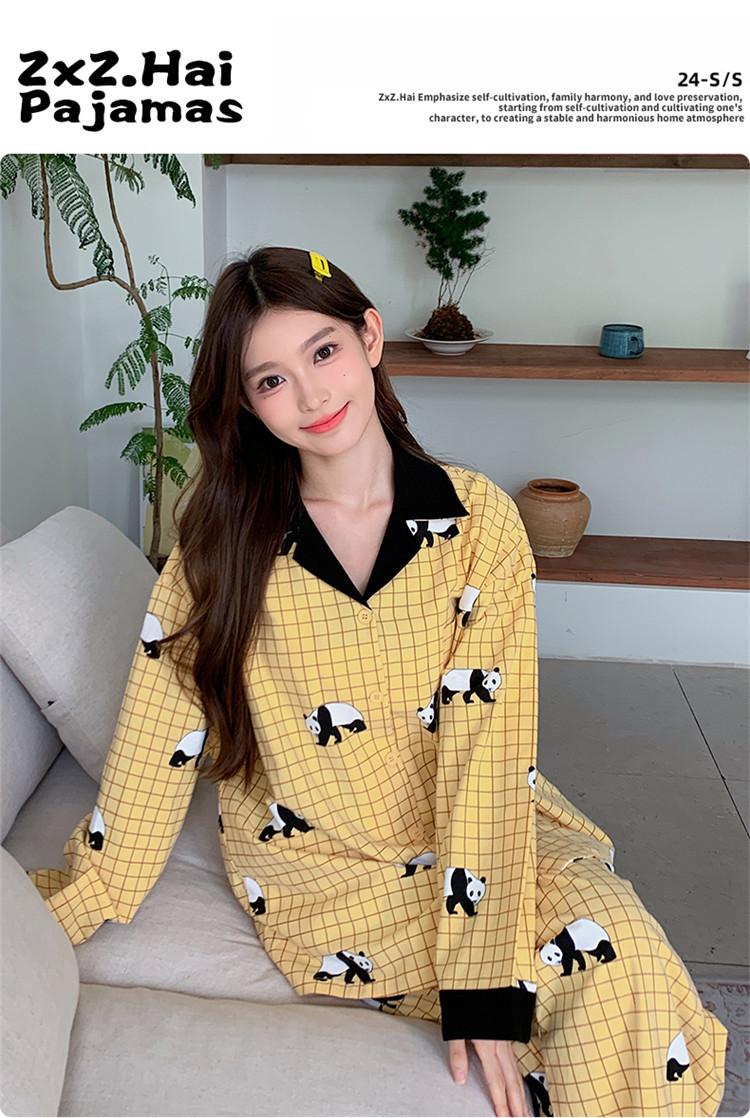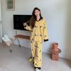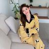 Pijama unisex de algodón puro, fino, de manga larga, con diseño de oso Pagoda amarillo, ideal para el hogar y la vida al aire libre, para primavera y otoño.