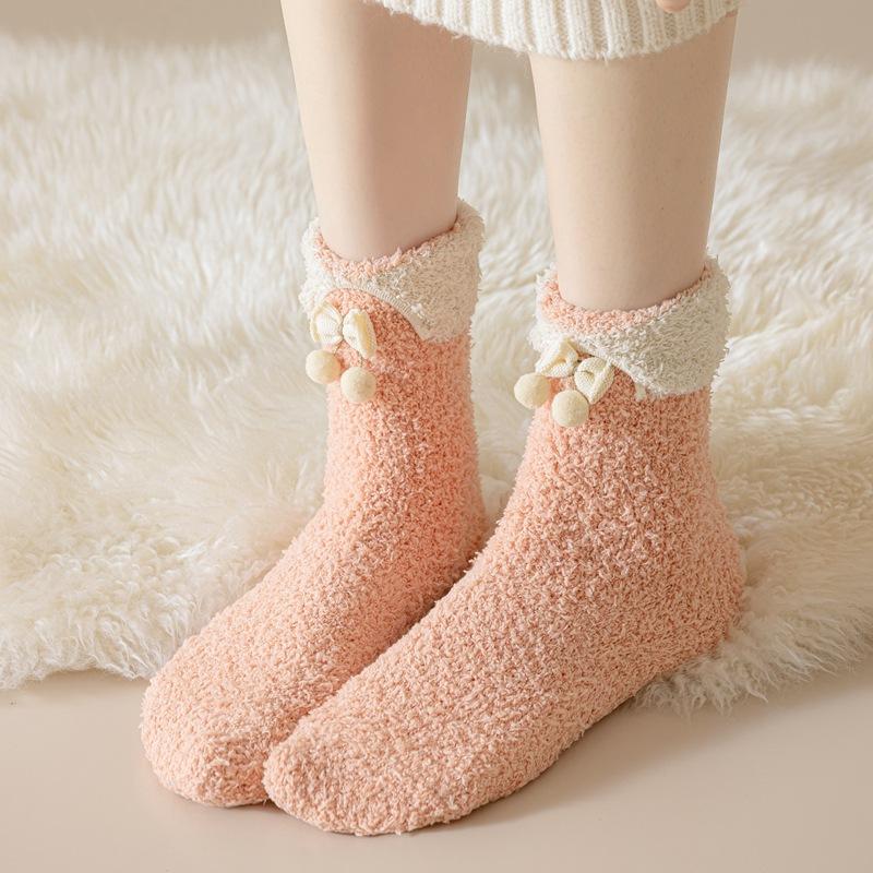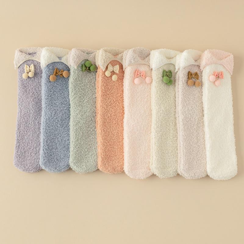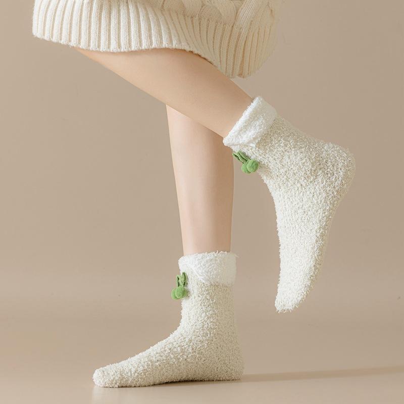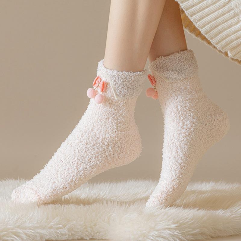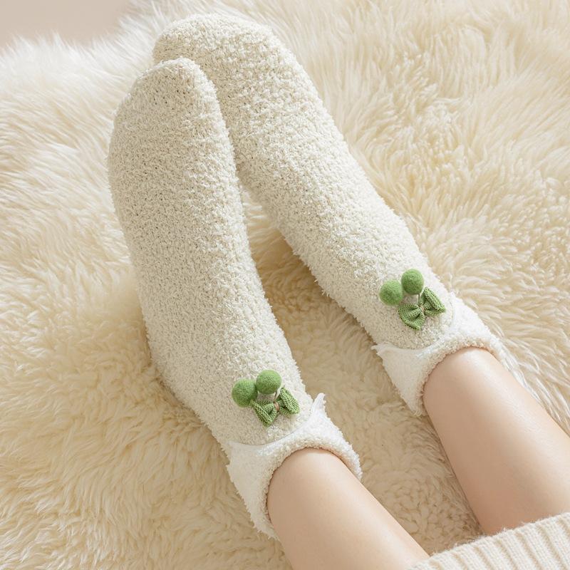 Calcetines de Terciopelo Coral para Mujer Otoño e Invierno Forrados de Felpa Gruesos Cálidos para Casa Lindos Estilo Japonés Rosas para Dormir Postparto Luna