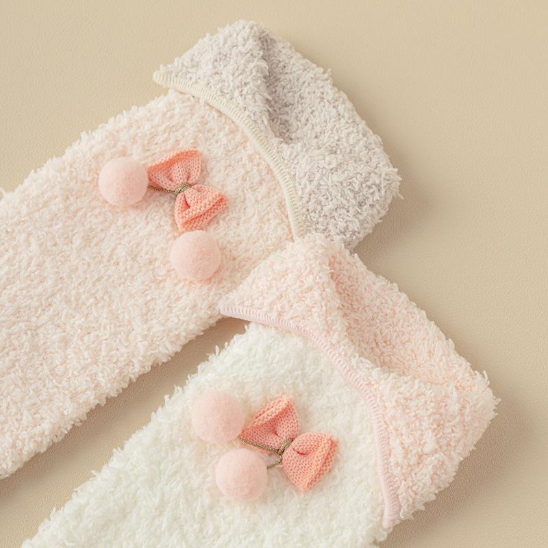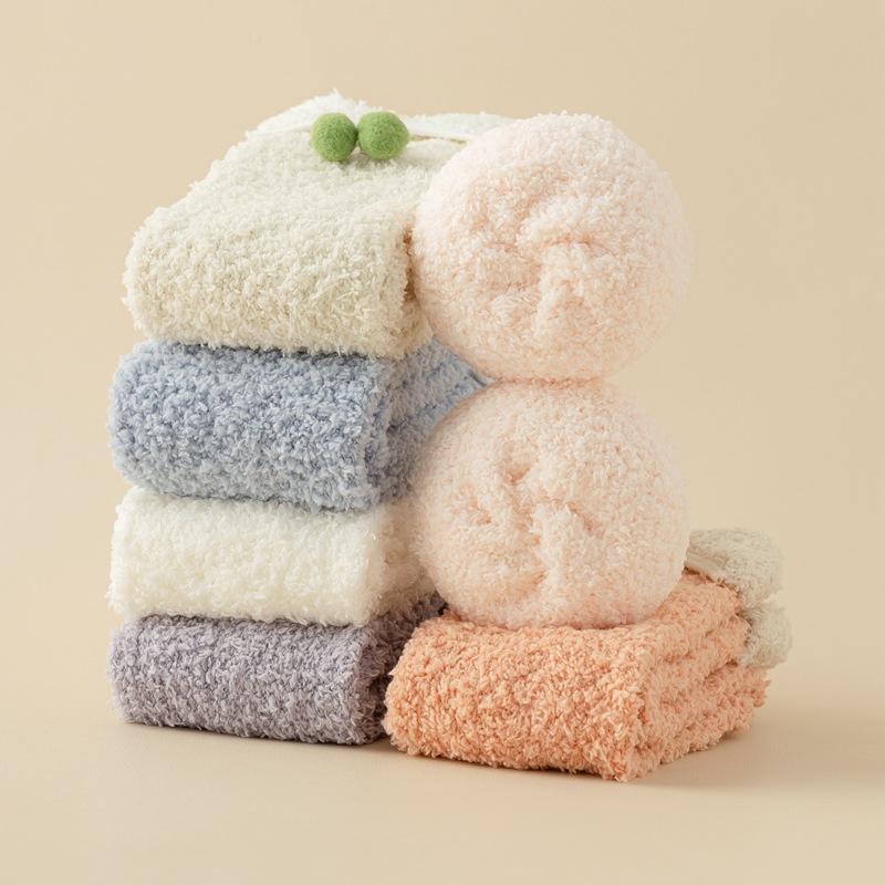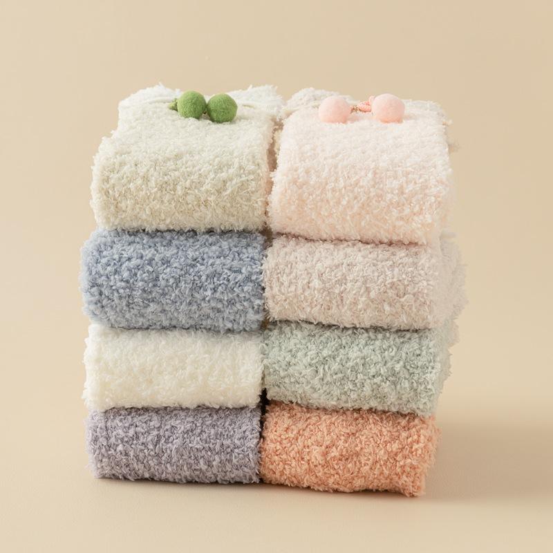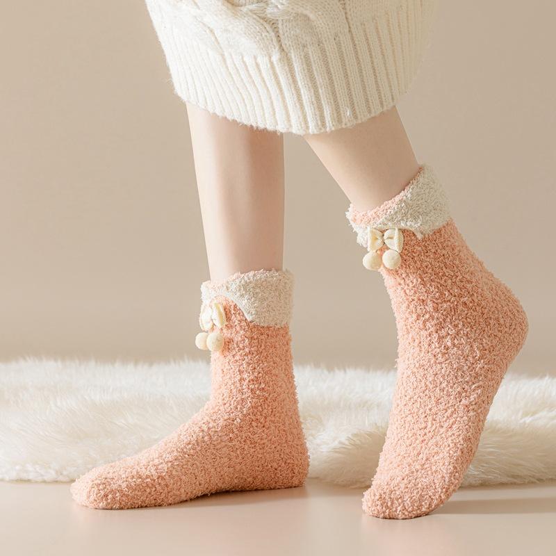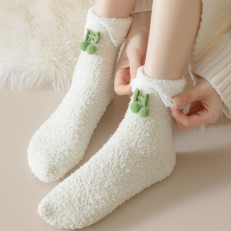 Calcetines de Terciopelo Coral para Mujer Otoño e Invierno Forrados de Felpa Gruesos Cálidos para Casa Lindos Estilo Japonés Rosas para Dormir Postparto Luna
