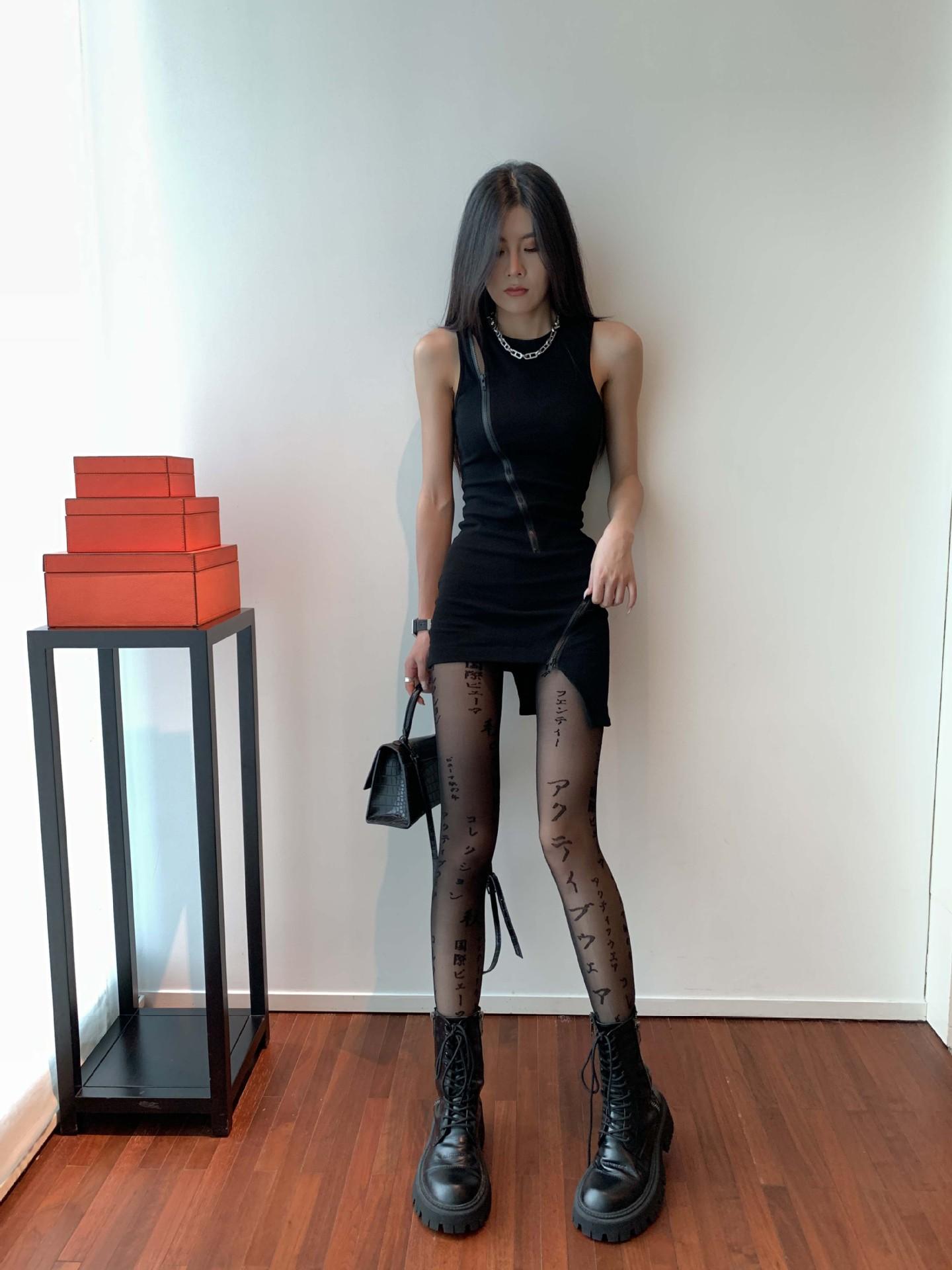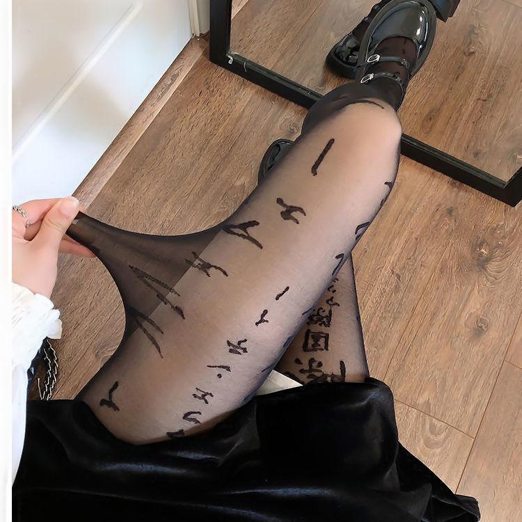 Otoño Corte Libre Medias de Seda Japonesas Letra Oscuro Sexy Slim Negro Seda Tendencia Letra Medias Finas Mujer