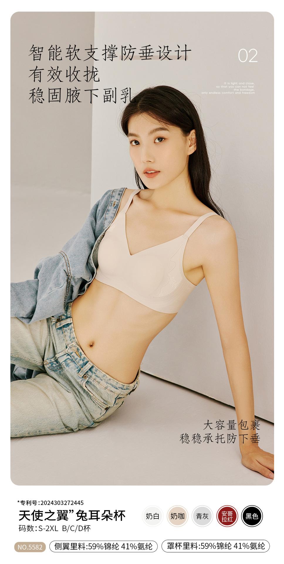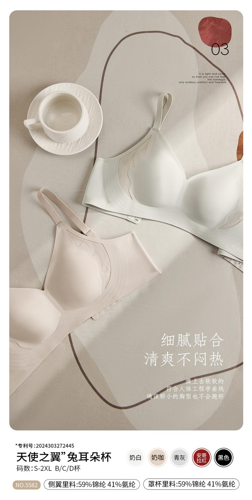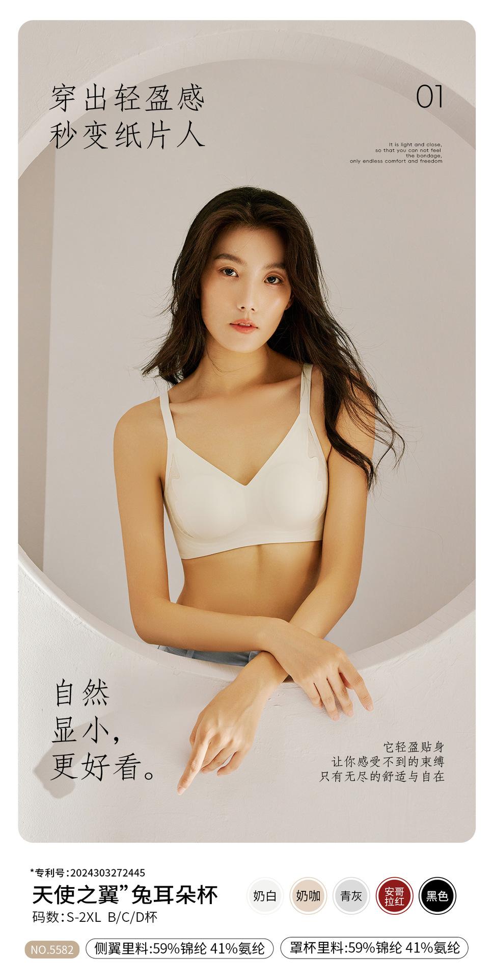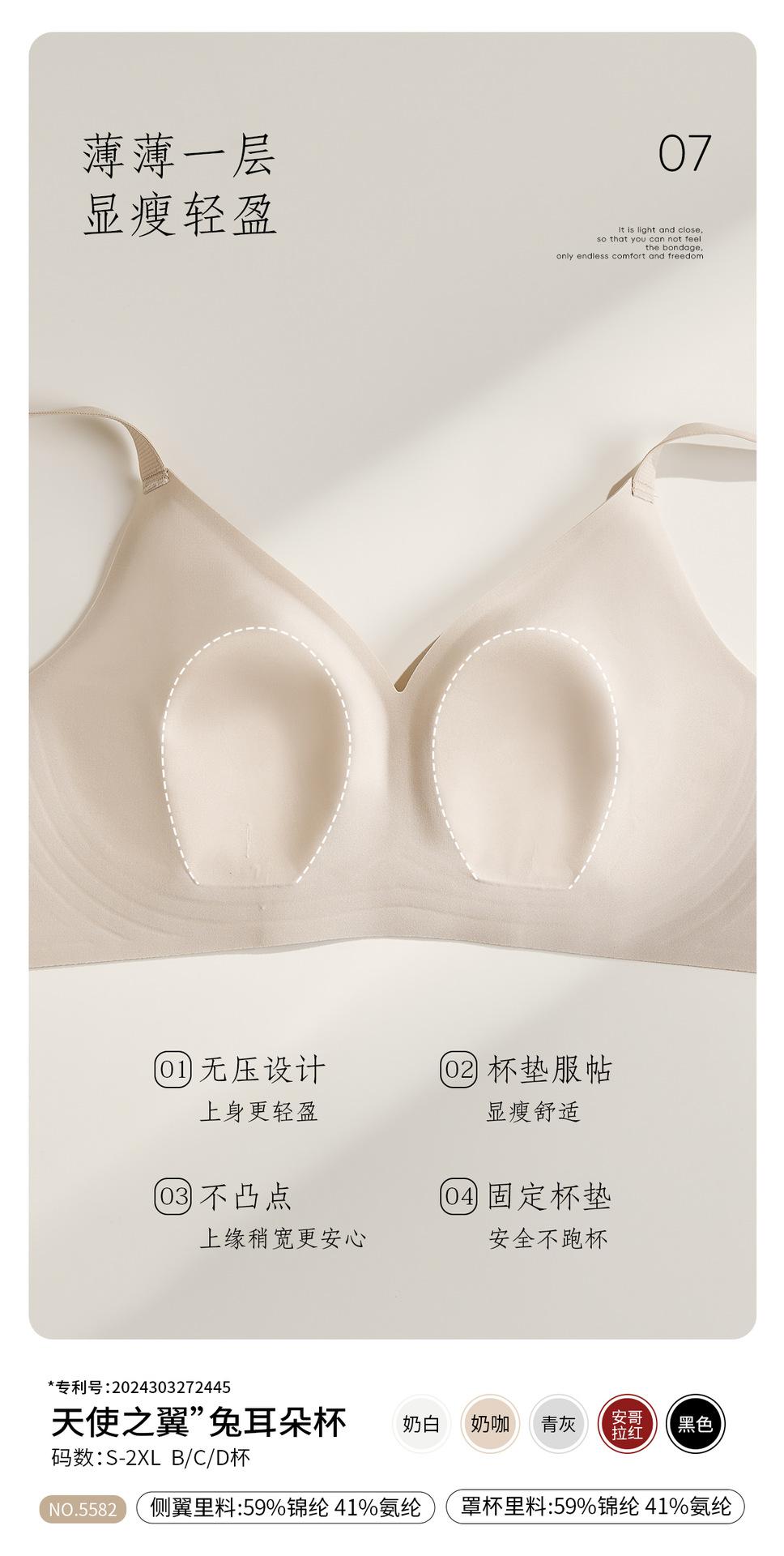 5582 Copa Talla Grande Oreja de Conejo Íntimos Ultrafinos para Verano Mujeres con Busto Grande, Sujetador de Aspecto Adelgazante, Push-Up Sensación Desnuda, Cómodo y Sin Marcas D