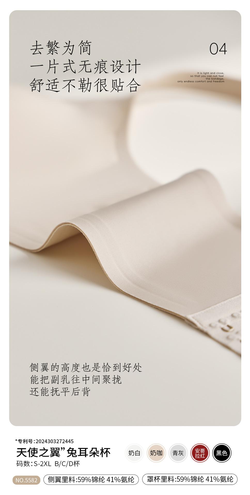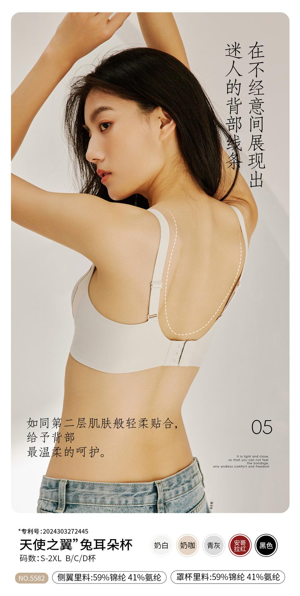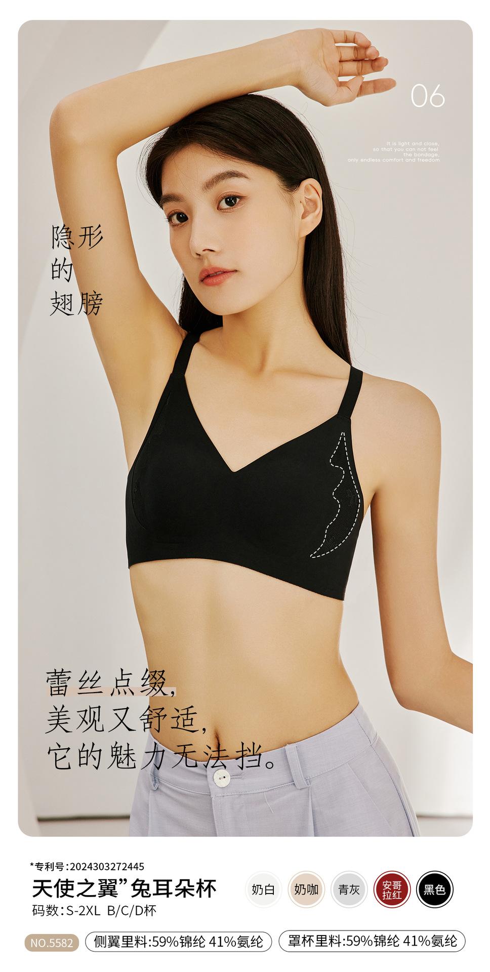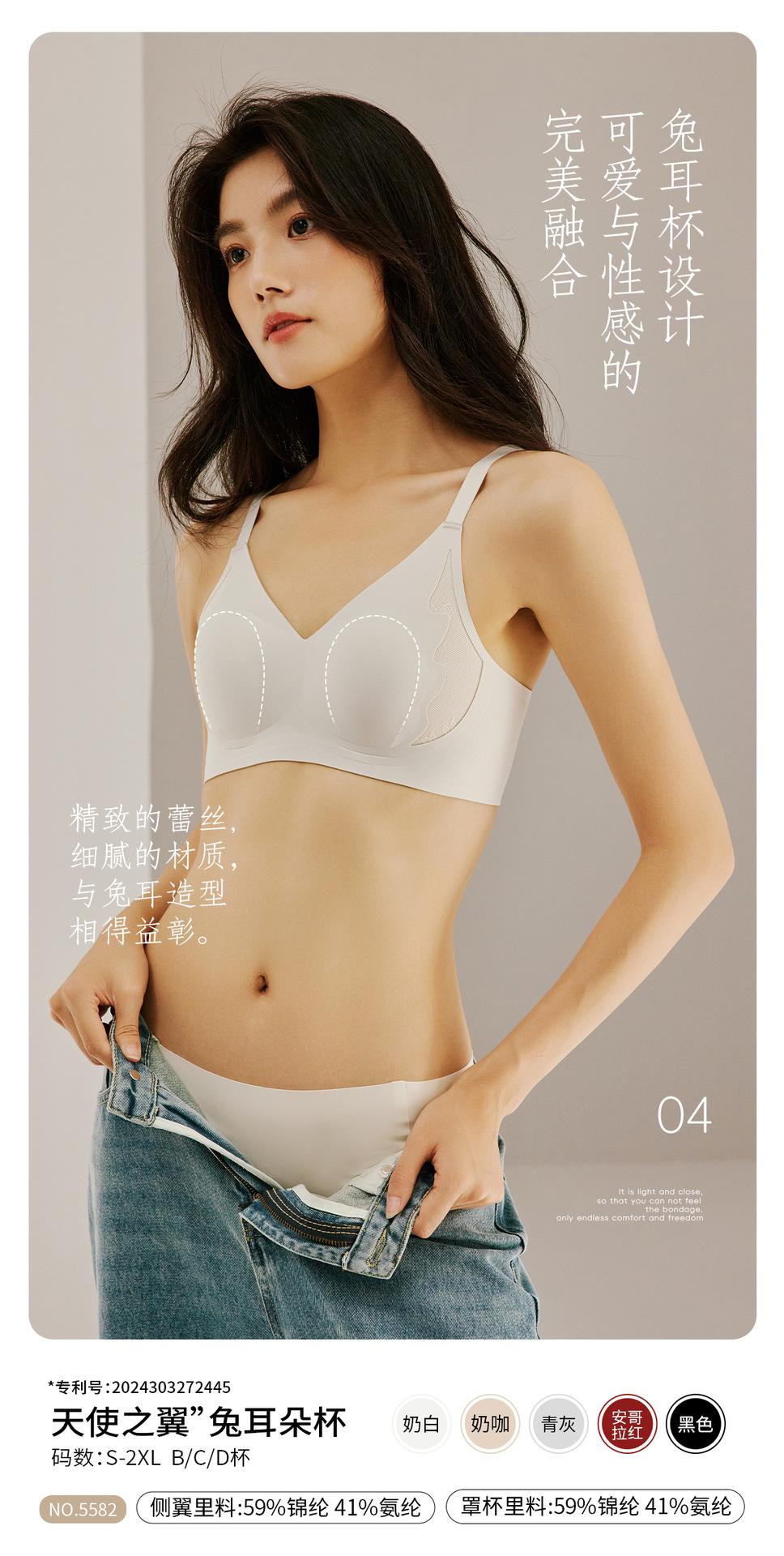 5582 Copa Talla Grande Oreja de Conejo Íntimos Ultrafinos para Verano Mujeres con Busto Grande, Sujetador de Aspecto Adelgazante, Push-Up Sensación Desnuda, Cómodo y Sin Marcas D