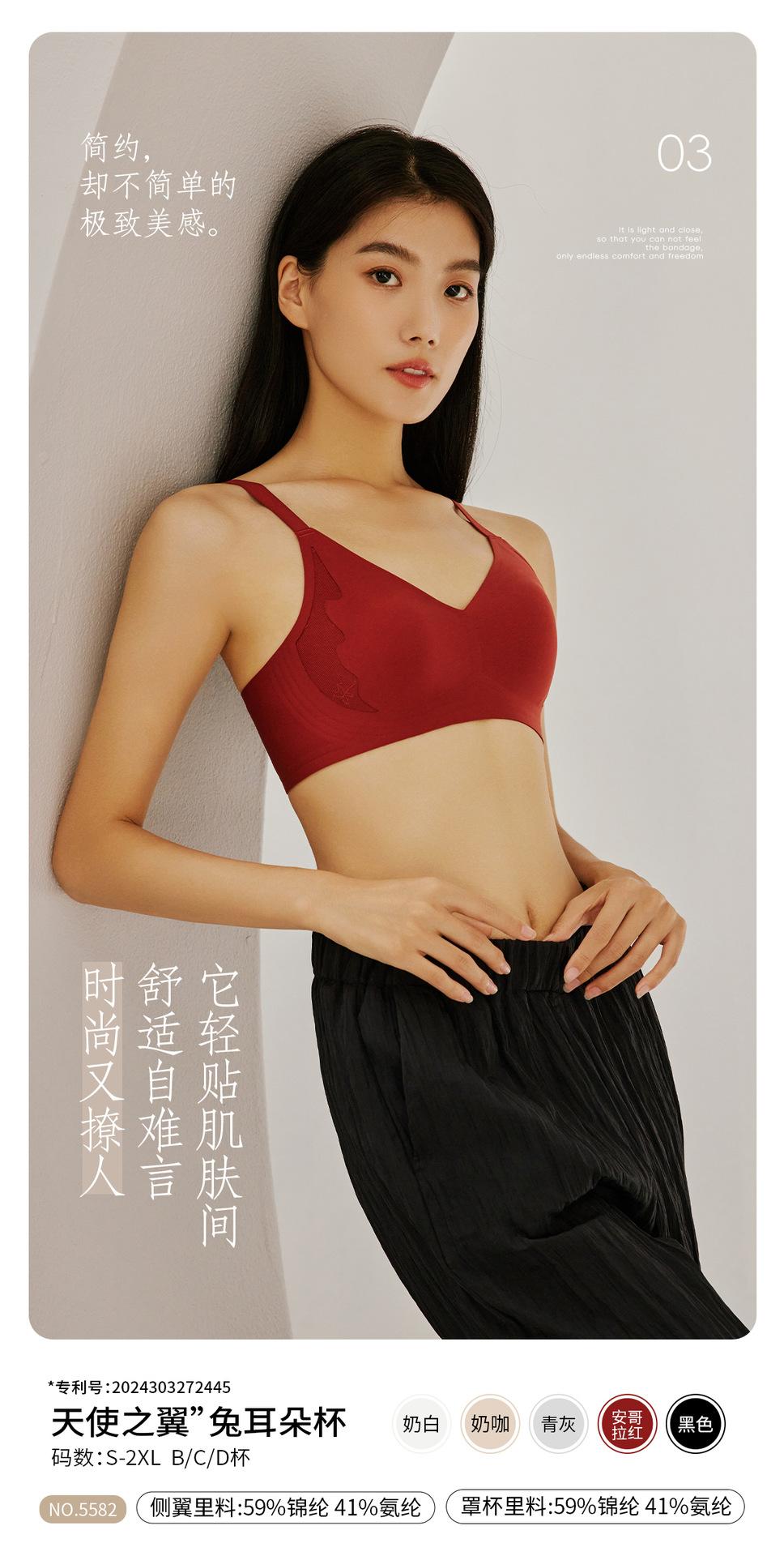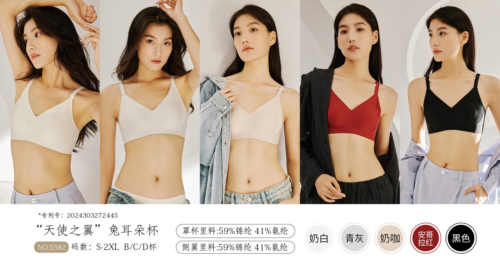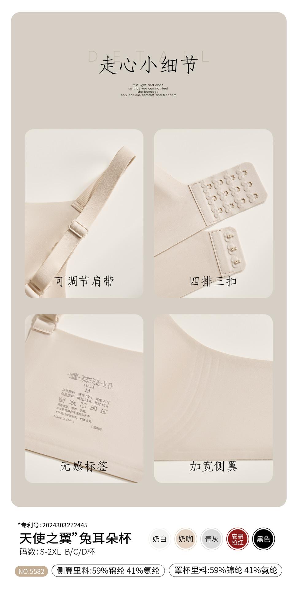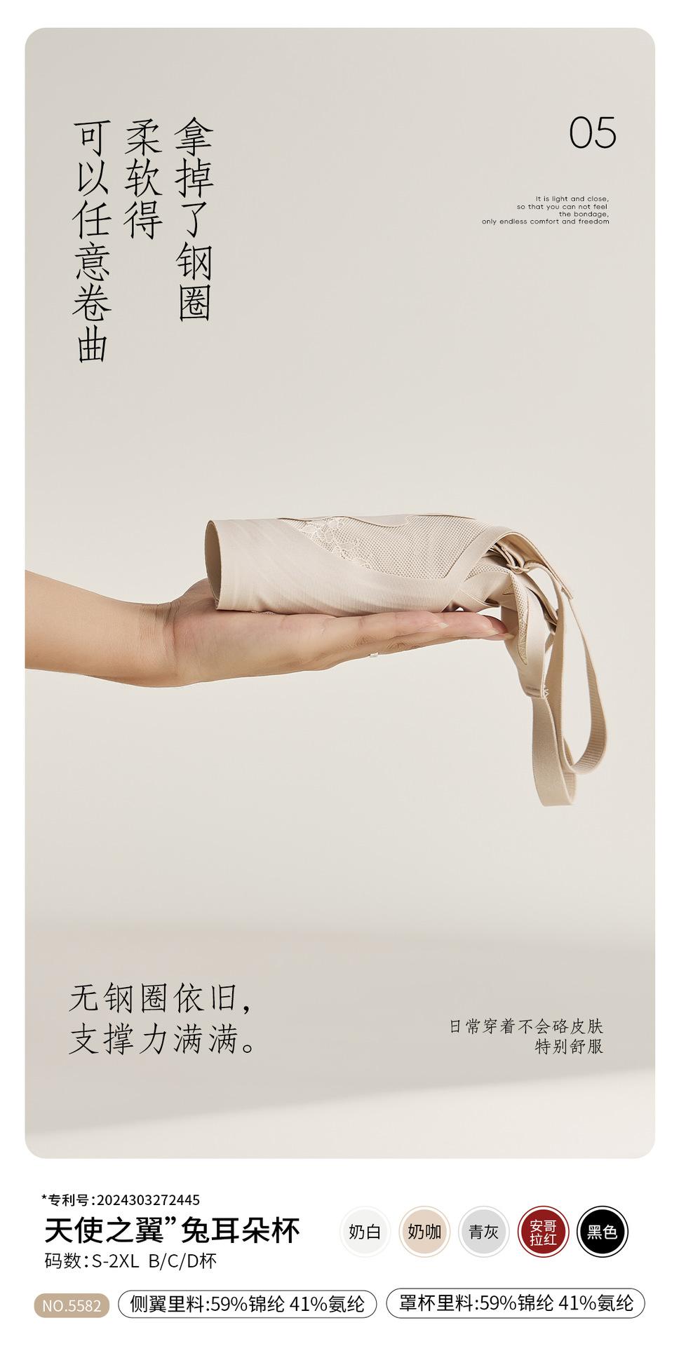 5582 Copa Talla Grande Oreja de Conejo Íntimos Ultrafinos para Verano Mujeres con Busto Grande, Sujetador de Aspecto Adelgazante, Push-Up Sensación Desnuda, Cómodo y Sin Marcas D
