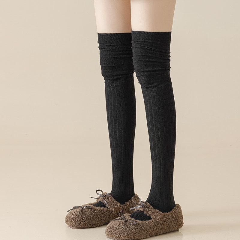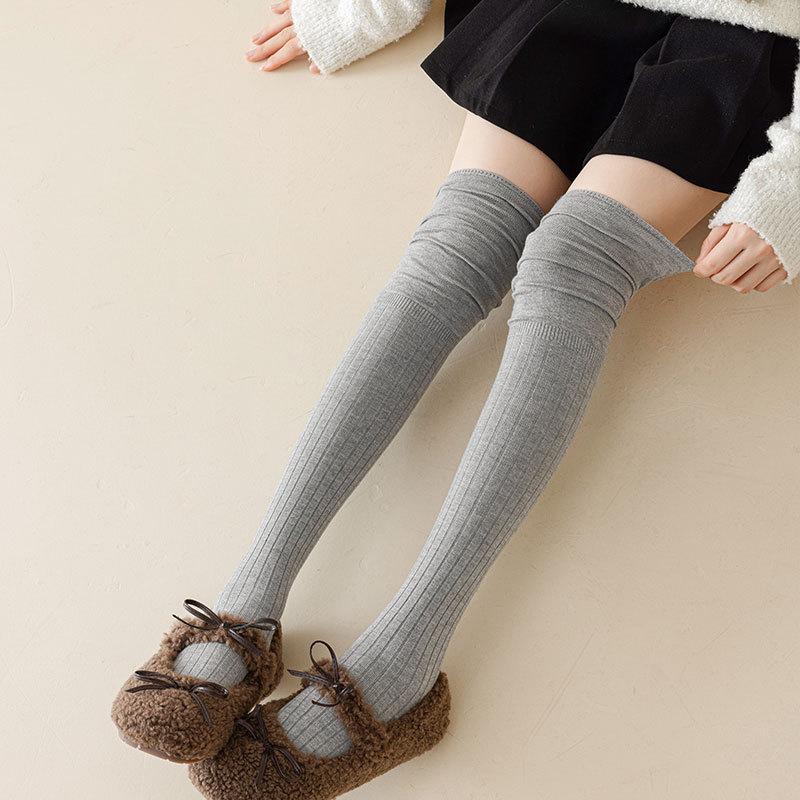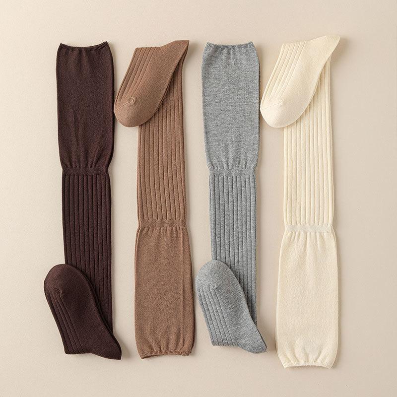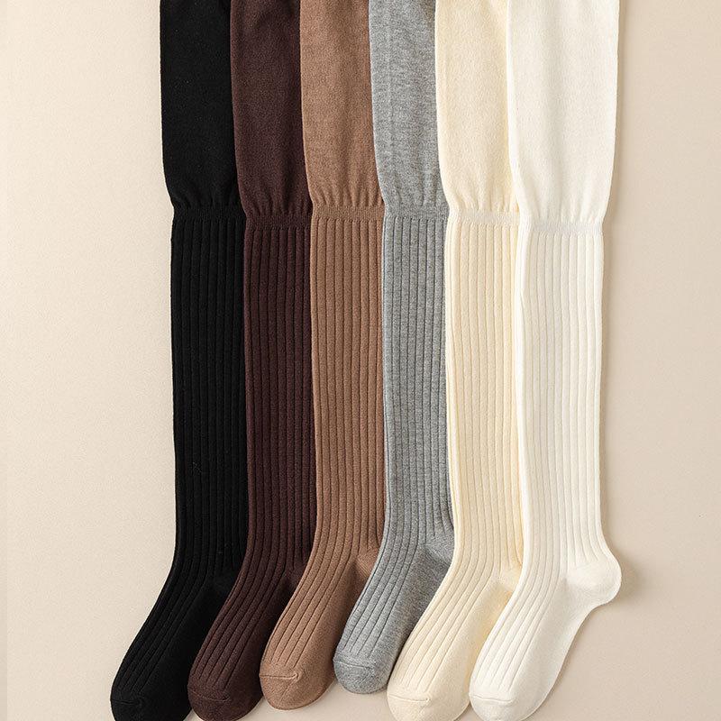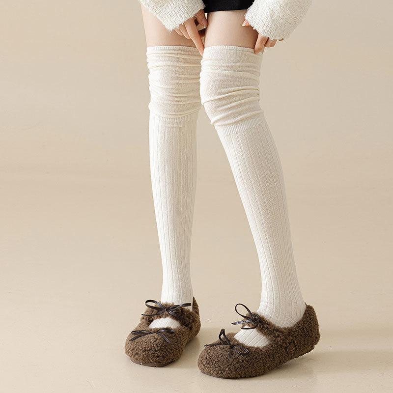 Calcetines hasta la rodilla para mujer de caña alta larga para primavera y otoño estilo japonés blanco cremoso con botas calcetines largos para la pierna otoño e invierno antideslizantes de punto