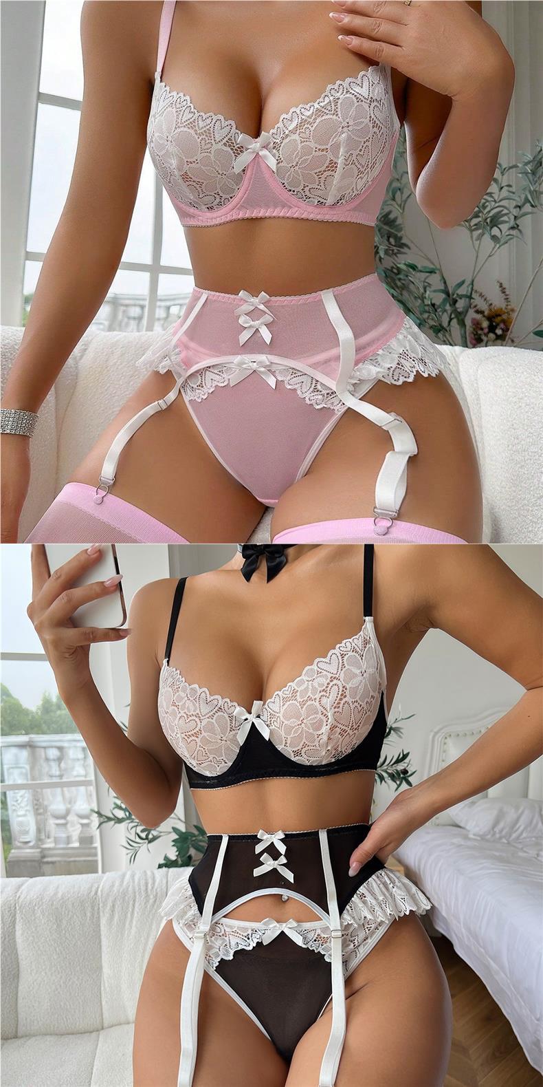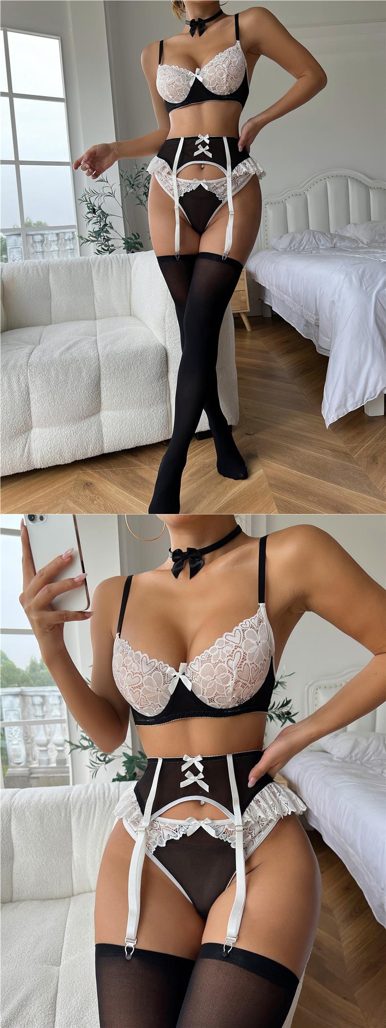 Lencería Sexy Europea y Americana, Sujetador Push-Up Sexy para Mujer, Conjunto de Sujetador de Encaje, Lencería, Disfraz de Mucama con Aro de Acero, Dropshipping