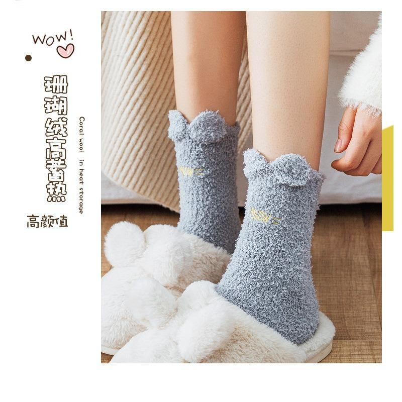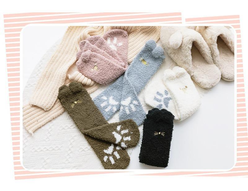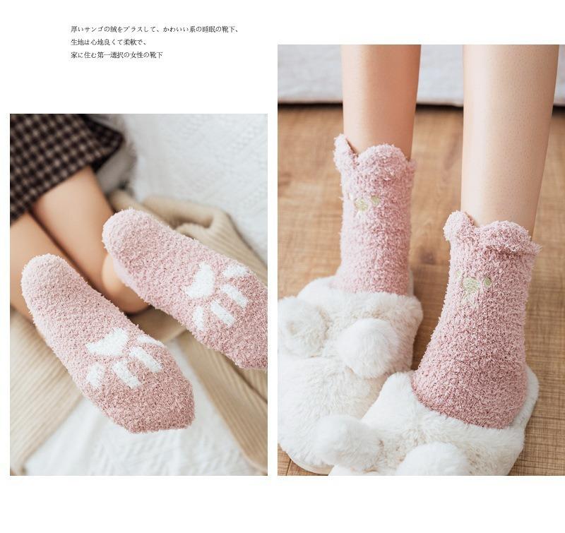 Calcetines de Otoño e Invierno con Orejas de Gato para Mujer, para Casa, Piso Cálido, Calcetines de Luna, Forrados de Felpa, Gruesos, Medios, Calcetines de Felpa Coral