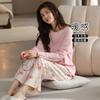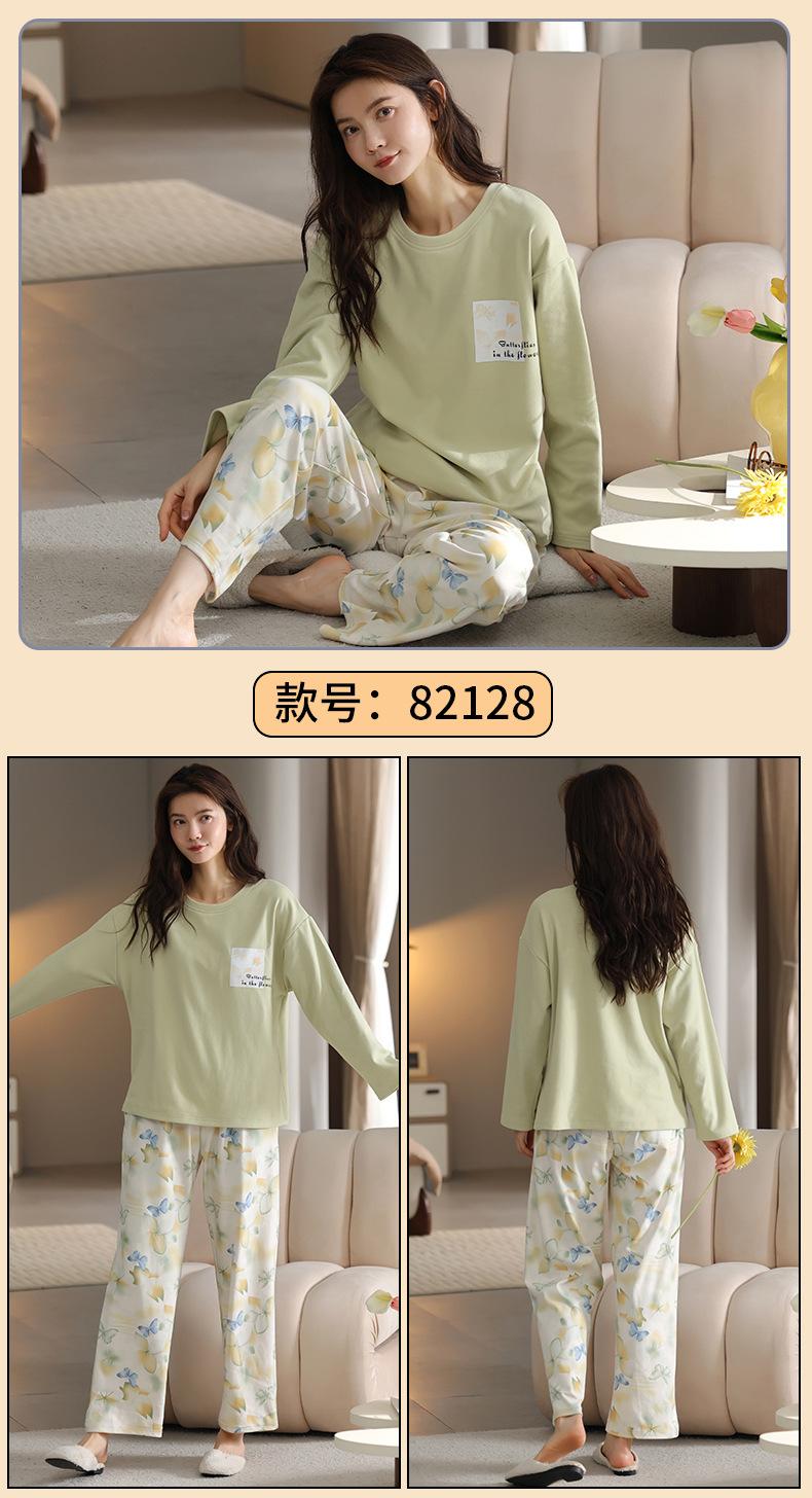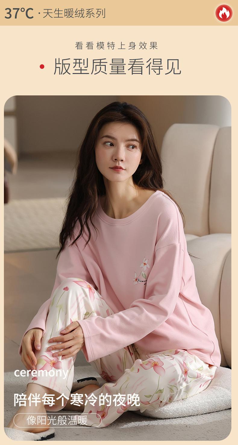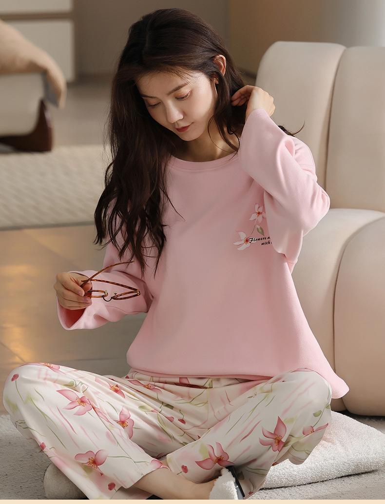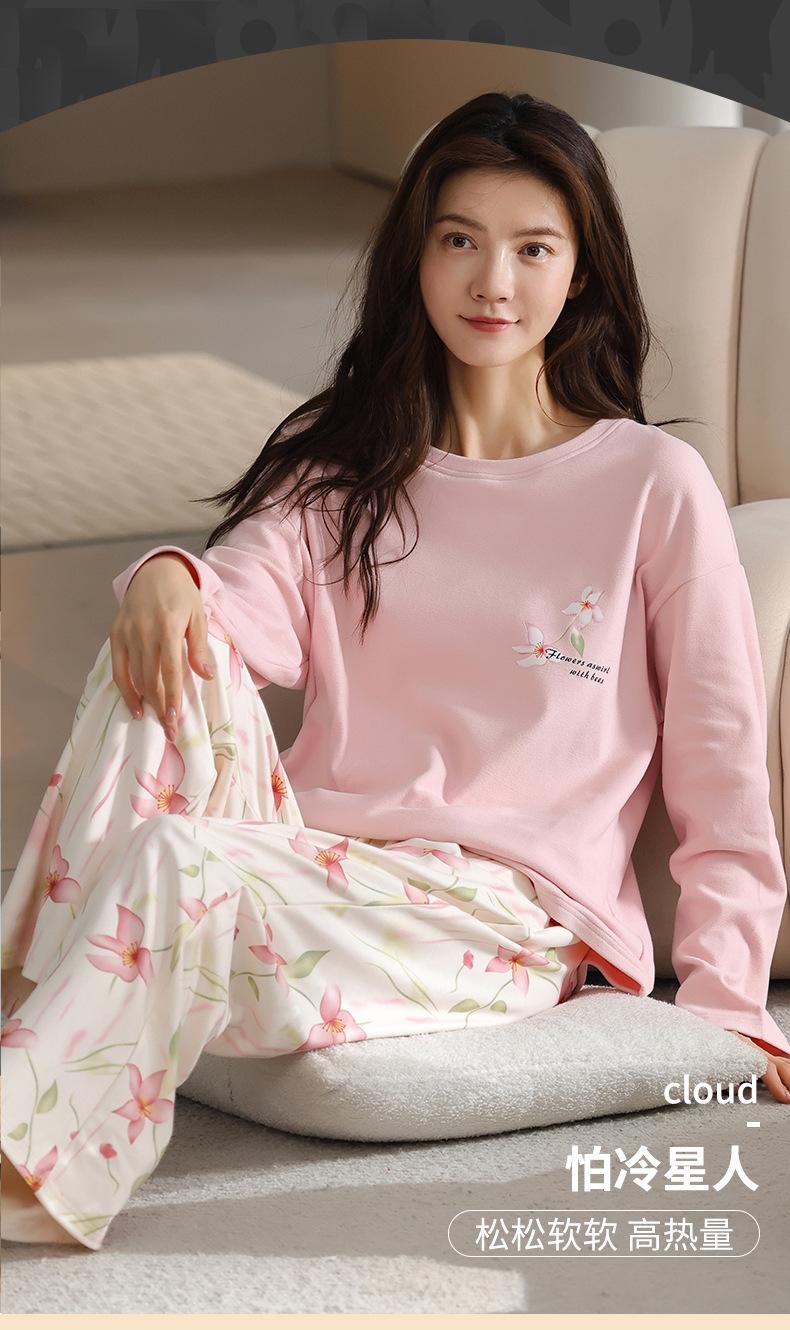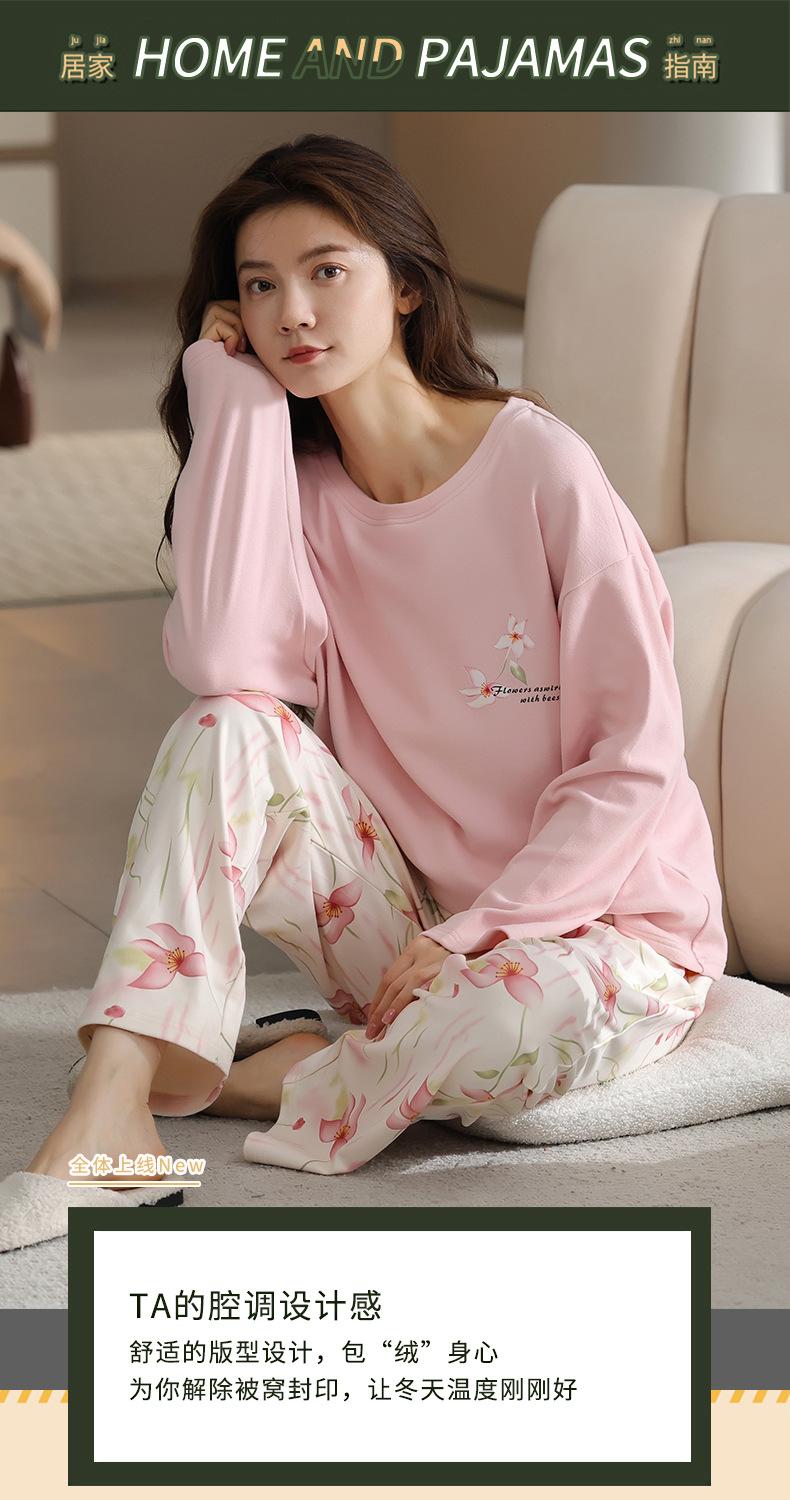 Pijamas de mujer de otoño e invierno de terciopelo de manga larga de primavera y otoño de grosor medio, cálidos, sueltos y dulces, ropa de abrigo, ropa para el hogar, traje sencillo