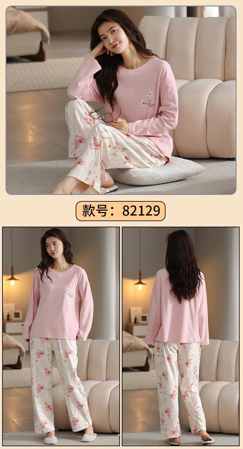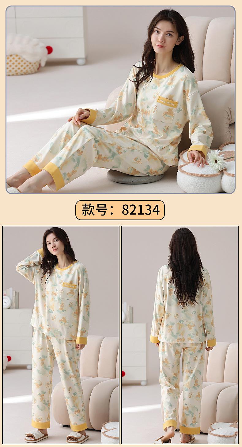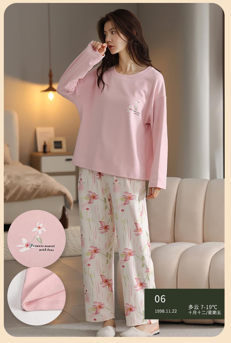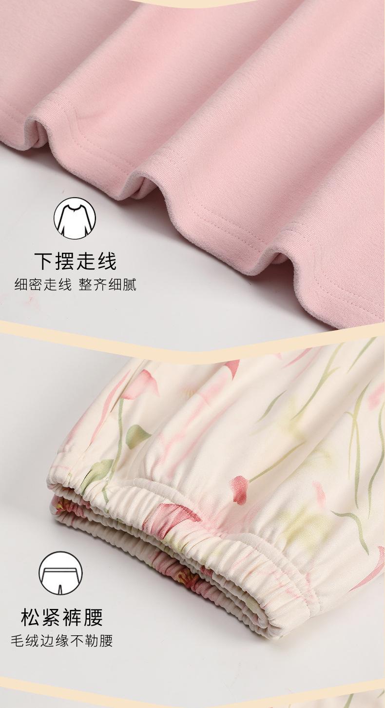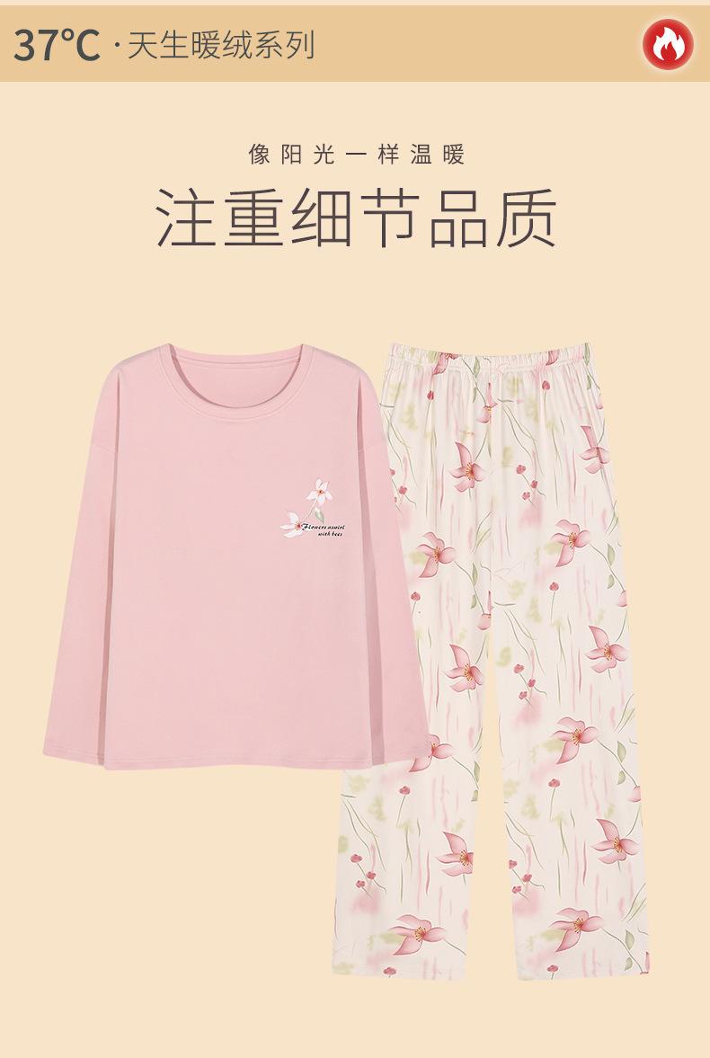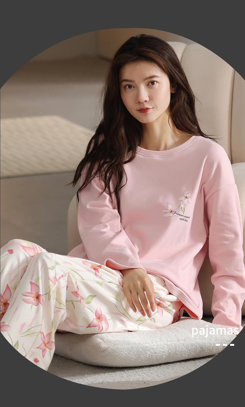 Pijamas de mujer de otoño e invierno de terciopelo de manga larga de primavera y otoño de grosor medio, cálidos, sueltos y dulces, ropa de abrigo, ropa para el hogar, traje sencillo